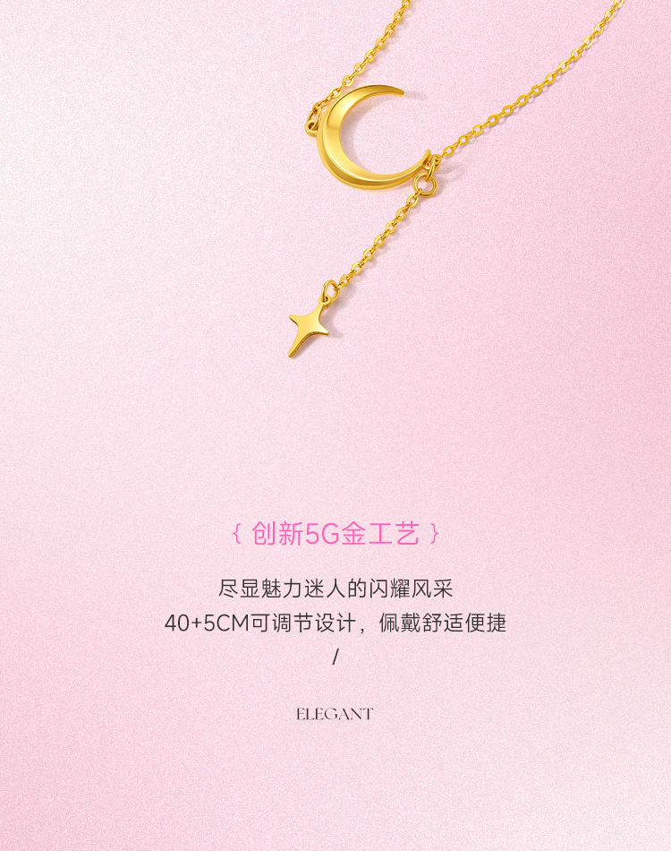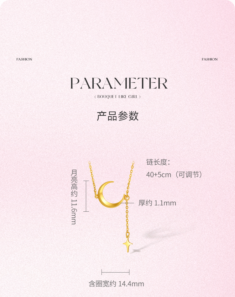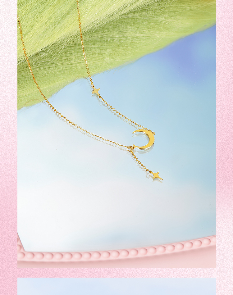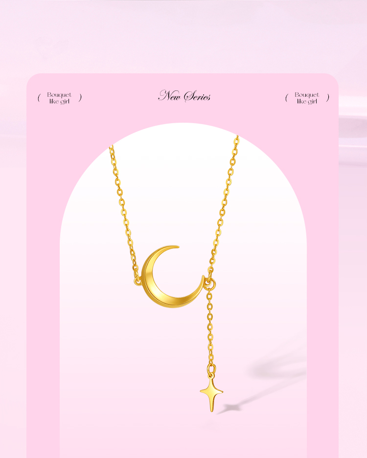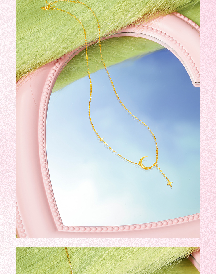 Saturday Fortune 5g Gold Necklace for Women, Pure Gold Moon Pendant Necklace, Princess on the Run Series, Holiday Gift