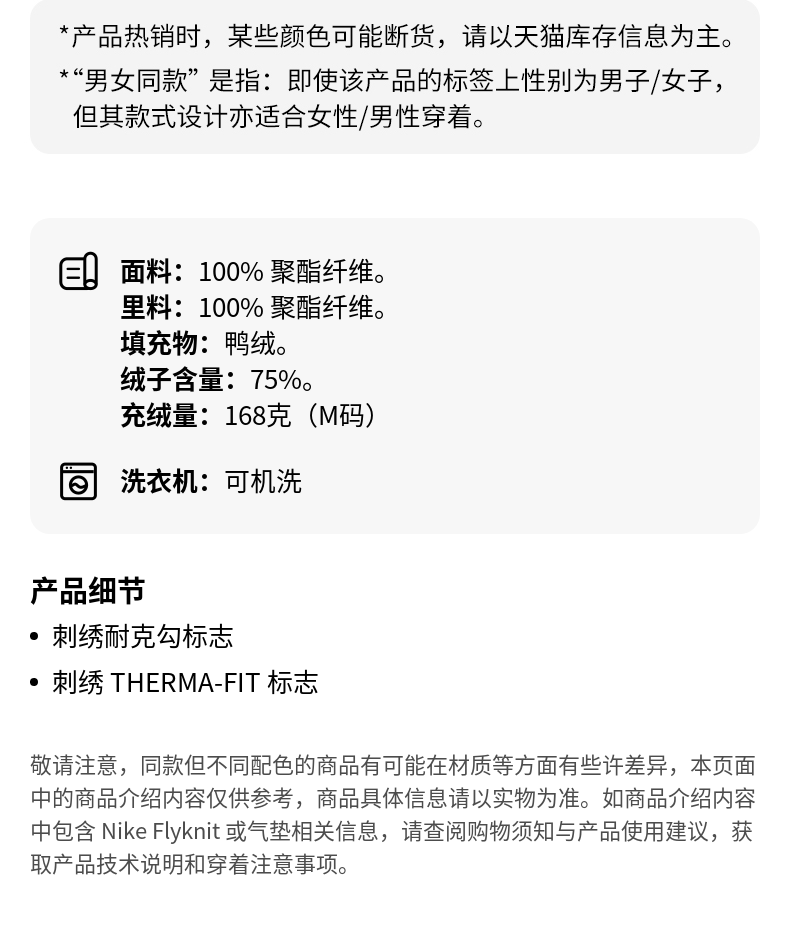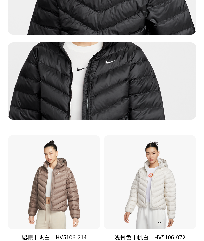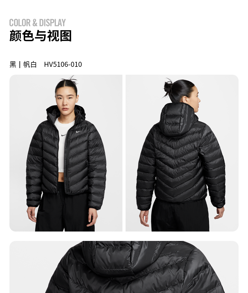 Nike Women's down Jacket 25 Winter New Lightweight Warm Hooded Sports Jacket Hv5106-010