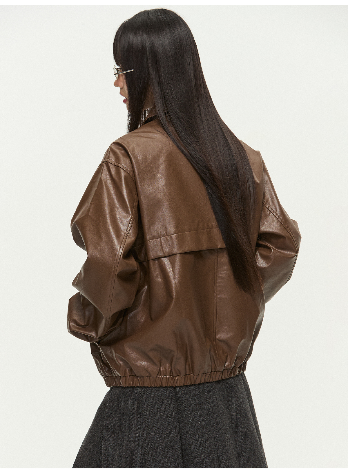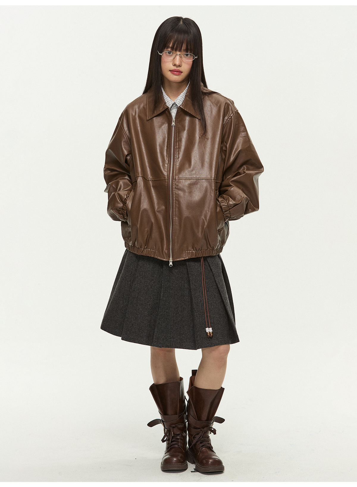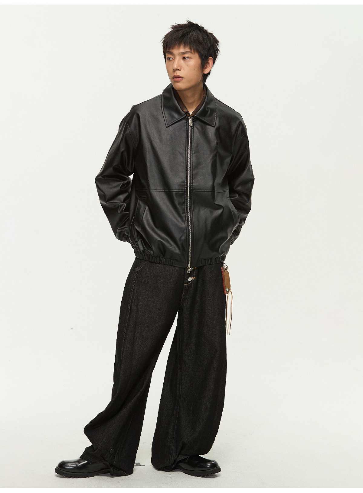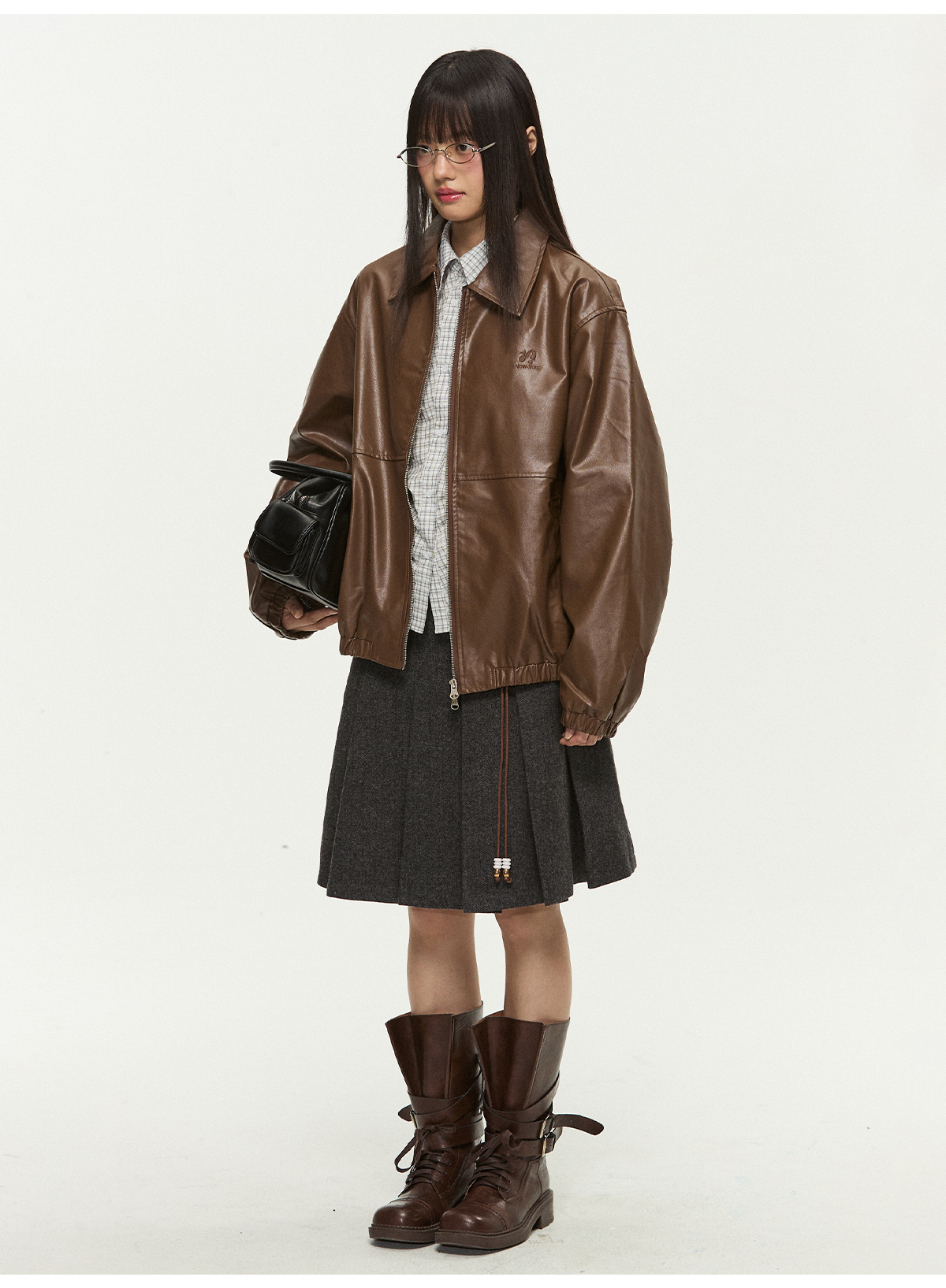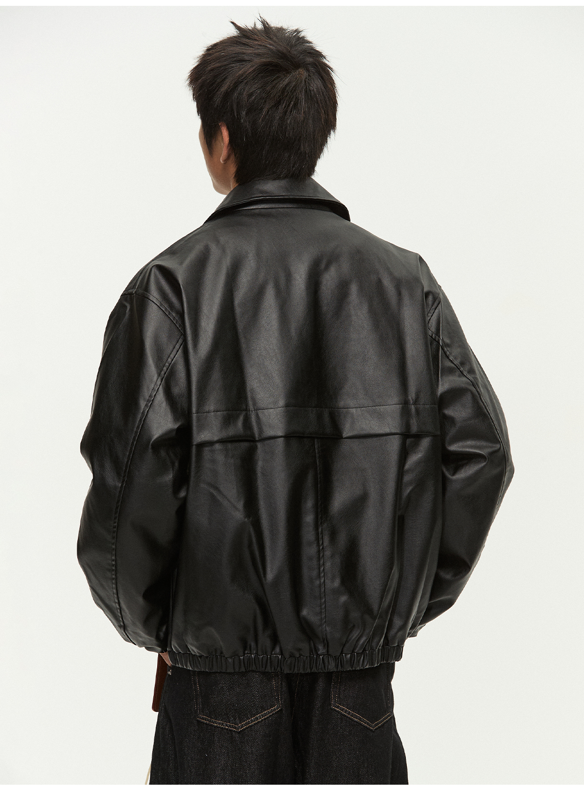 Mr. Jiangnan Newjnxs Retro Lapel Double Zipper Leather Jacket Unisex Casual Logo Embroidered Coat