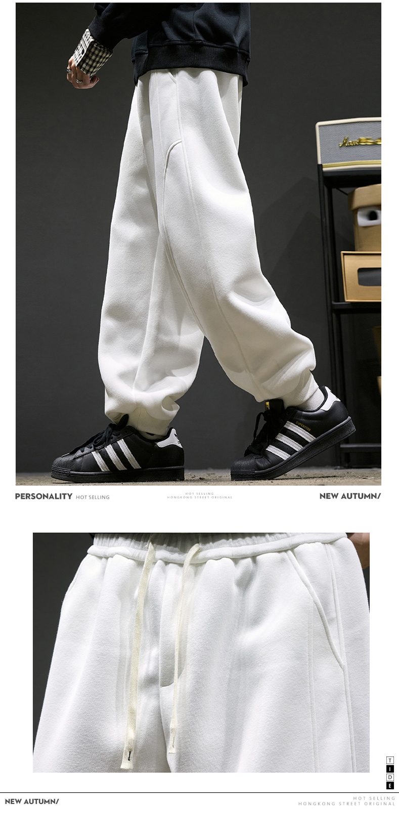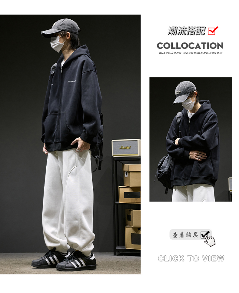 Heavyweight Sweatpants for Men, Autumn, Simple Deconstructed Design, American-Style Scimitar Pants, Men's Trendy Brand, Sports Casual Jogger Pants