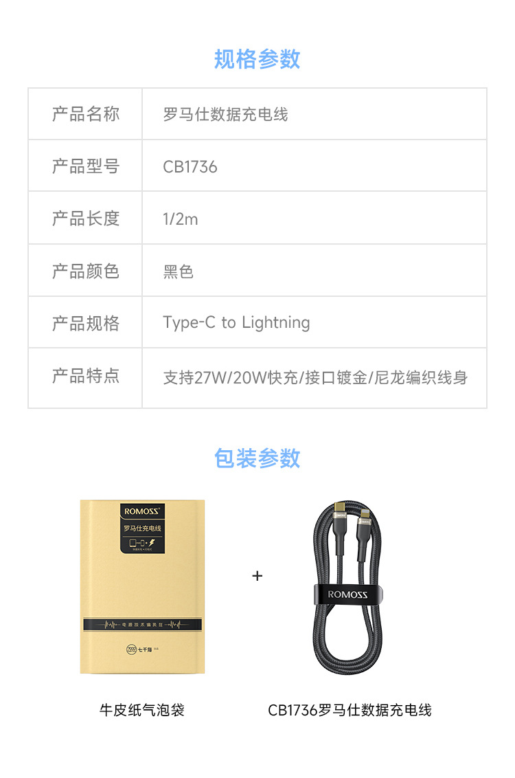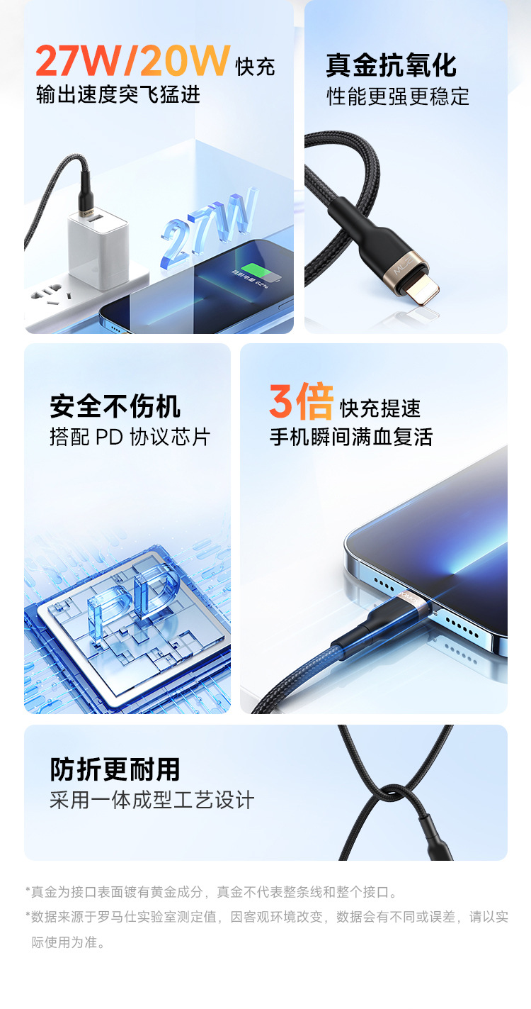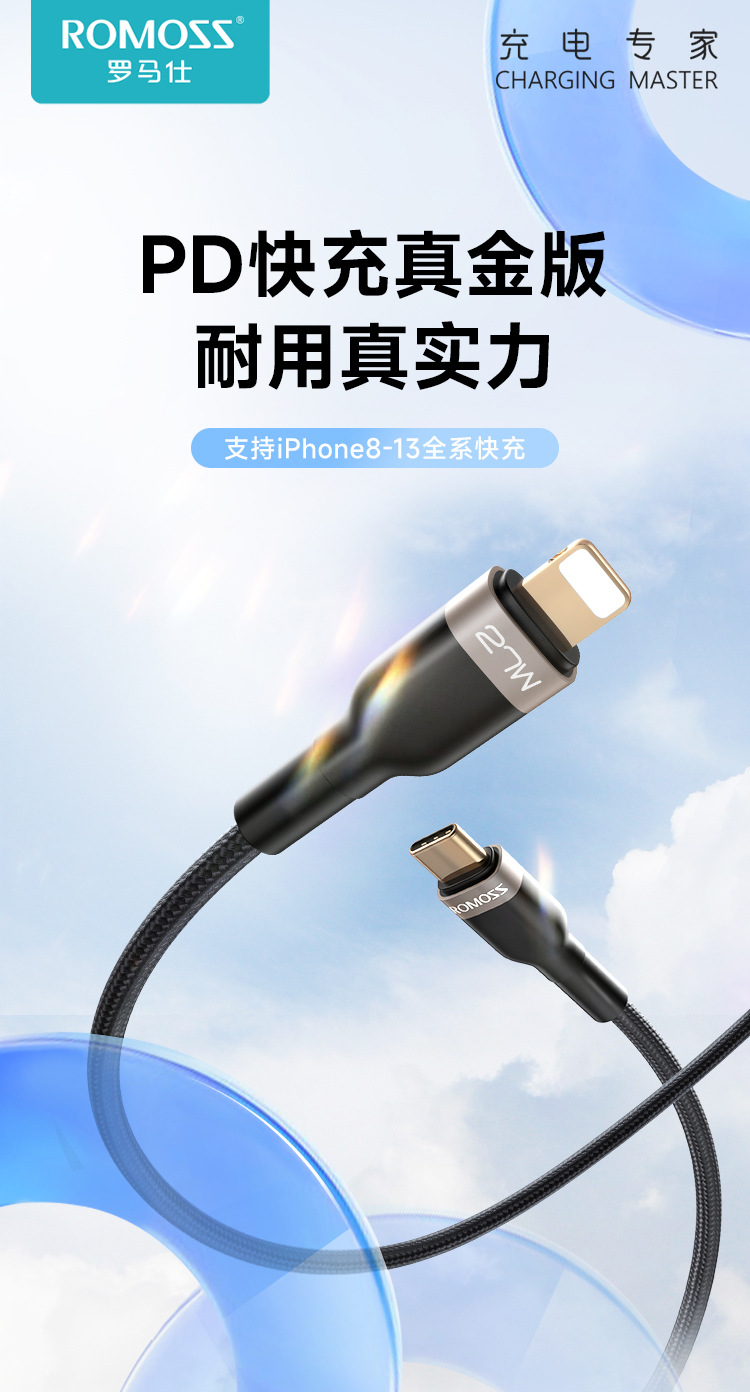 Romans Pd27W/20W Data Cable Fast Charging Gold-Plated Plug Is Suitable for Apple 12/14/15 and Other 3A Charging Cables
