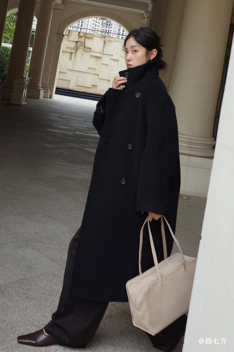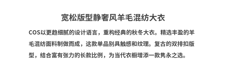 Cos Women's Clothing Loose Fit Quiet Luxury Style Wool Blend Coat Black 2025 Autumn New Product 1245359003