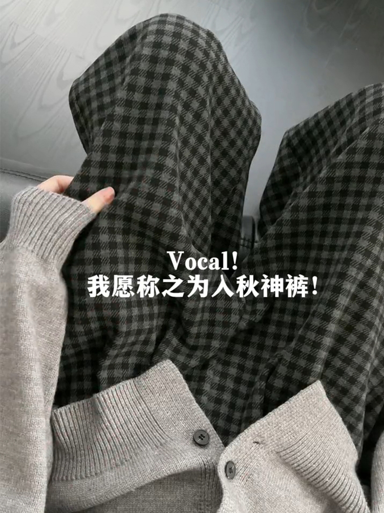 Black and Gray Woolen Plaid Casual Pants for Women, Autumn and Winter, Fleece-Lined, Plus Size, High-Waisted, Hip-Covering, Drapey, Slimming, Wide-Leg Pants