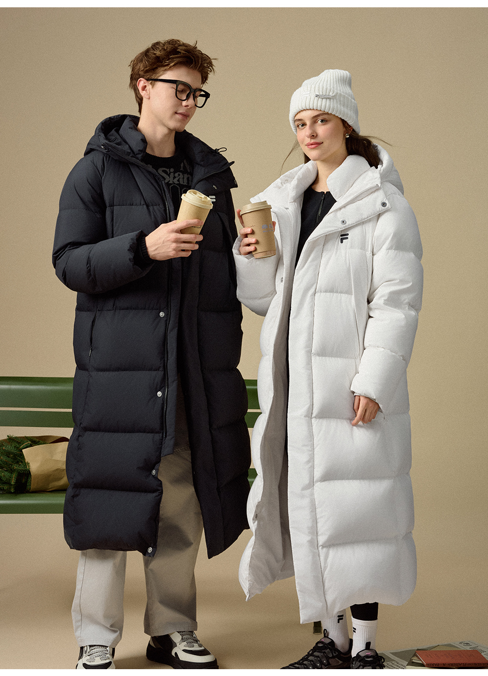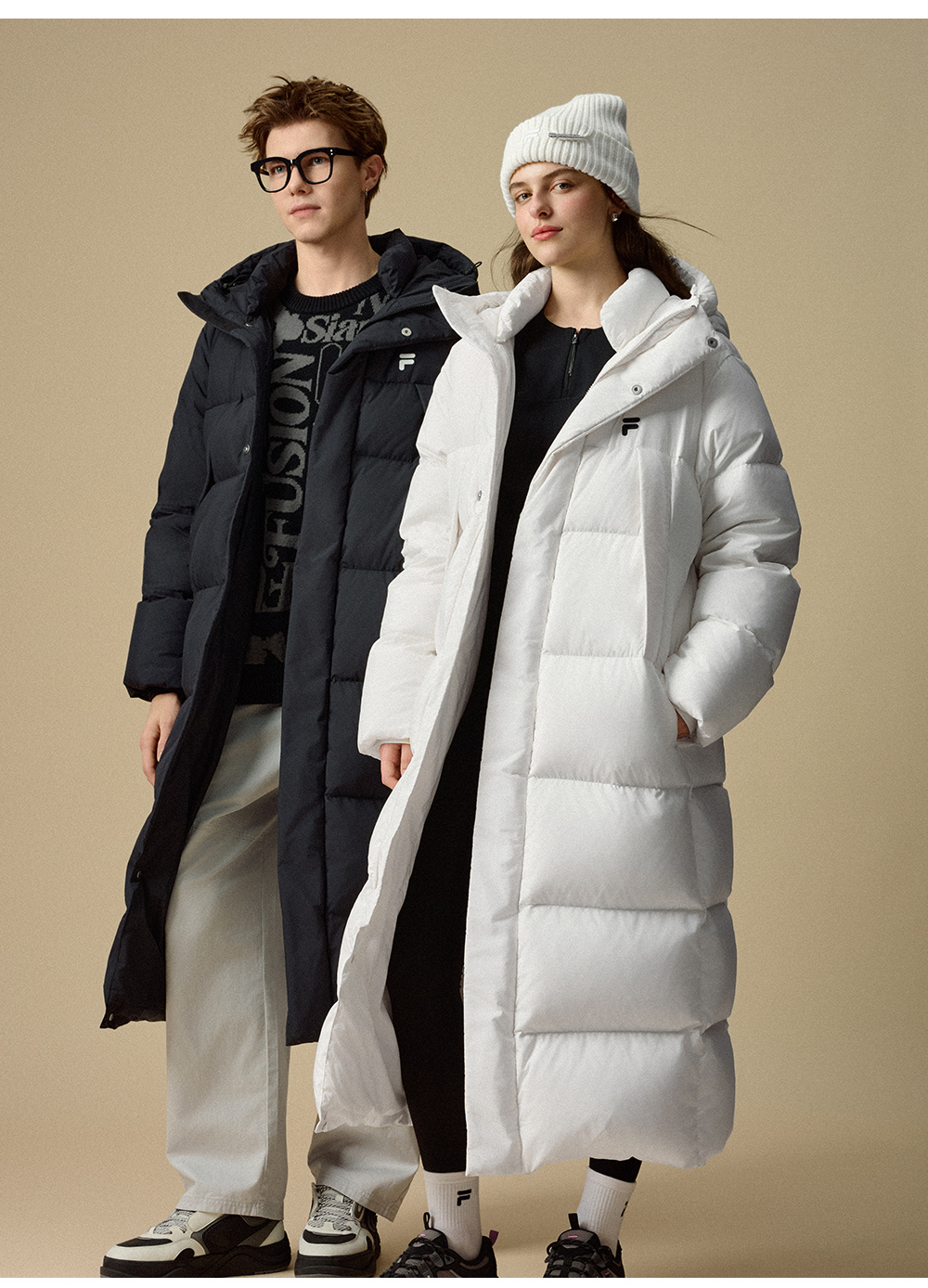 Fila Fusion Trendy Brand Couple's Long down Jacket 2025 Winter New Hooded Coat Goose down
