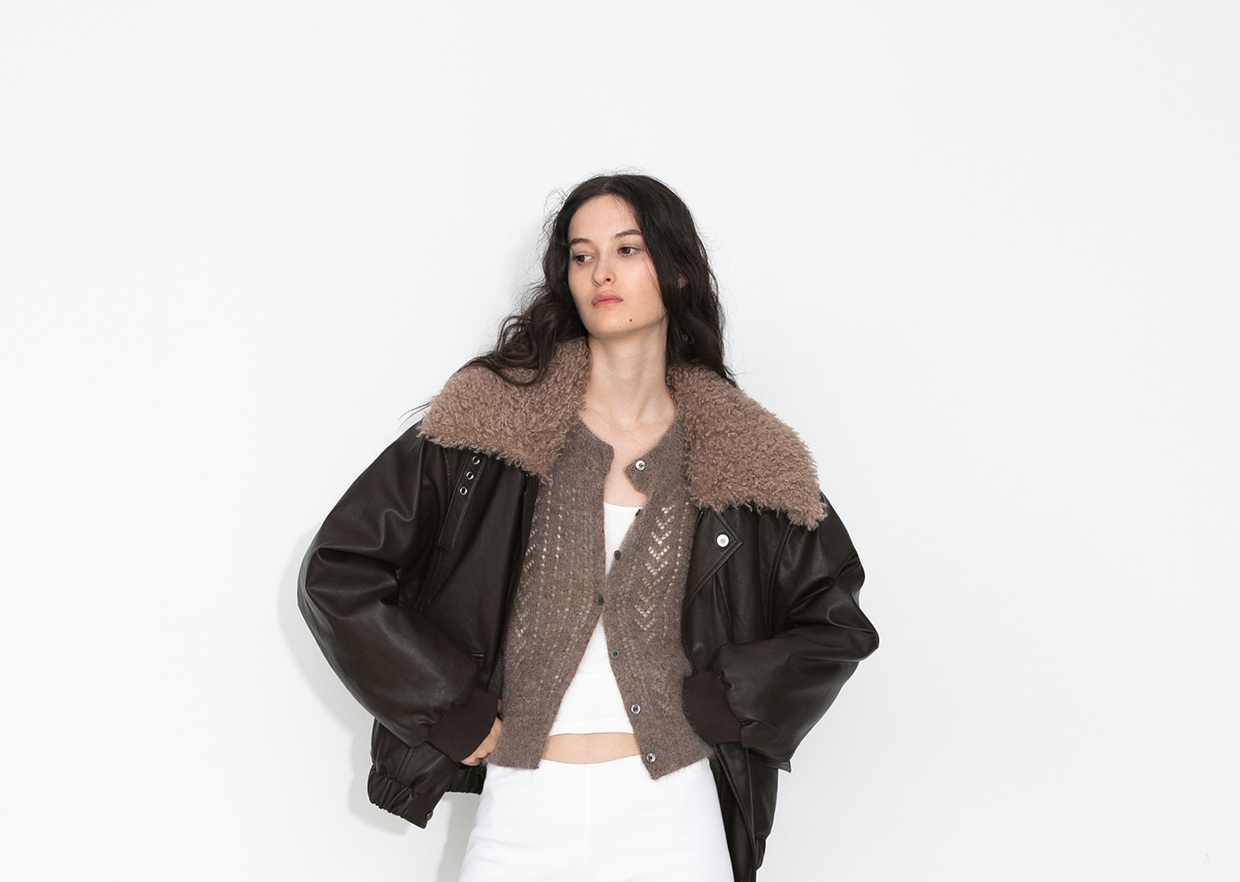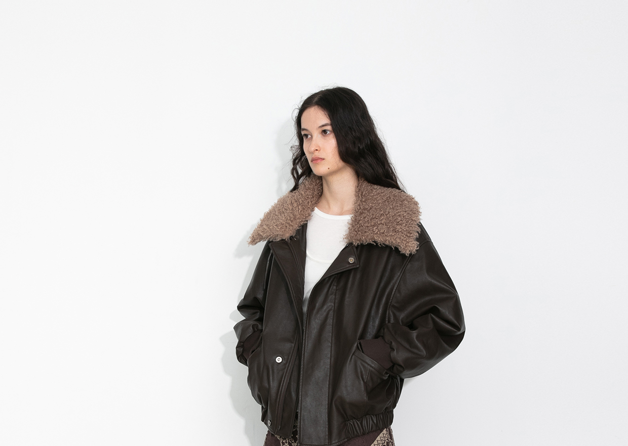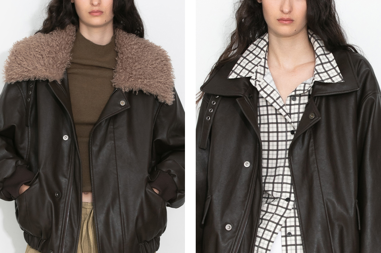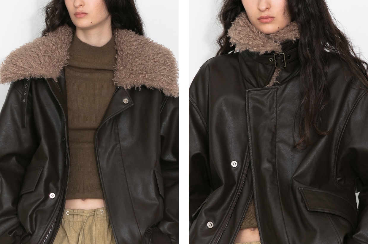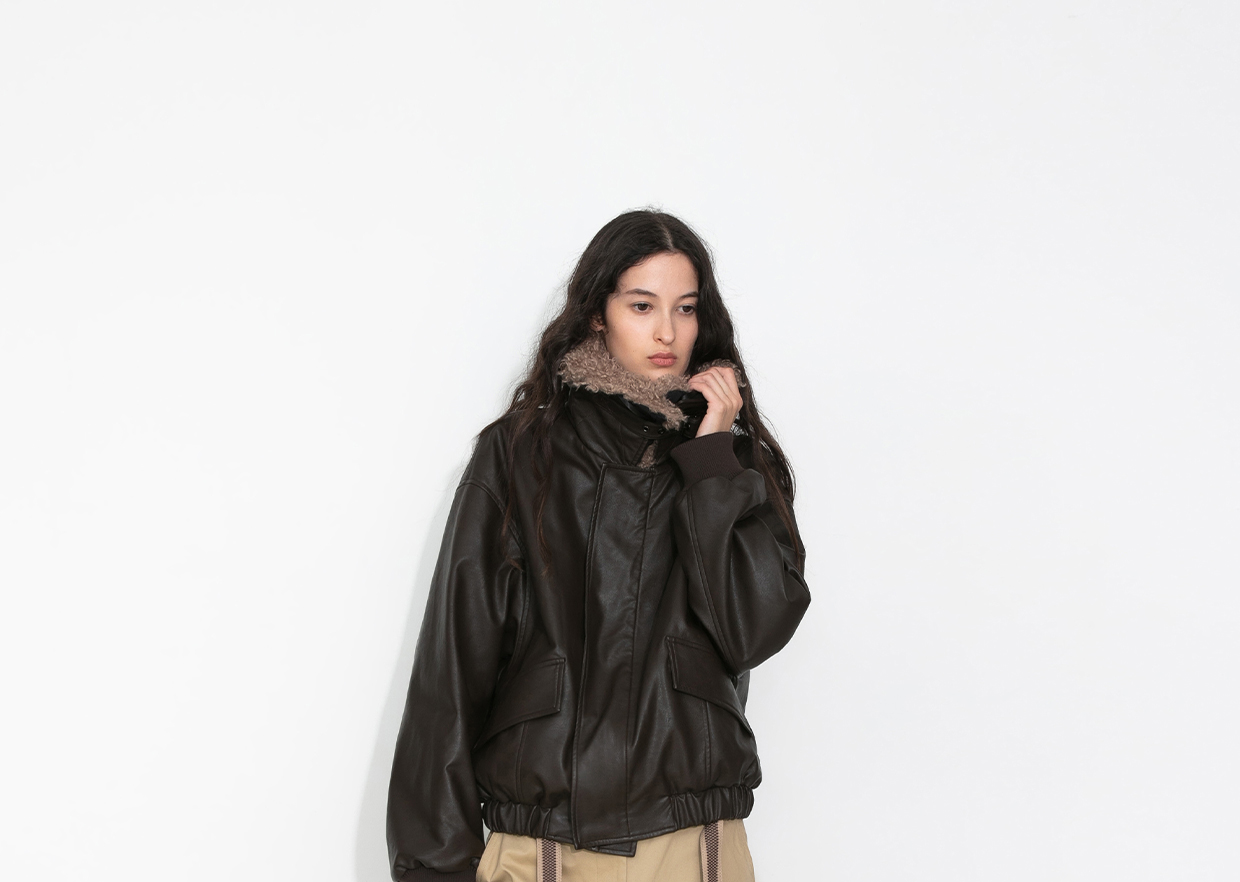 【Nana's Style】Cubic White Duck down Loose-Fitting Brown Detachable Fur Collar Short Leather Jacket down Coat