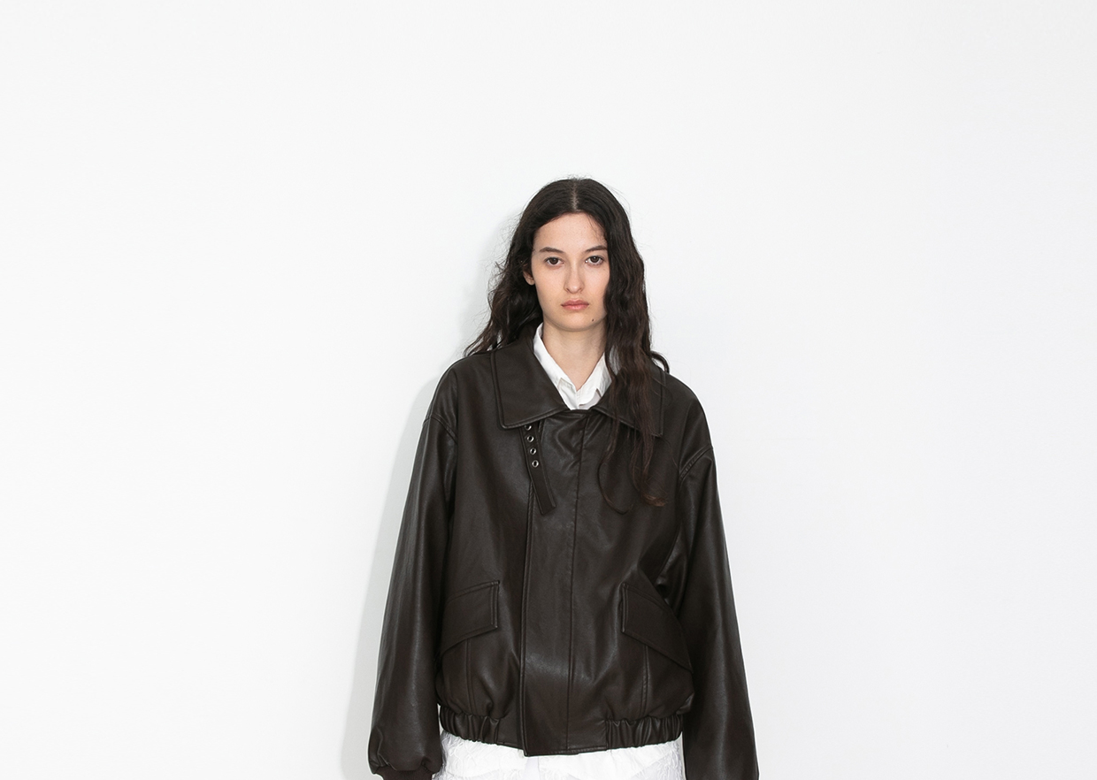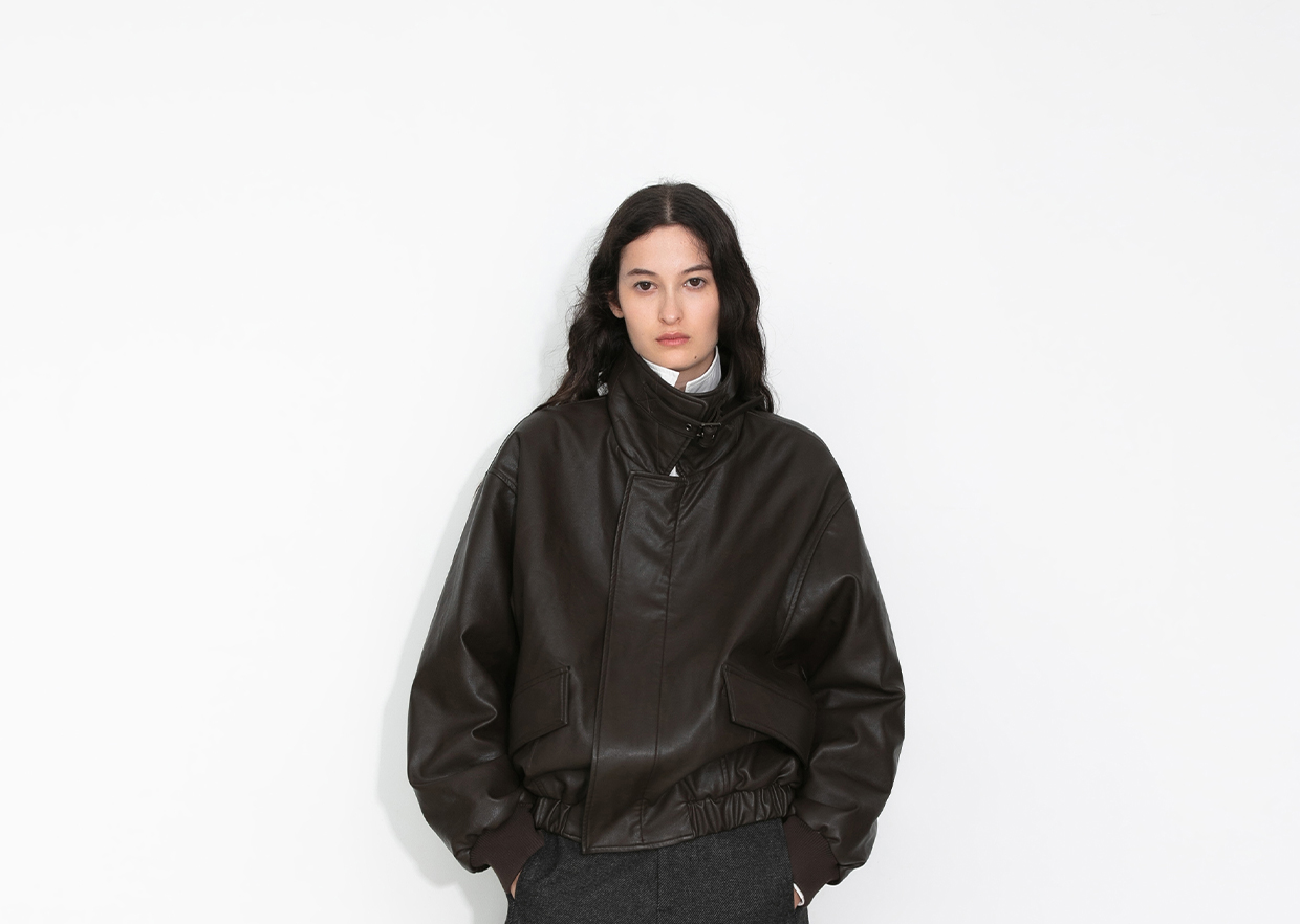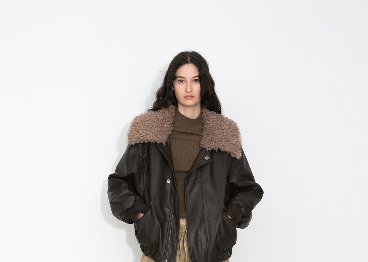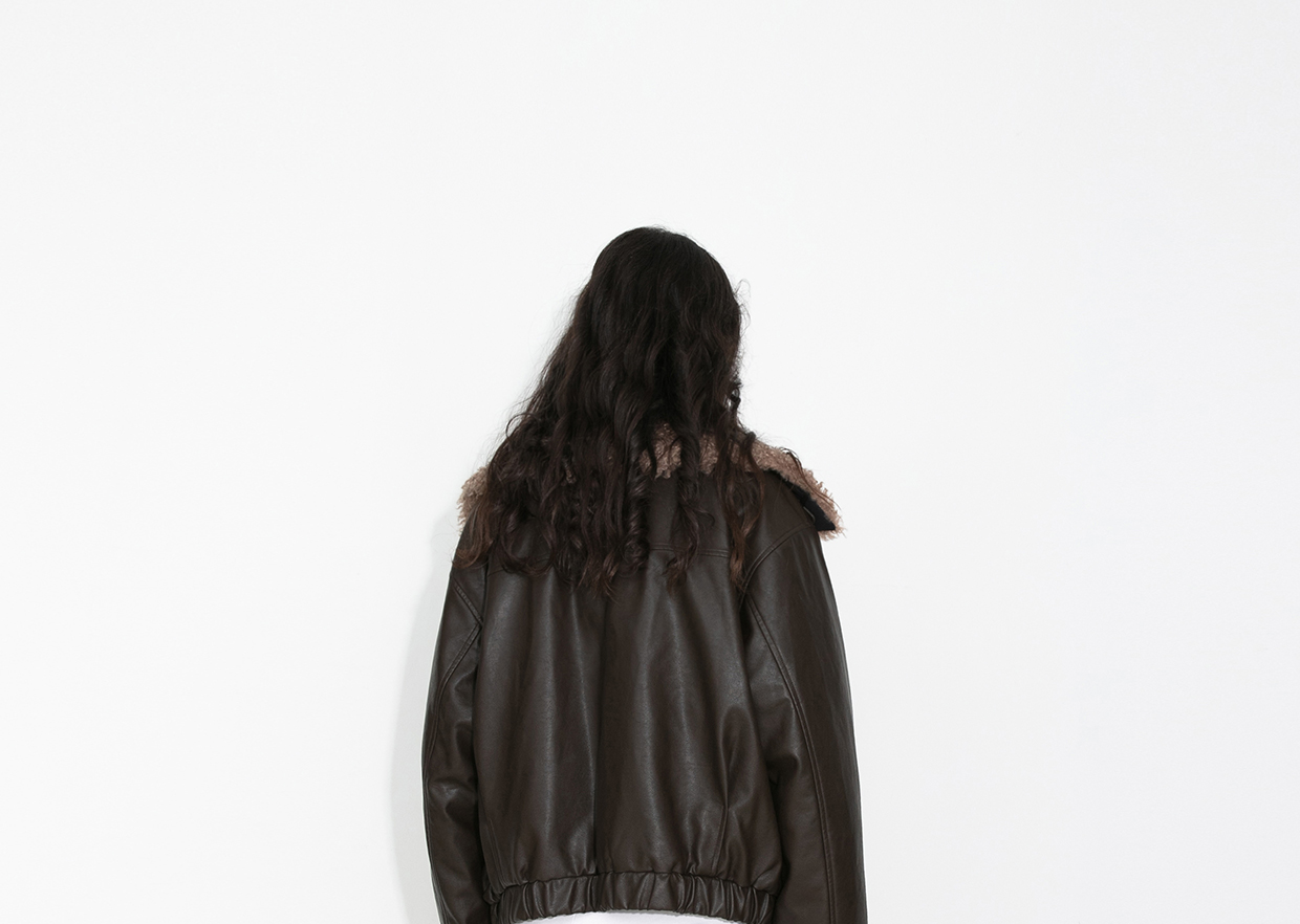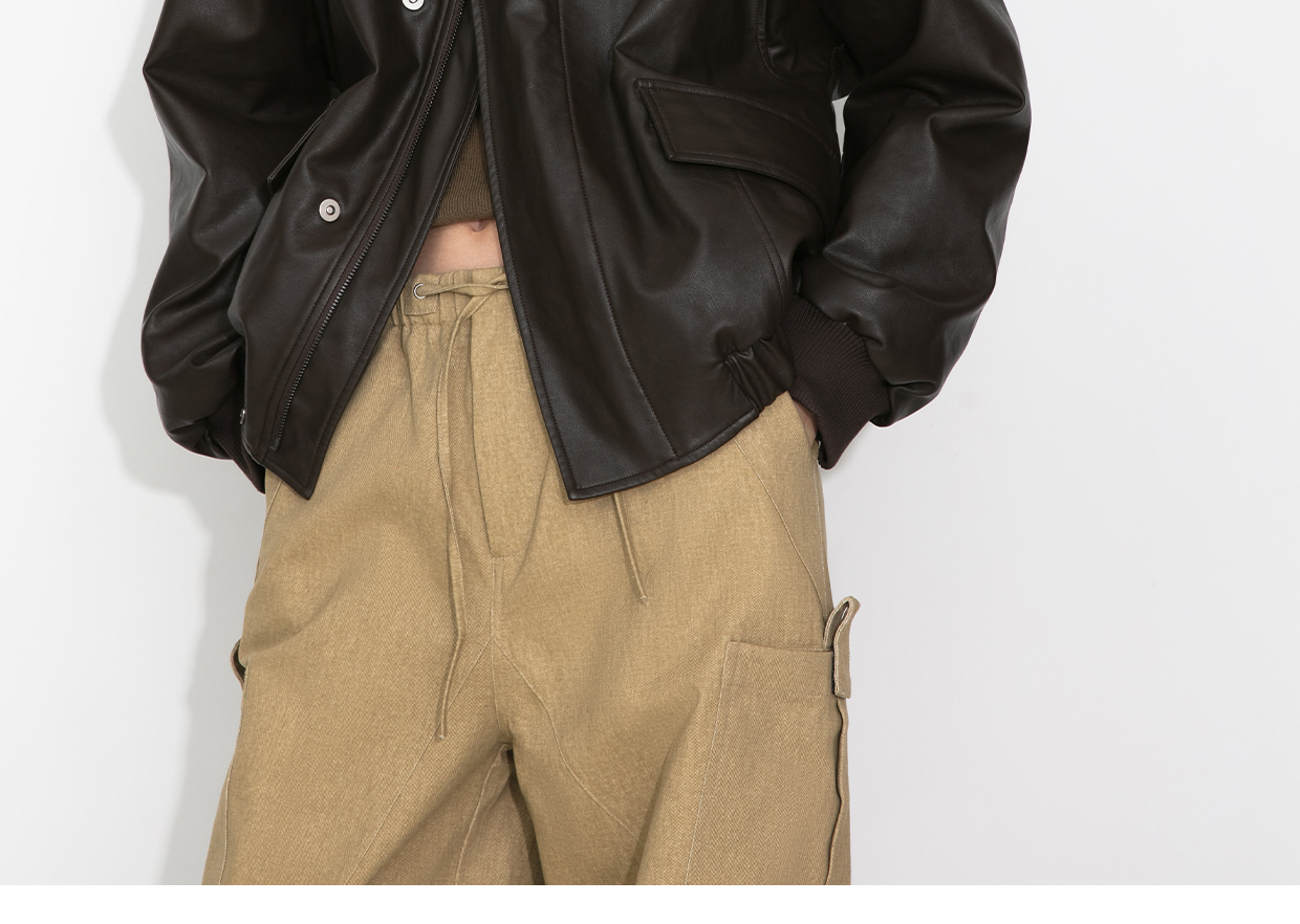 【Nana's Style】Cubic White Duck down Loose-Fitting Brown Detachable Fur Collar Short Leather Jacket down Coat