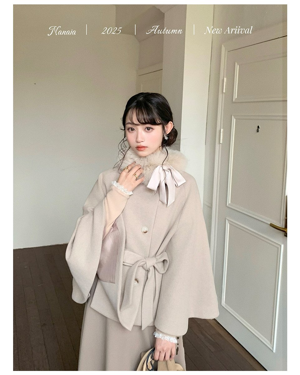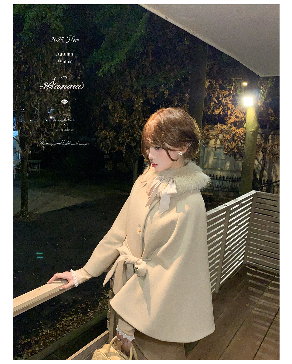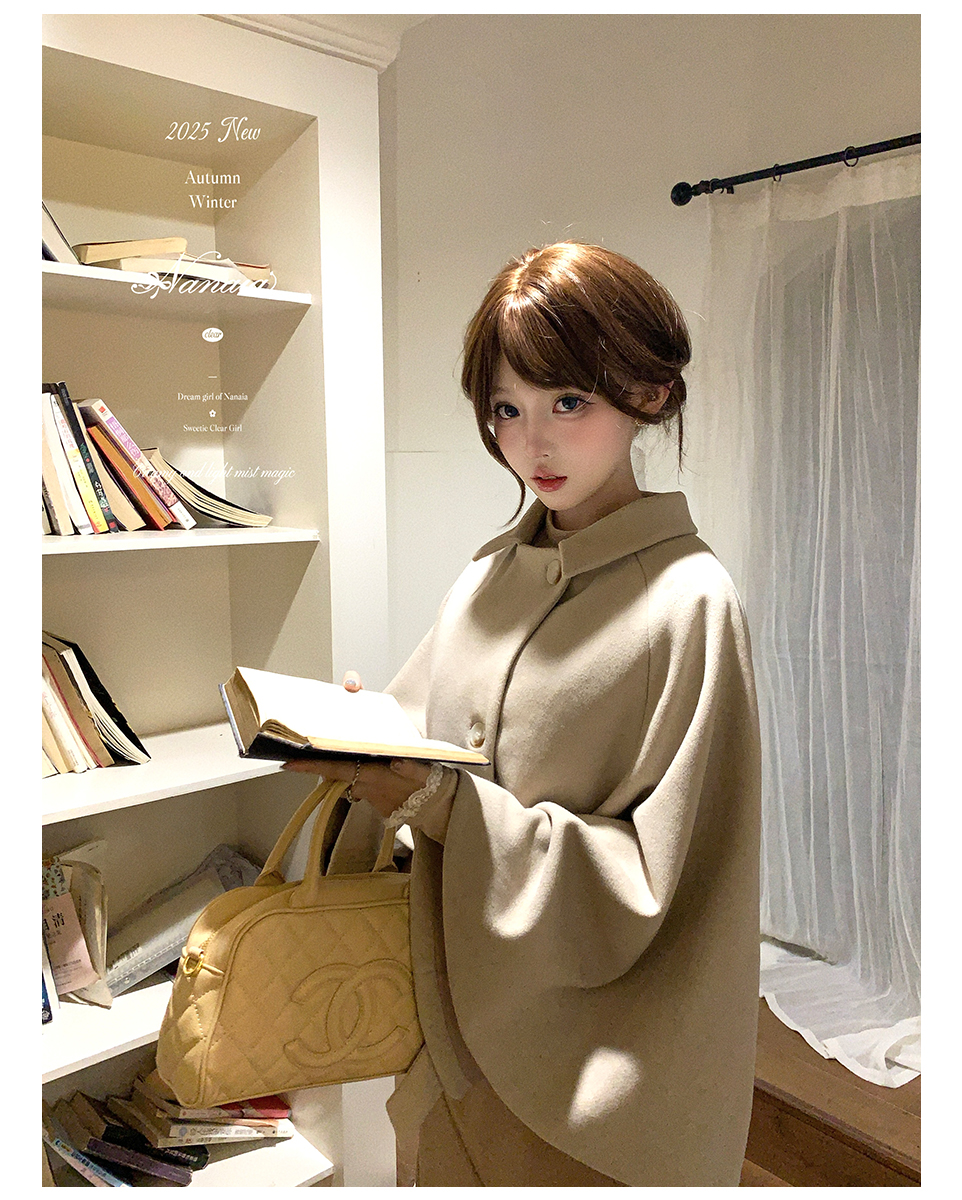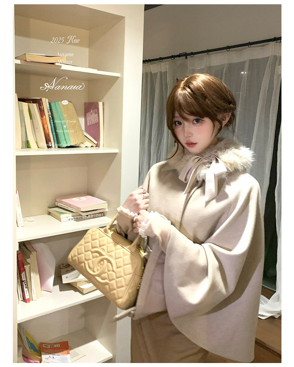 Sweet Narcissus Kyoto Showa Dream Little Chanel Style Bow Collar Woolen Cape Coat for Women with a High-End Feel and Elegant Atmosphere