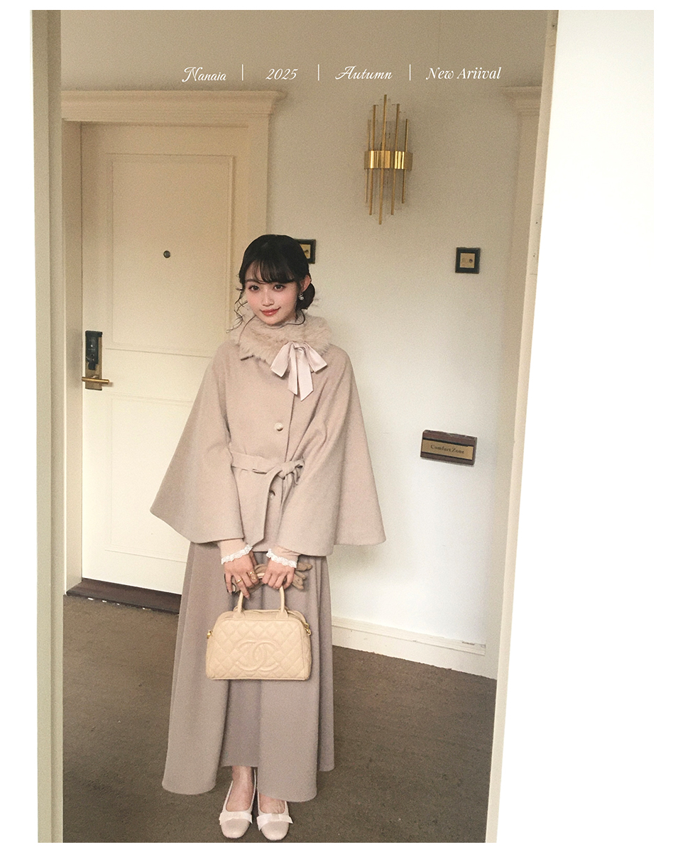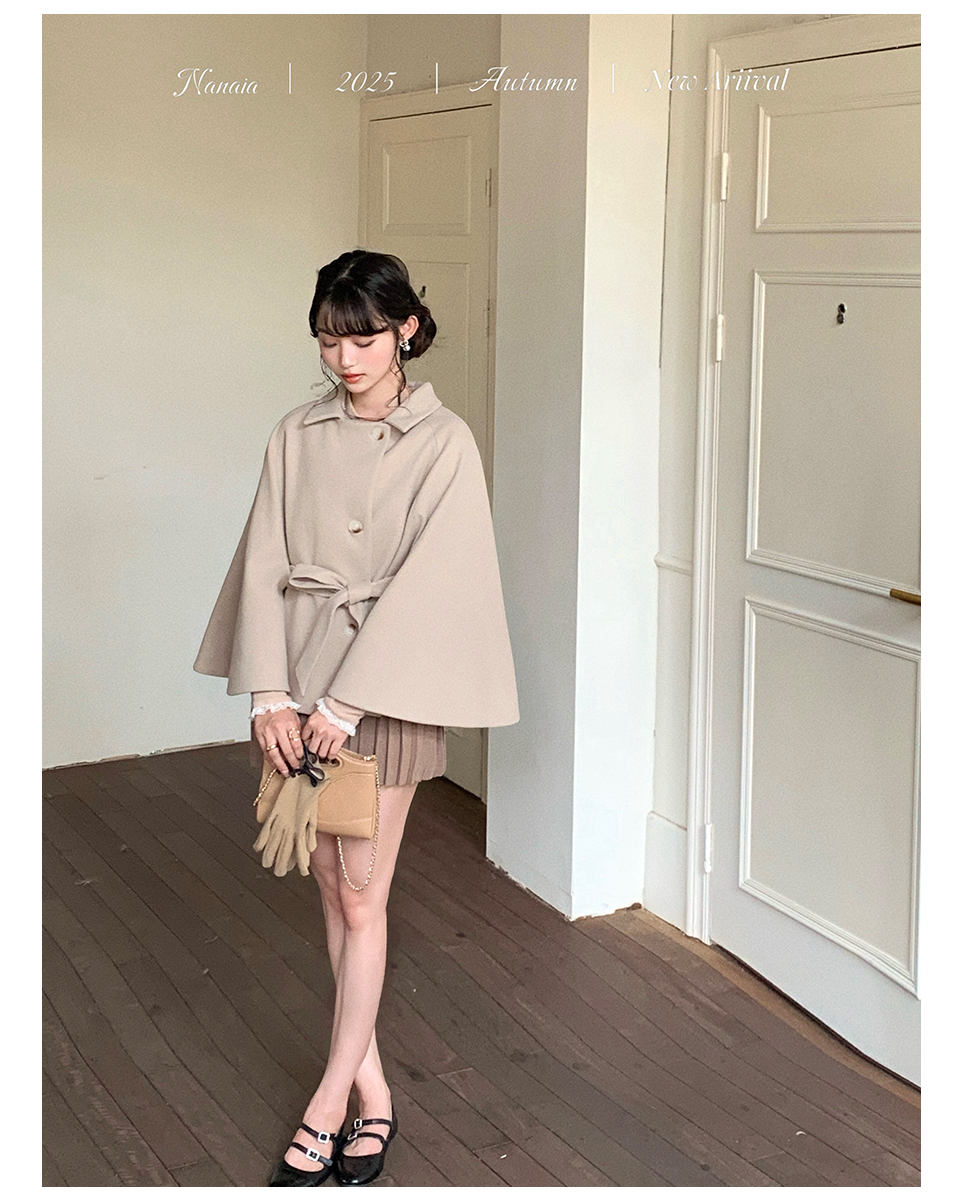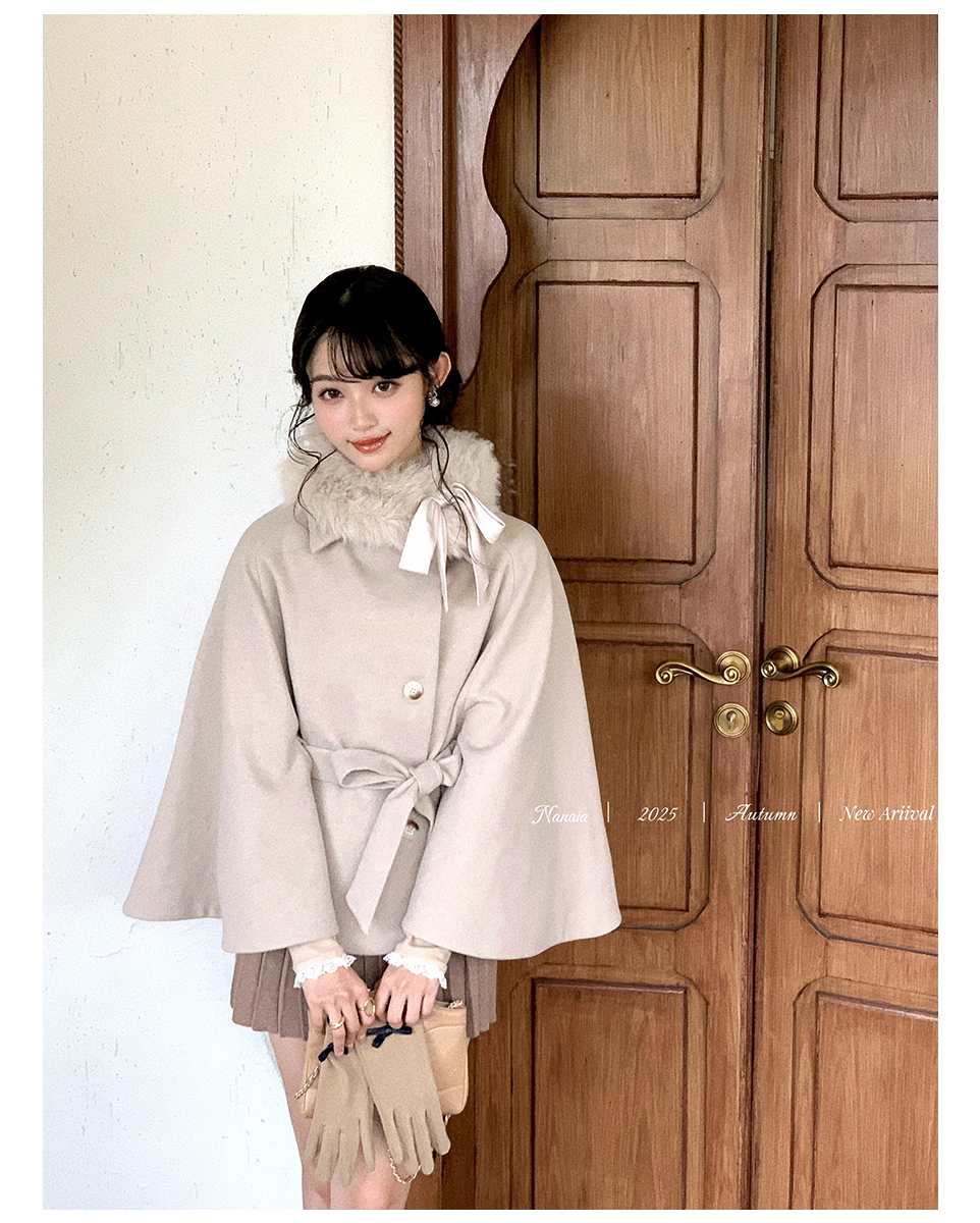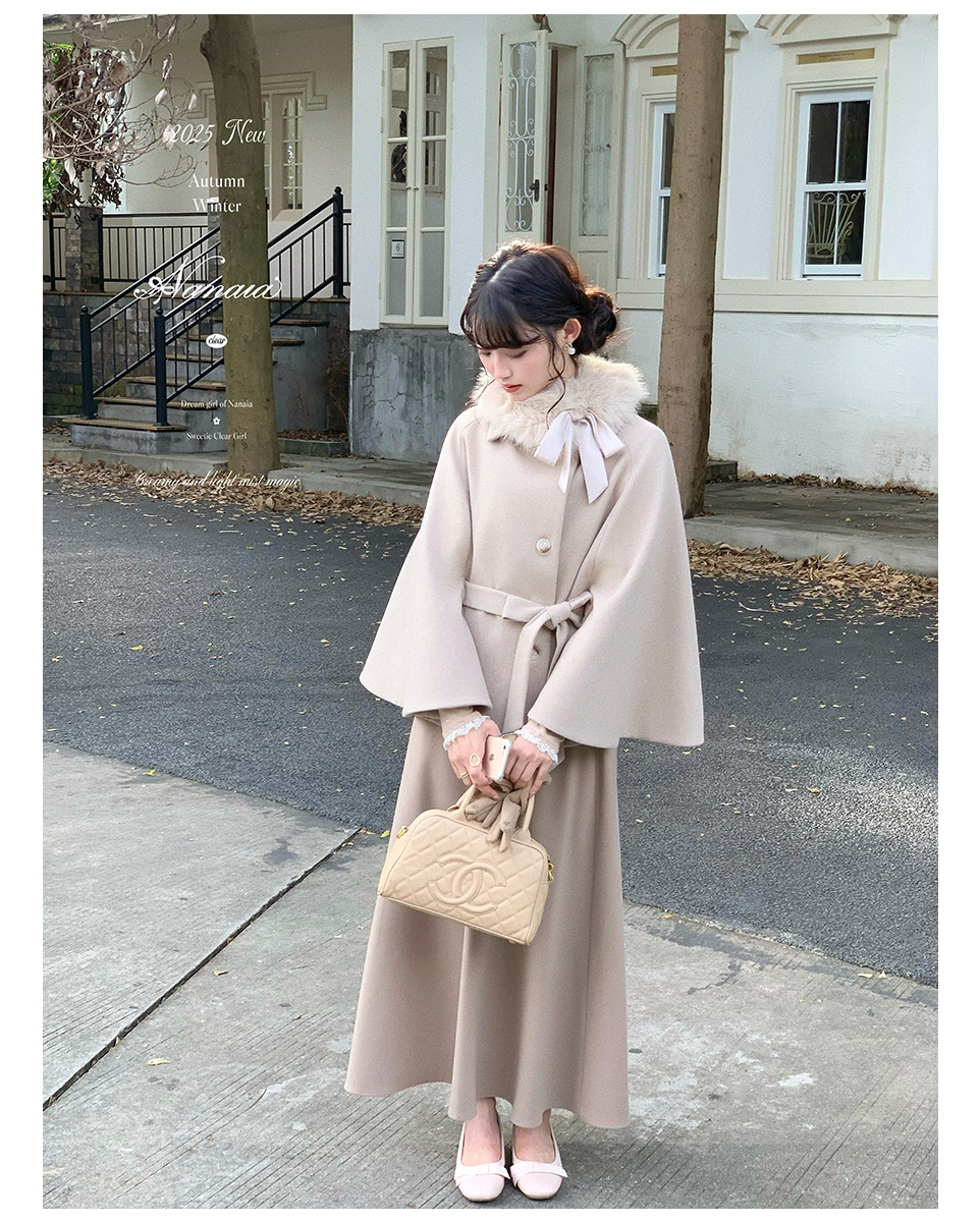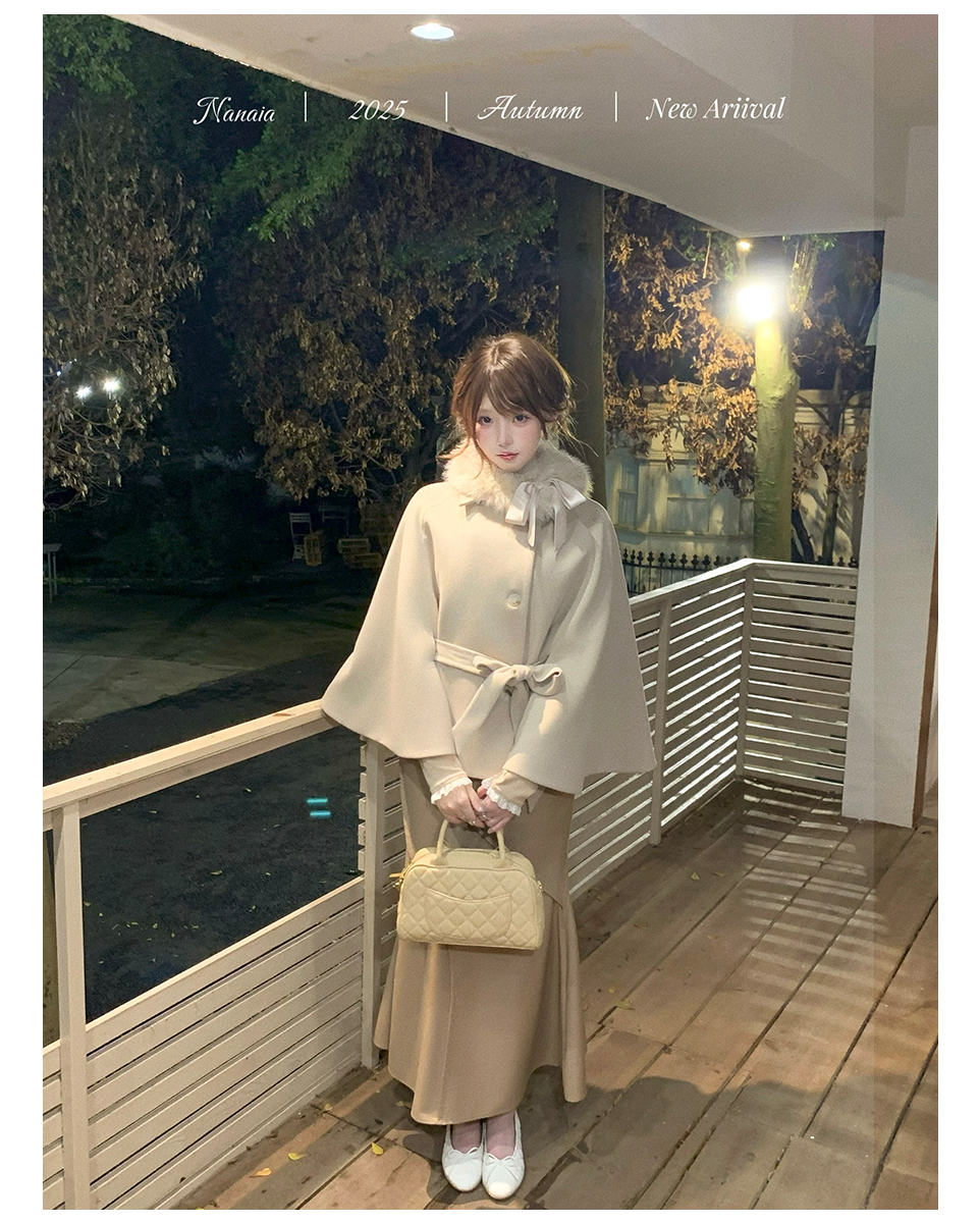 Sweet Narcissus Kyoto Showa Dream Little Chanel Style Bow Collar Woolen Cape Coat for Women with a High-End Feel and Elegant Atmosphere