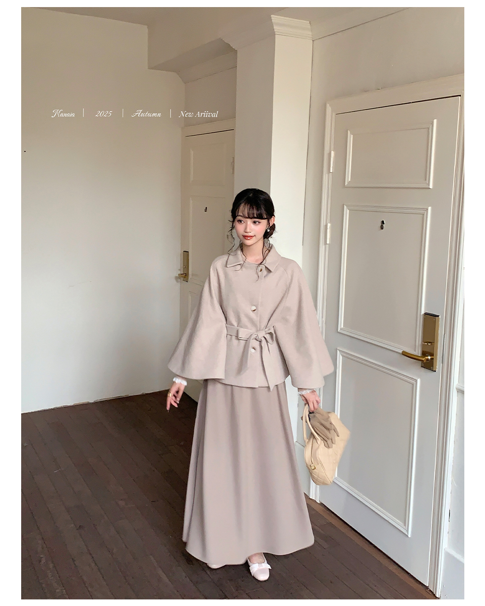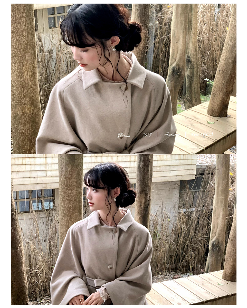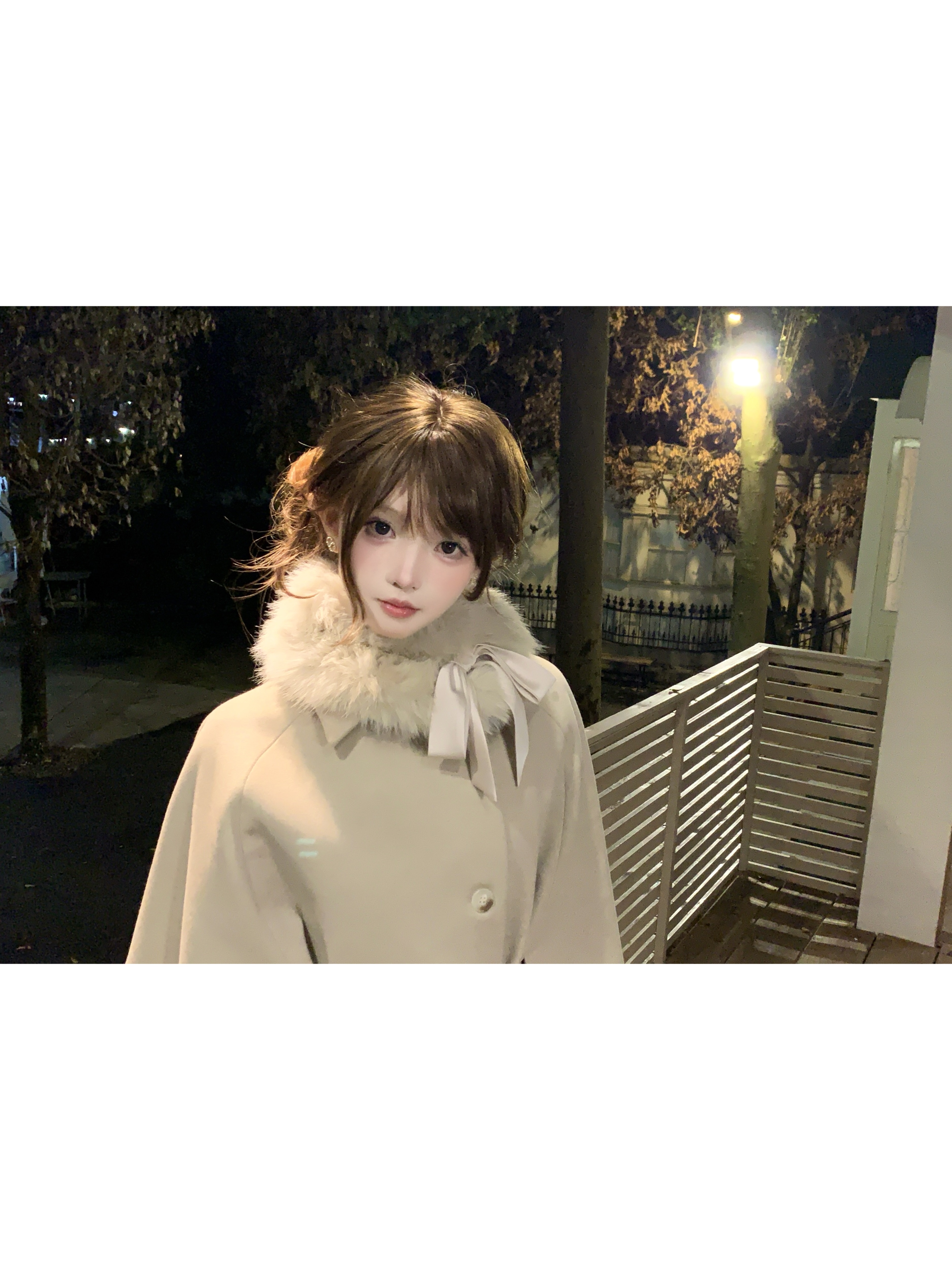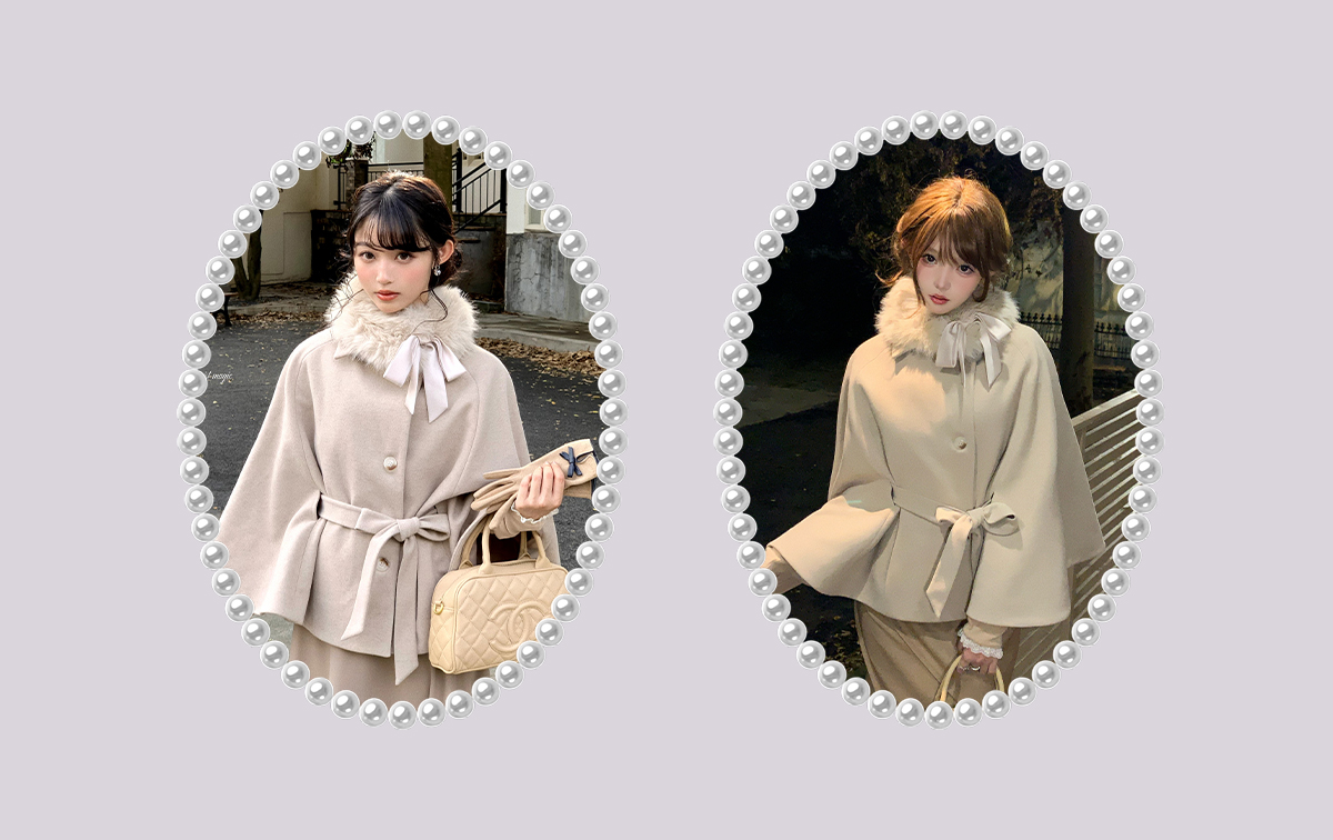 Sweet Narcissus Kyoto Showa Dream Little Chanel Style Bow Collar Woolen Cape Coat for Women with a High-End Feel and Elegant Atmosphere