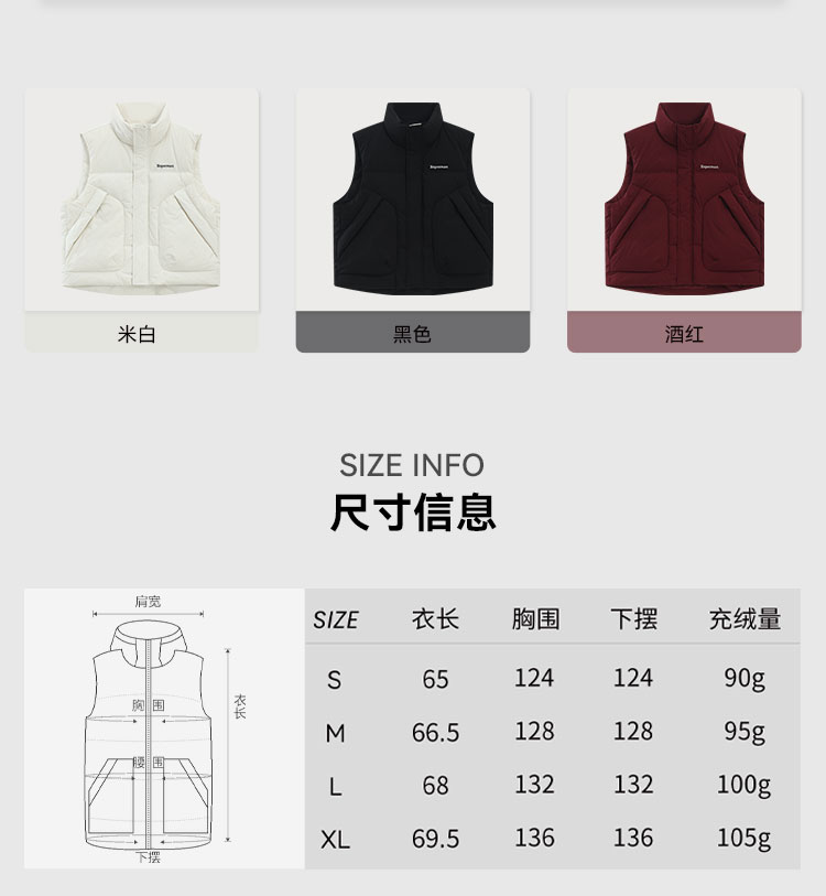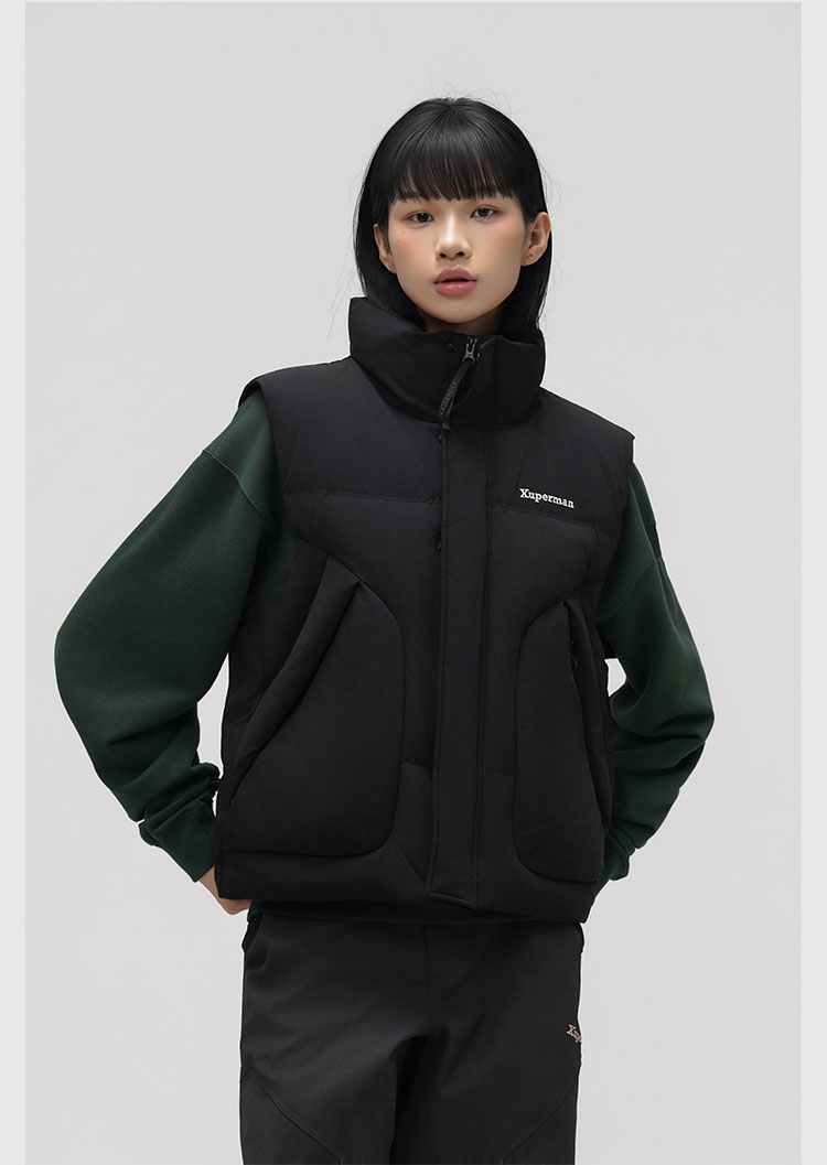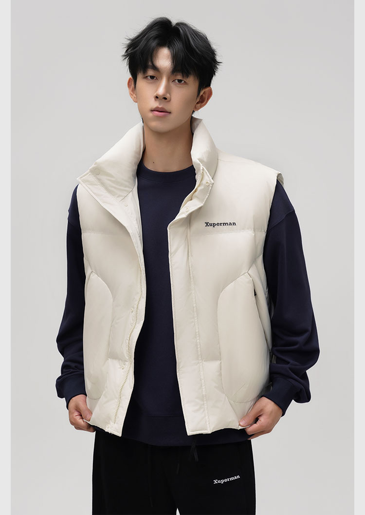 Xuperman Stand-Up Collar Pocket down Vest for Men and Women, Autumn and Winter Sports Warm down Jacket Vest, White Duck down