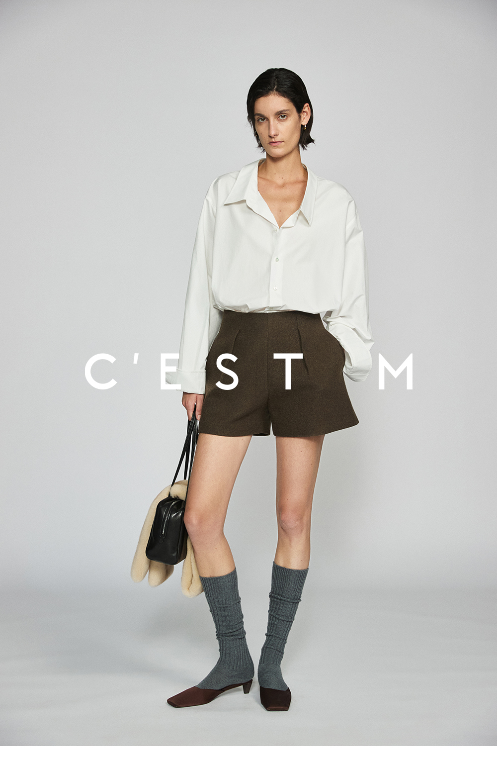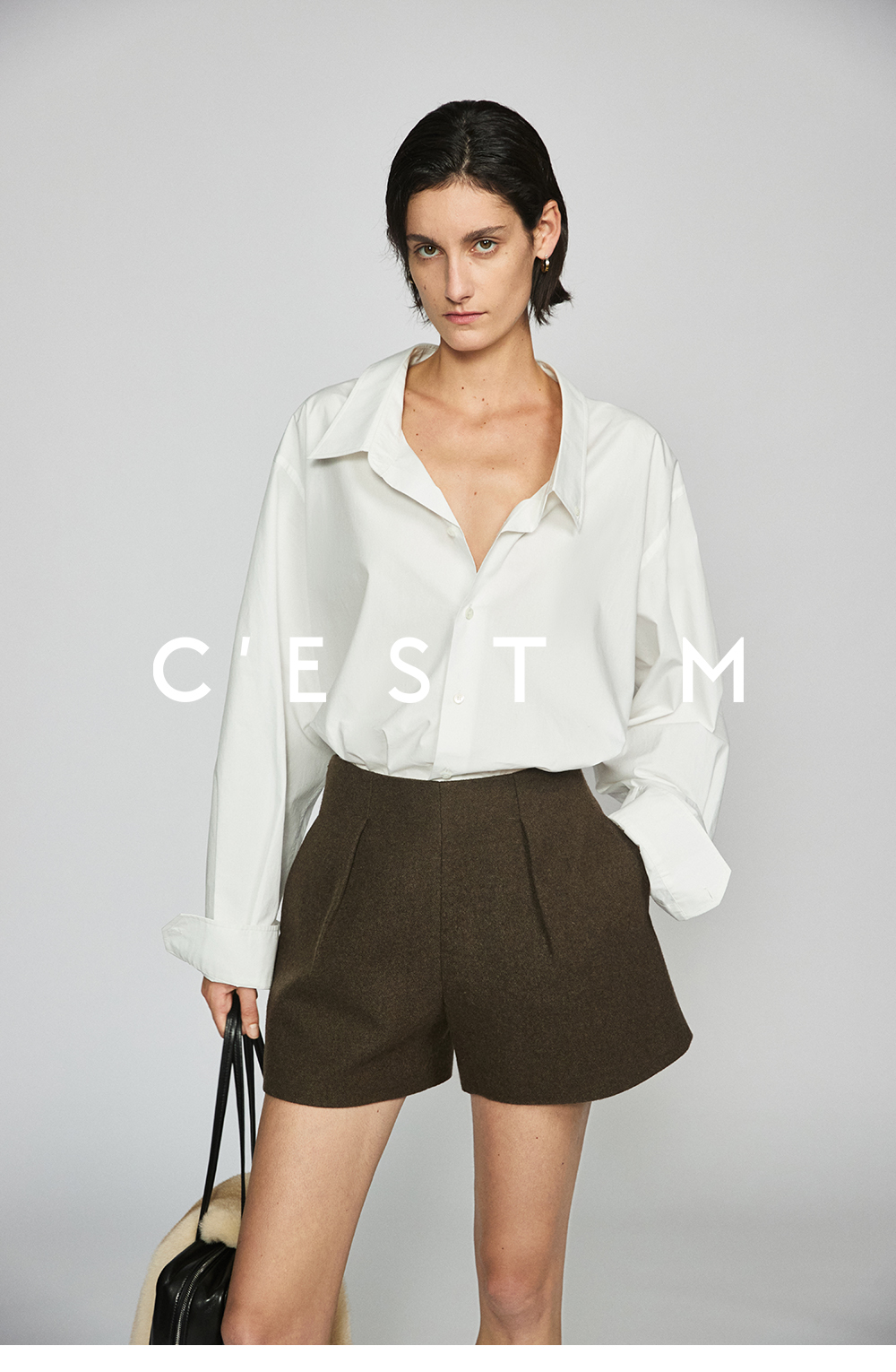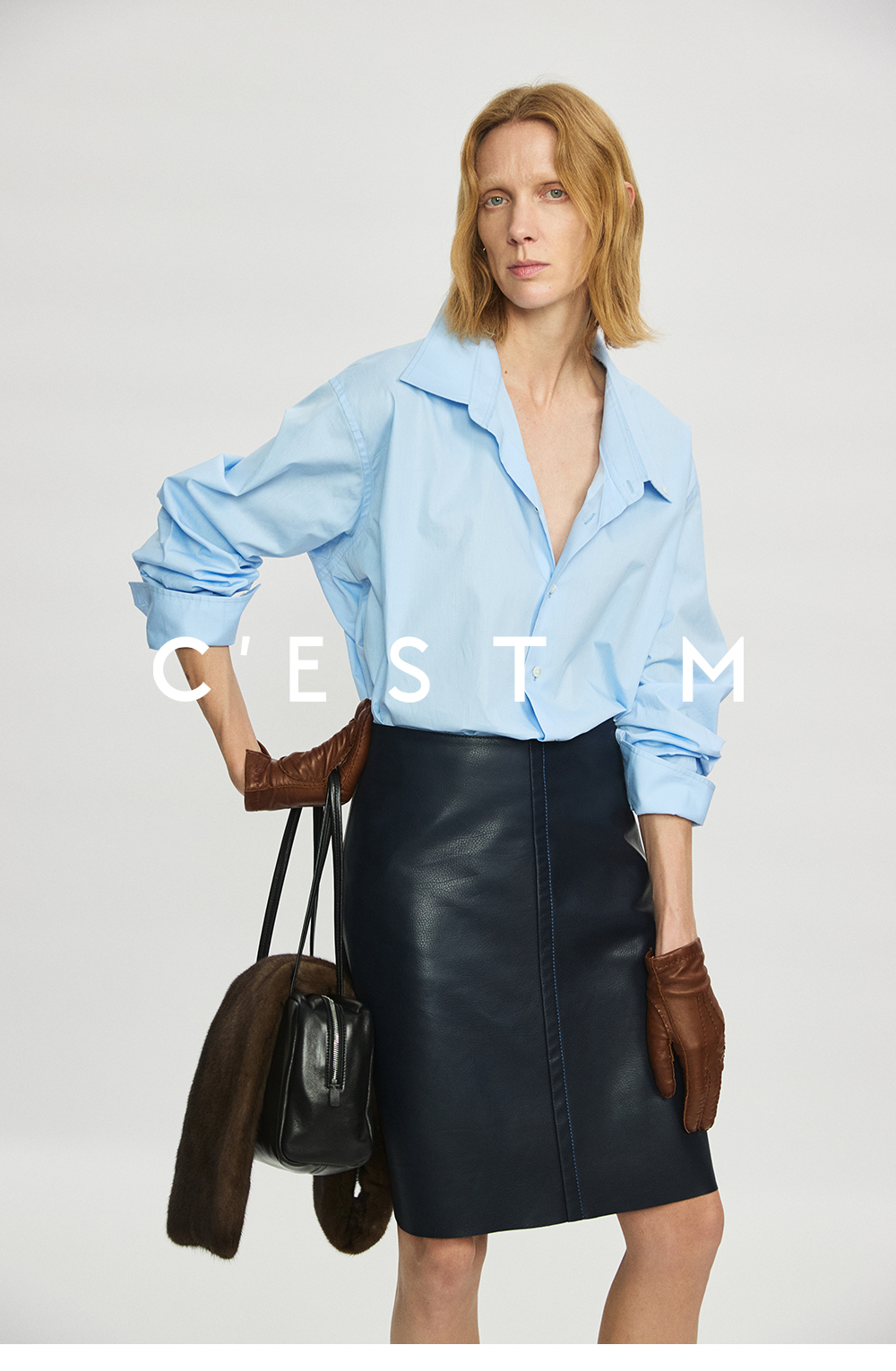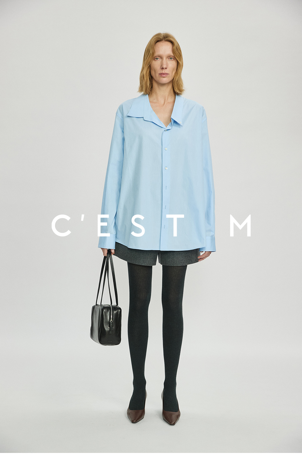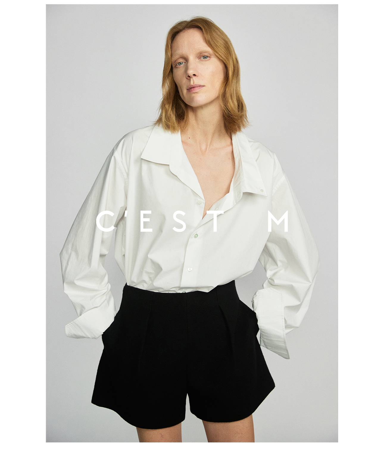 Cest M丨Italian Imported Cafissi Pure Cotton Poplin Pra Runway Deconstructed Pleated Collar Silhouette Shirt