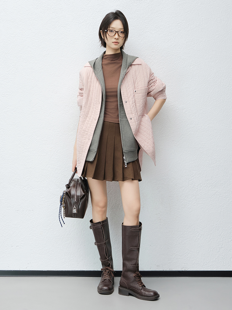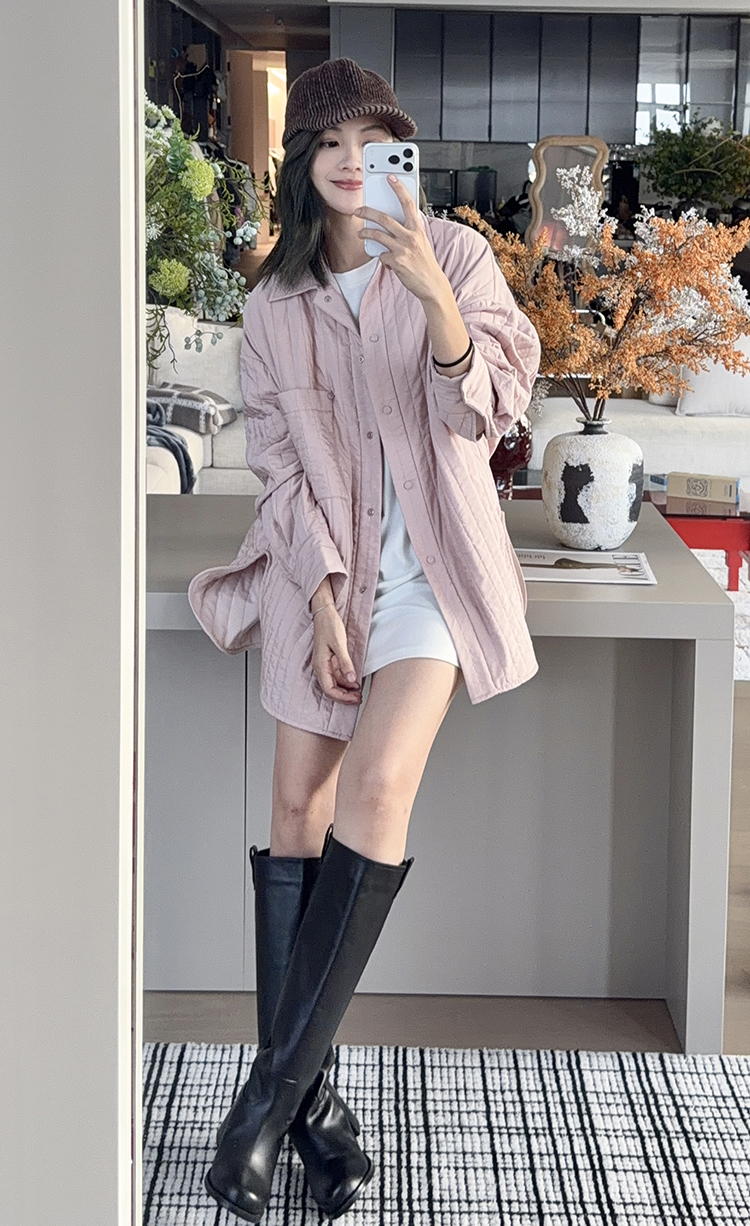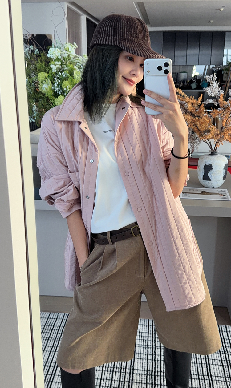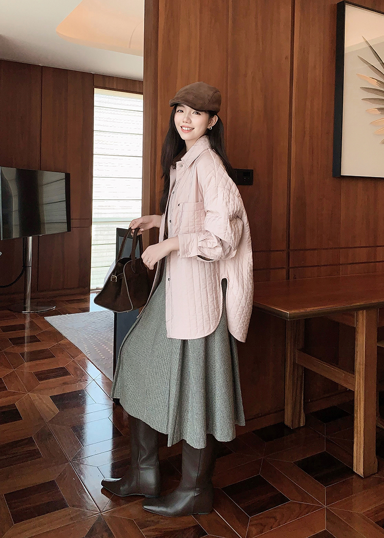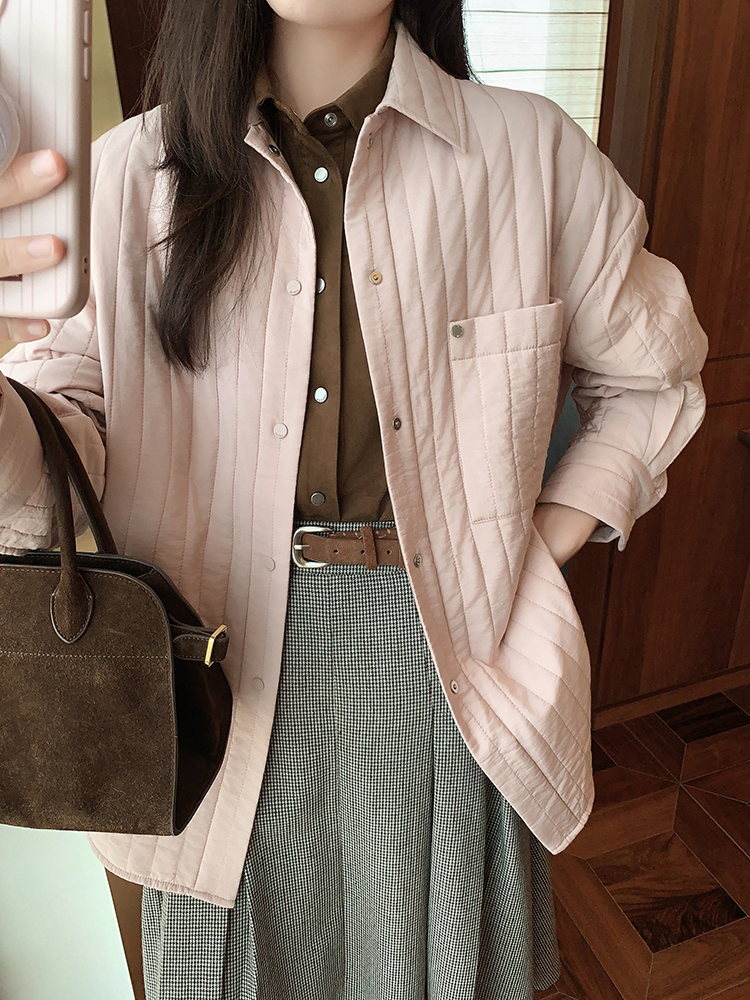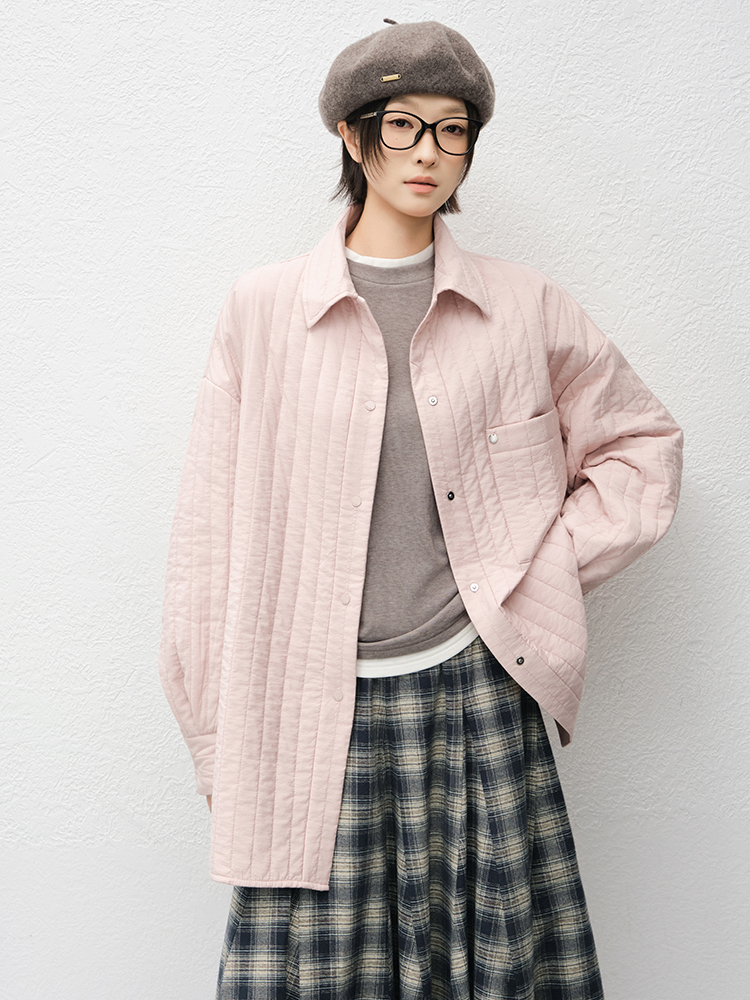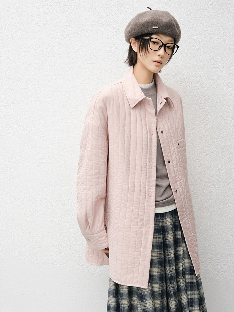 Meiyang Peach Cotton Jacket Silk Blend*3M Cotton Filling Sweet and Gentle Shirt-Style Coat - Thursday