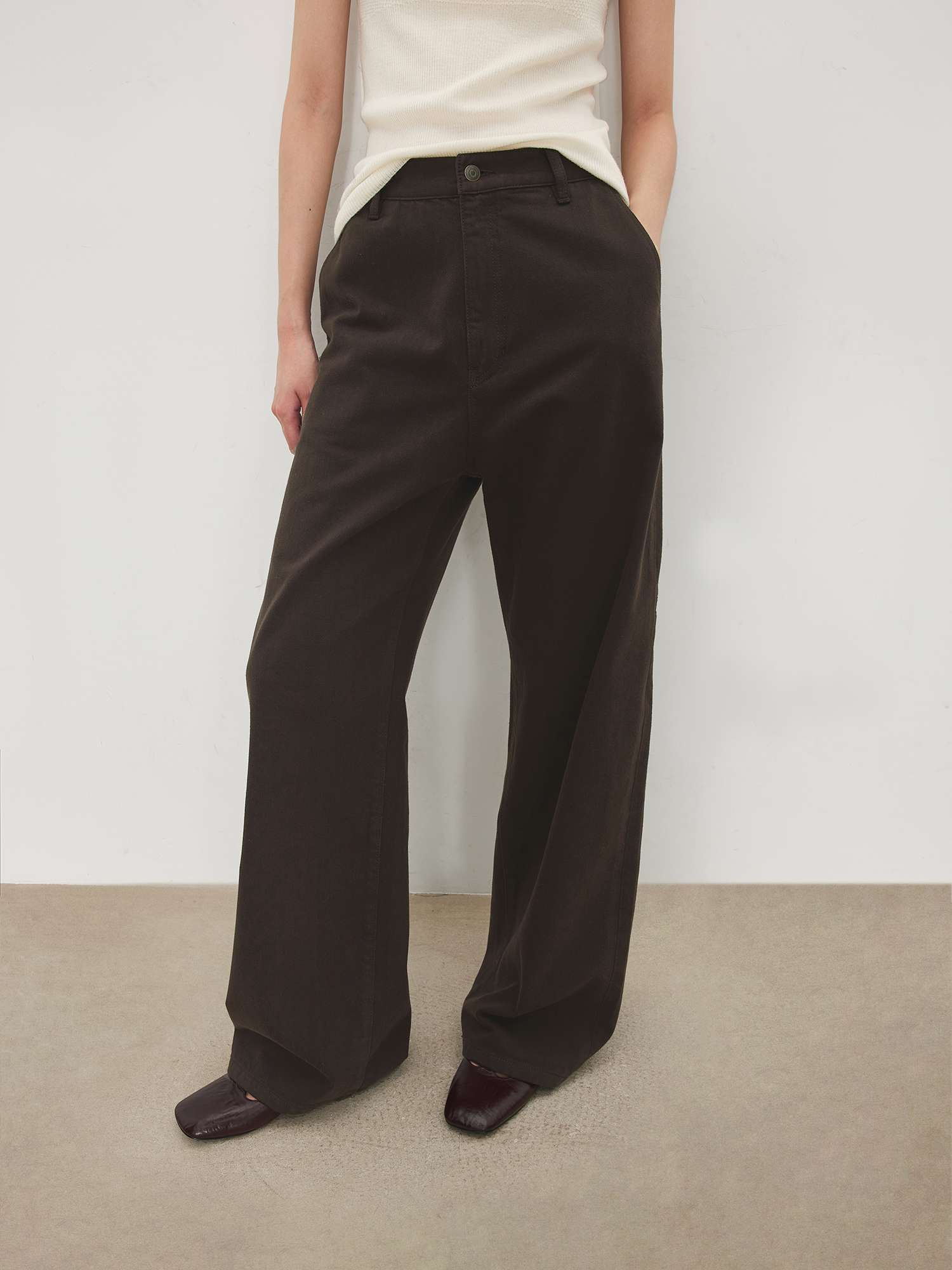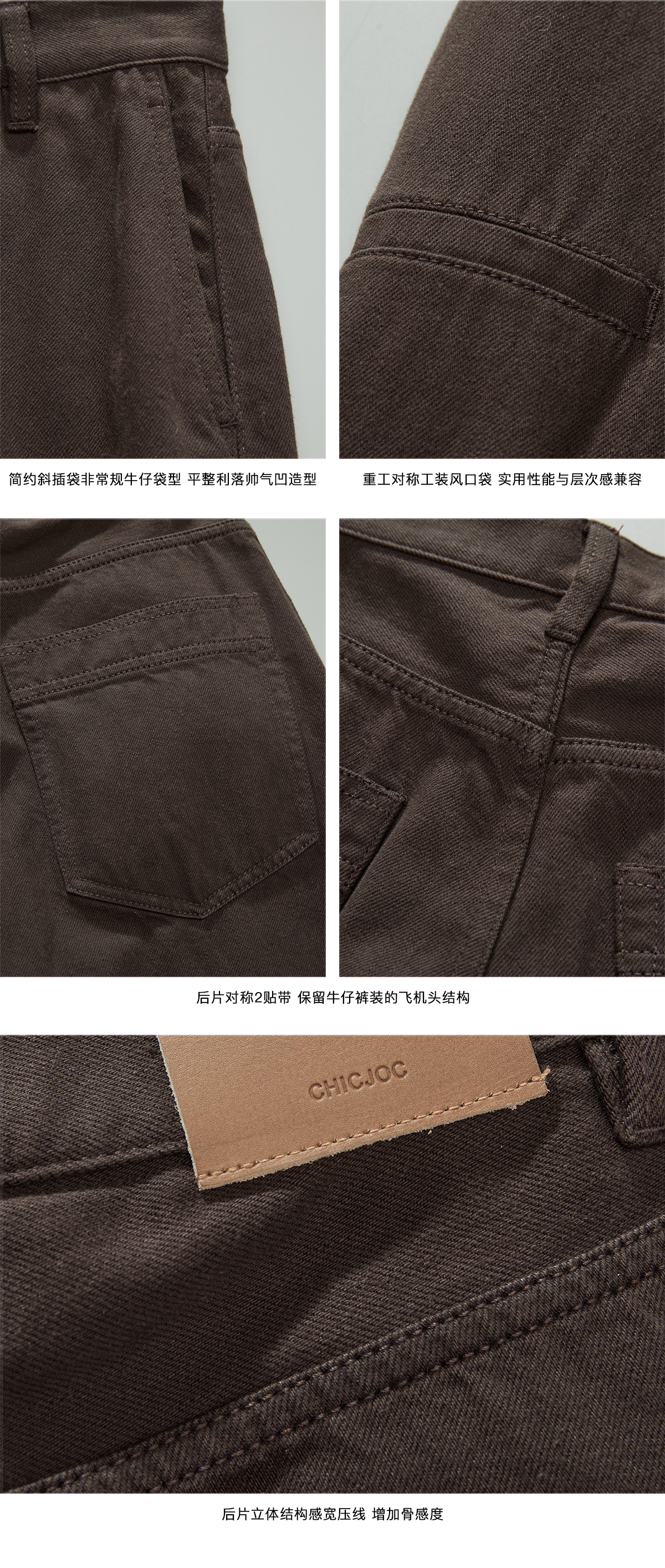 Chicjoc Super Fashion Show Collection_100% Cotton Colorful Vintage Workwear Pocket Slightly Curved Wide-Leg Jeans