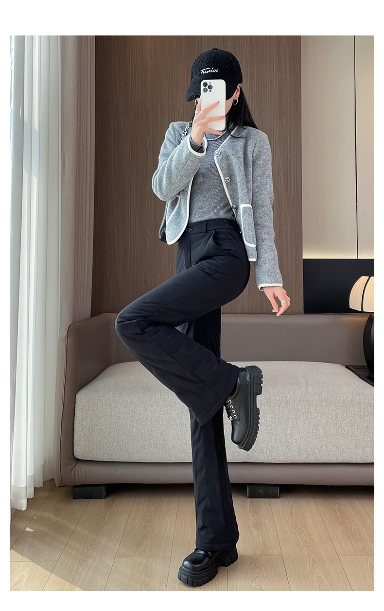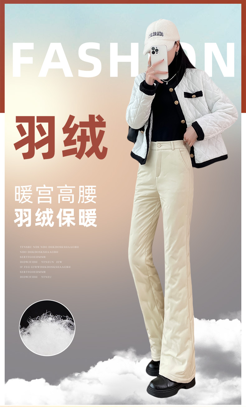 Flared down Pants for Women, Suitable for Outdoor Wear, 2025 Winter New Model, 90% White Duck Down, Thickened for Cold Weather down to -40 Degrees in Northeast China, Cold-Proof Cotton Pants