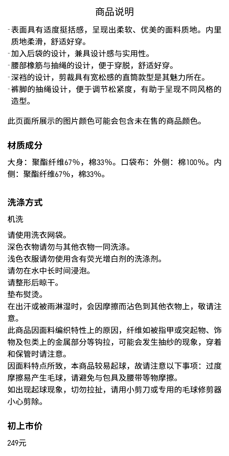 Uniqlo Collaboration Men's and Women's Loose-Fitting Sports Pants Casual Pants Regular Style 479946