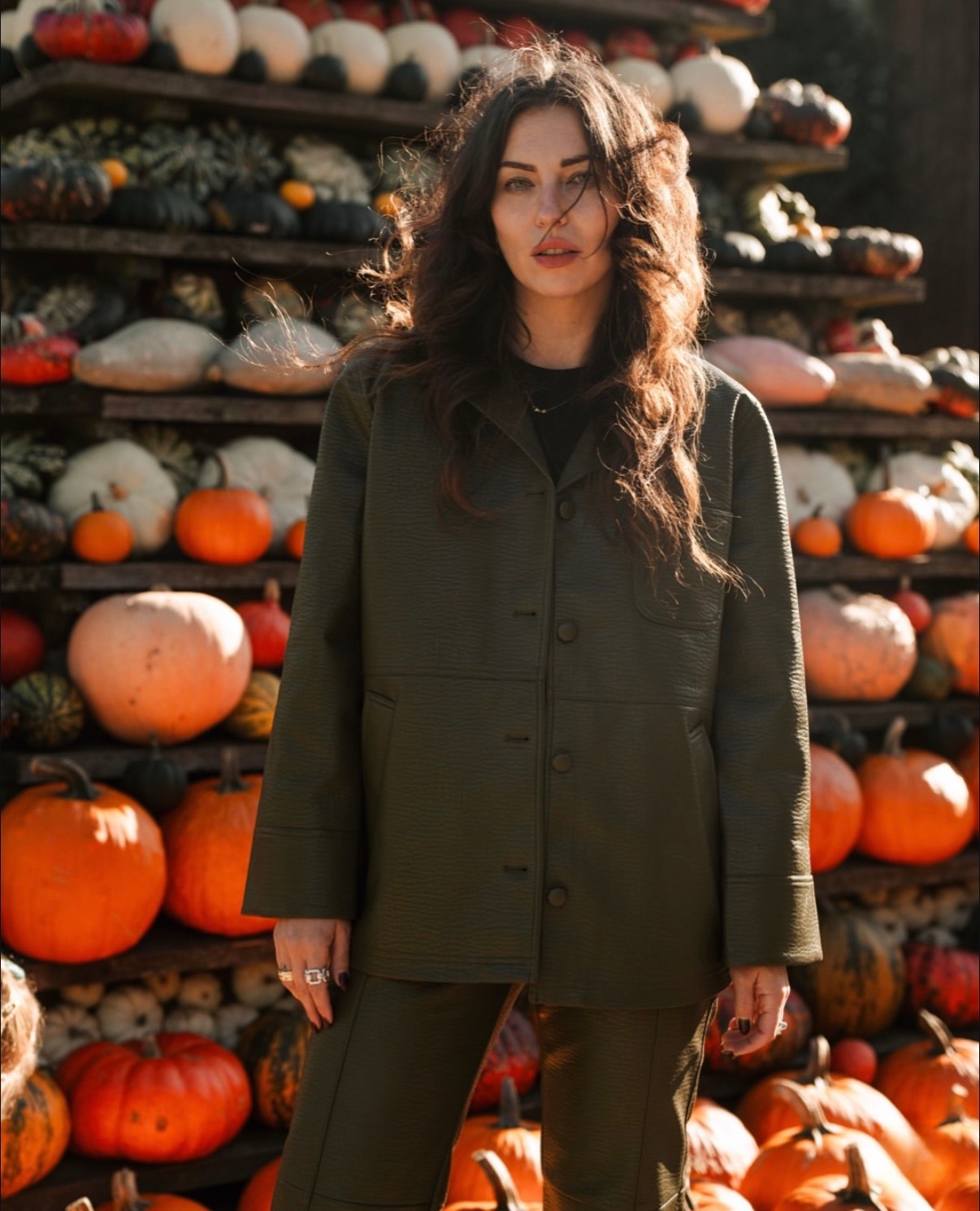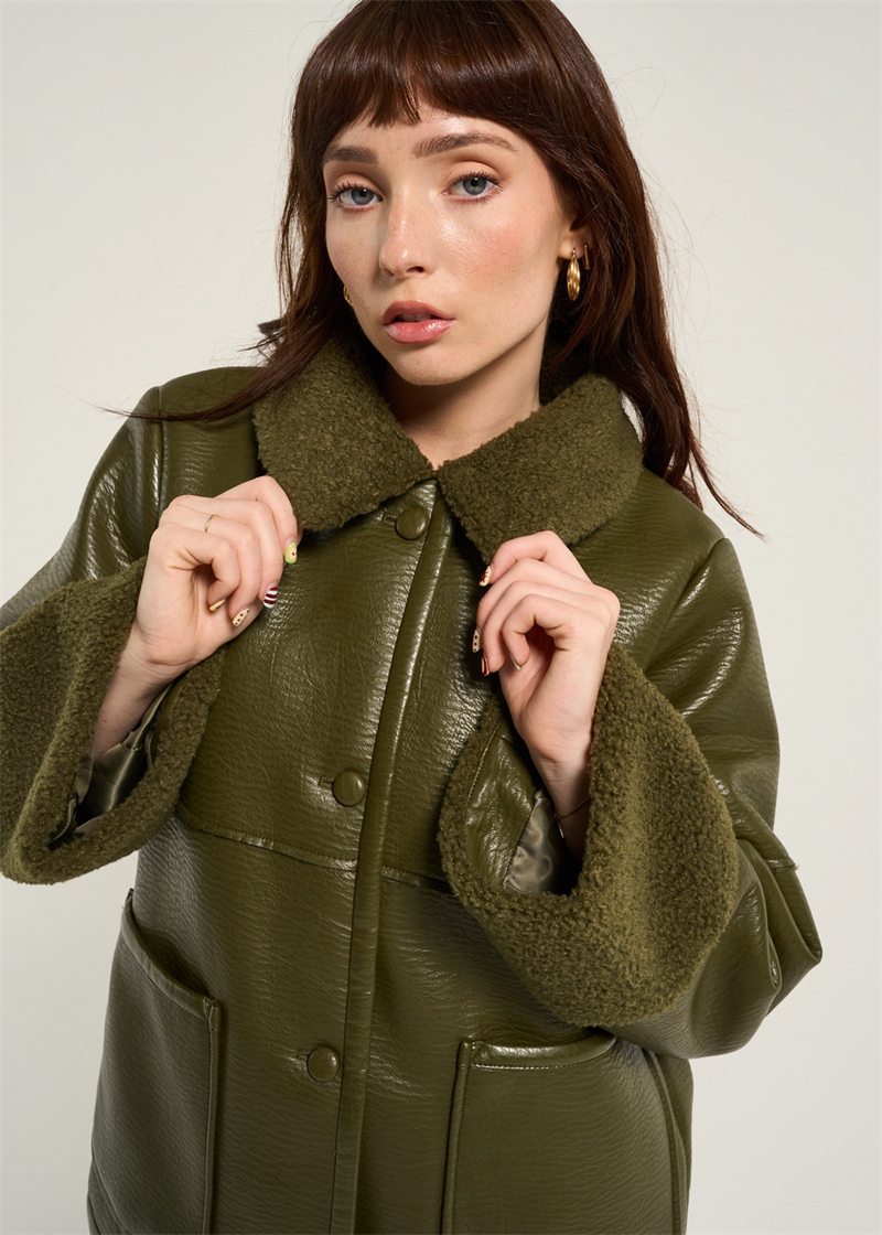 Nordic Niche Bup Irregular Line Embossed Faux Leather Pu Protein Leather Jacket/Leather Pants