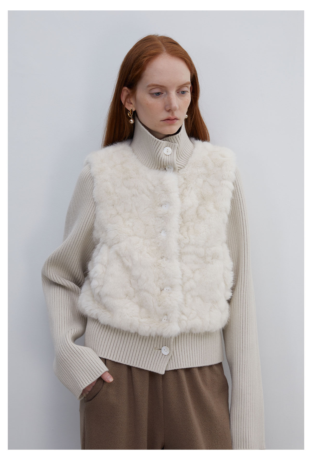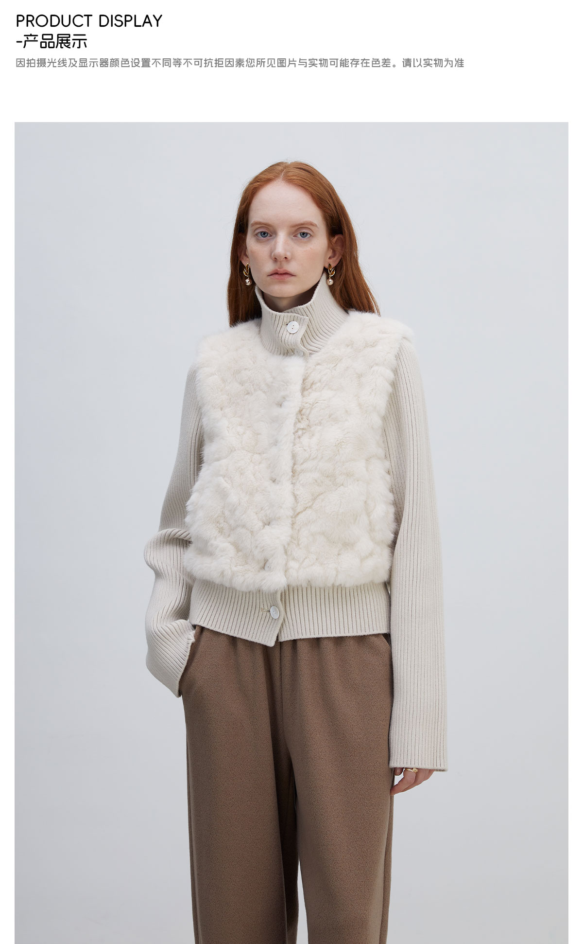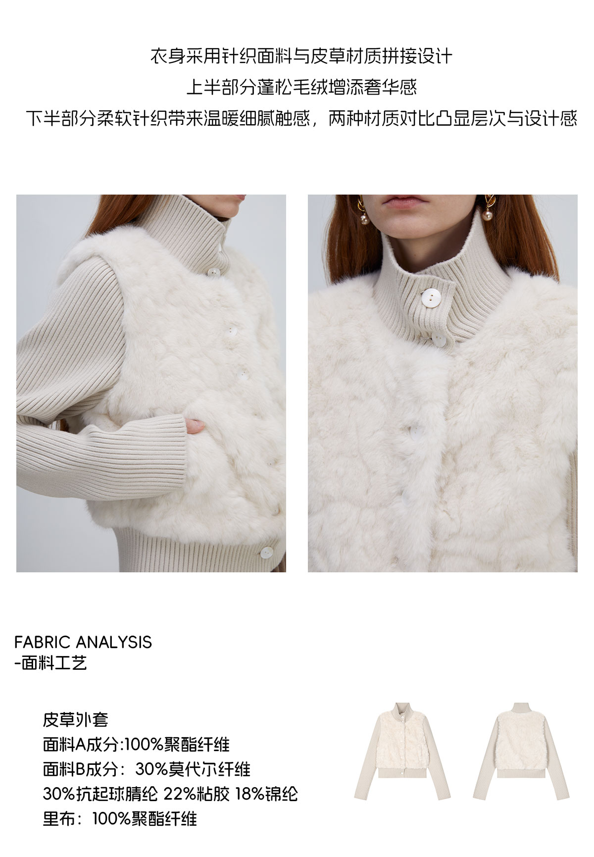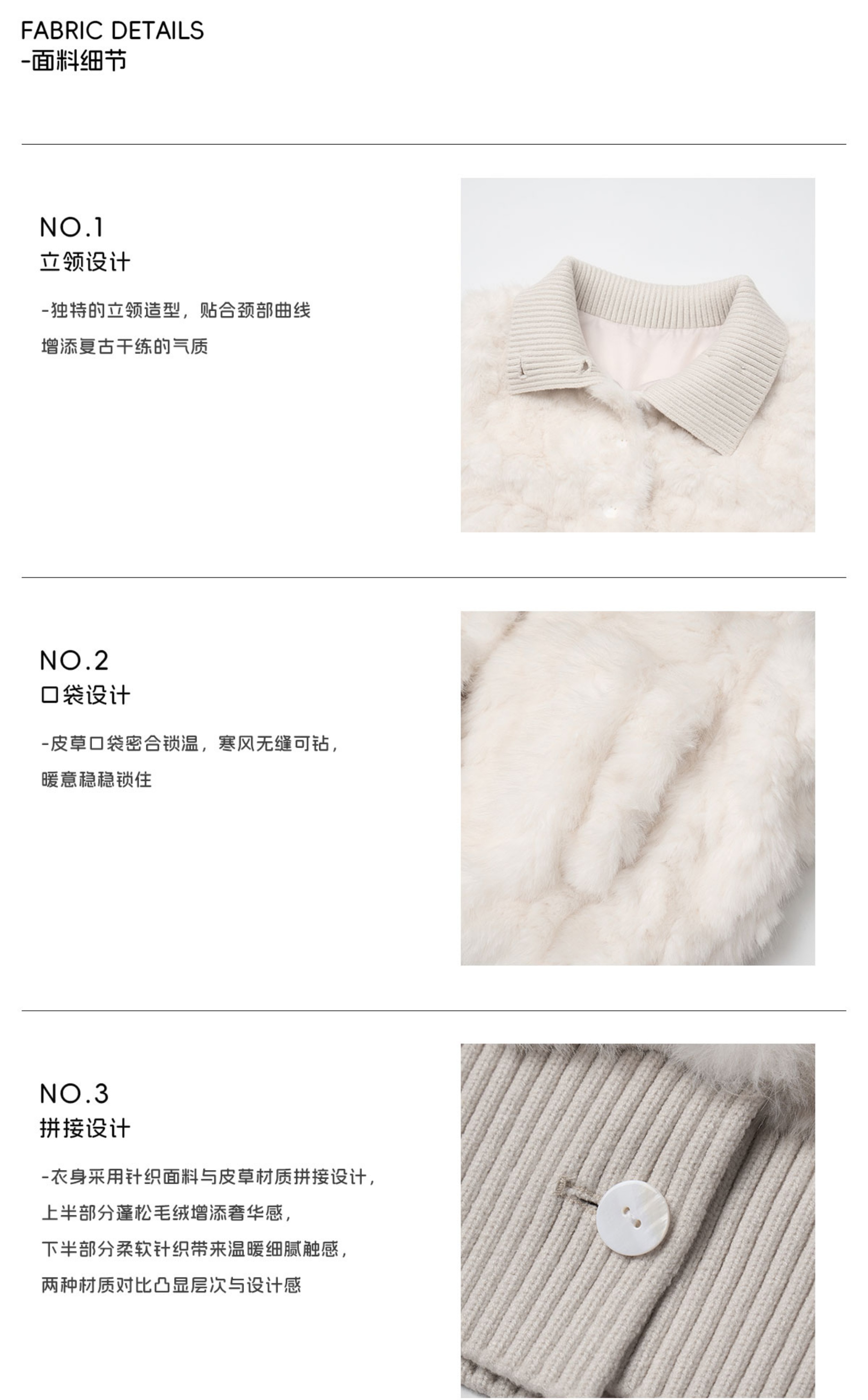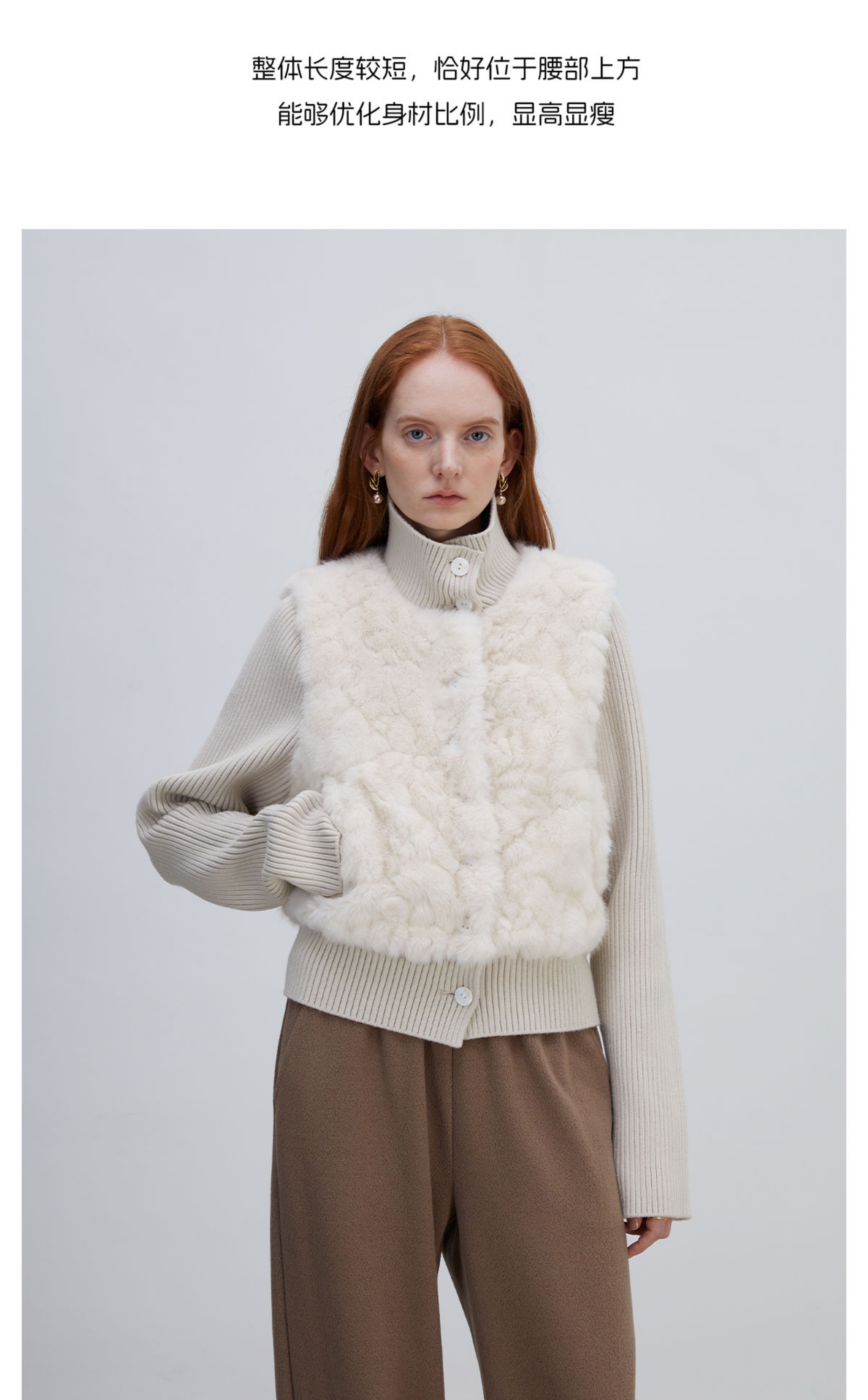1Mirro2025 New Winter French-Style Knitted Fur-Trimmed Short Coat for Women, Elegant, Warm, Eco-Friendly Fur