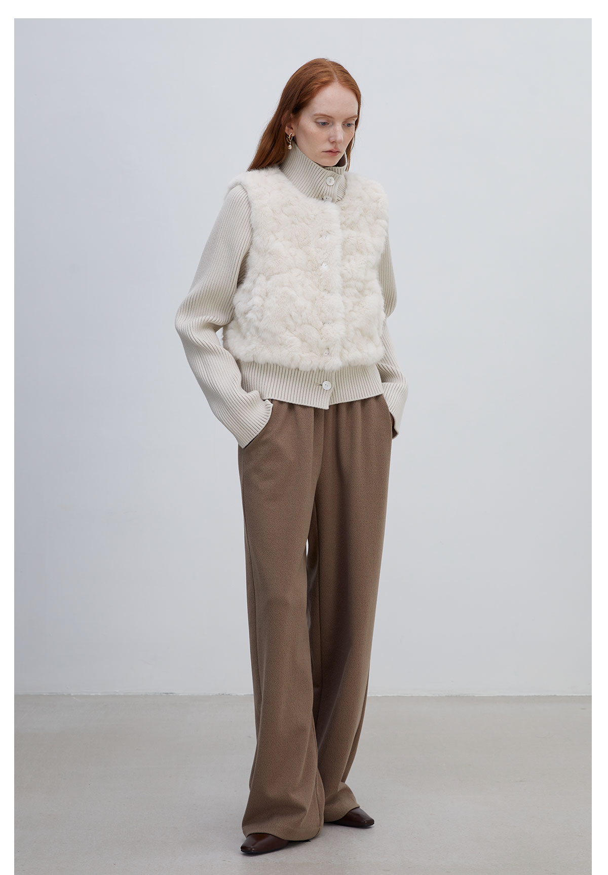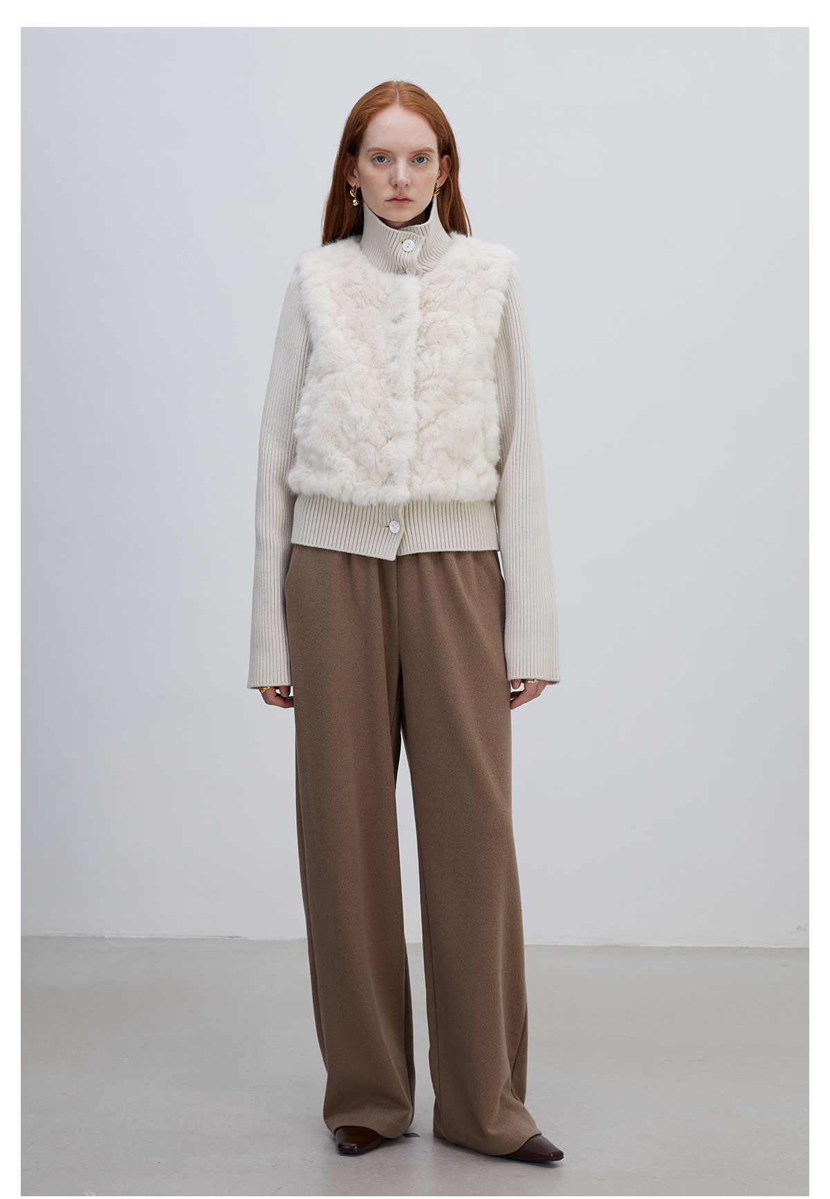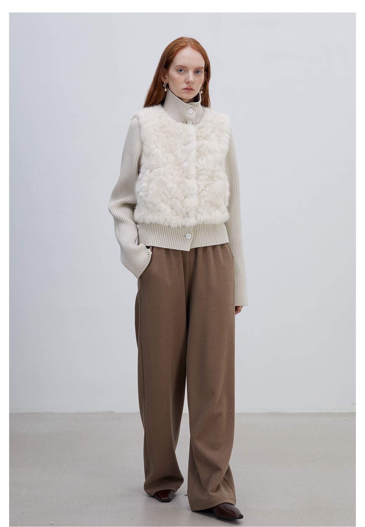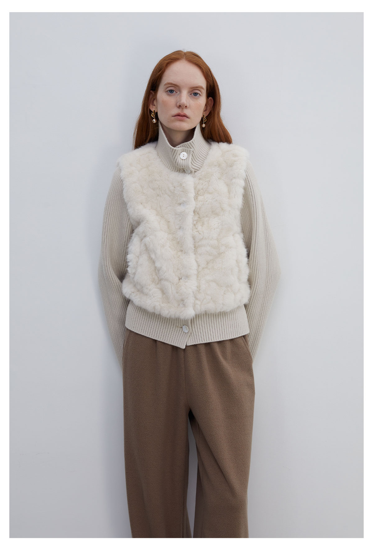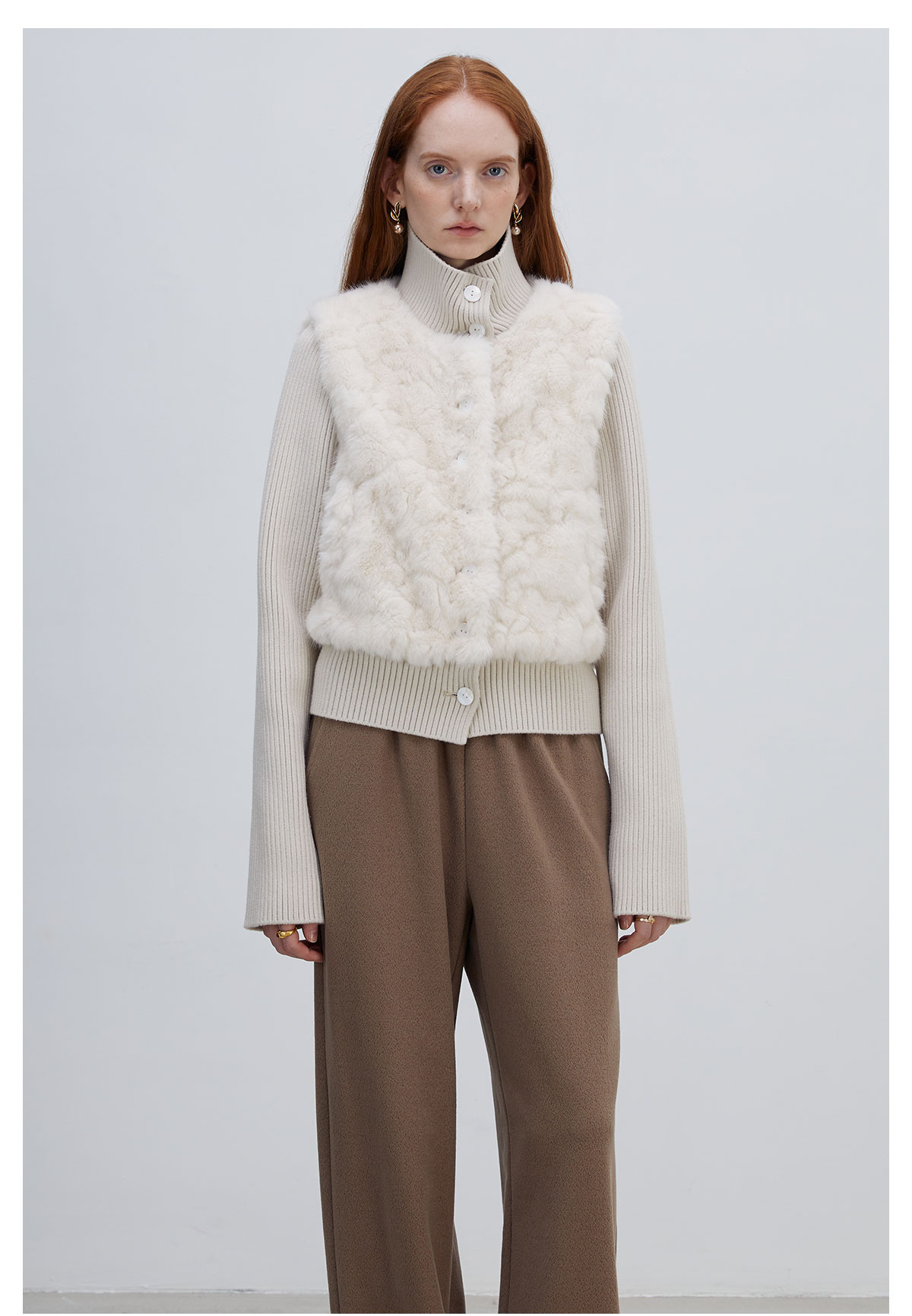 1Mirro2025 New Winter French-Style Knitted Fur-Trimmed Short Coat for Women, Elegant, Warm, Eco-Friendly Fur