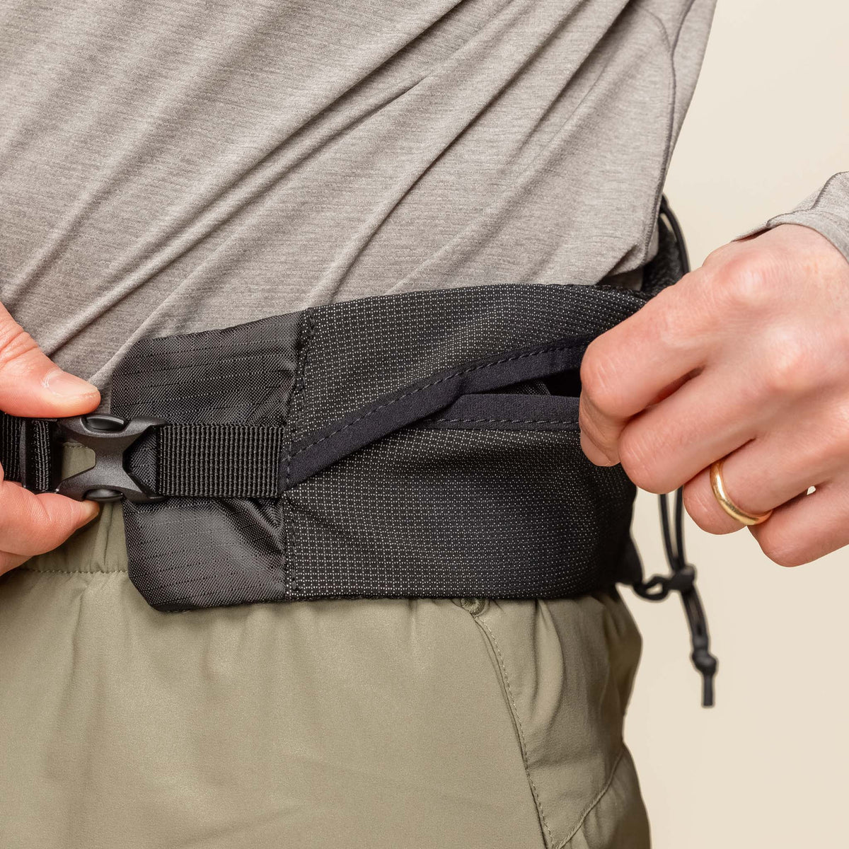 这款货运腰带安全、轻便、舒适,且尺寸宽大,适合快速移动活动。面料采用超高分子量聚乙烯(也称为弹性迪尼玛)制成,具有超强韧性和耐磨性。舒适度并控制湿度。这款腰带容量充足,可容纳 500 毫升软水壶、手机和其他小件必需品,可调节的绳带让您可以根据需要调整腰带的贴合度和功能。