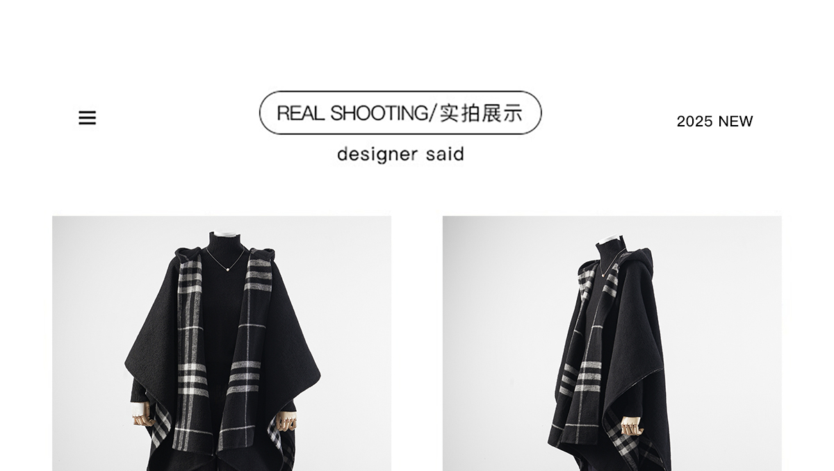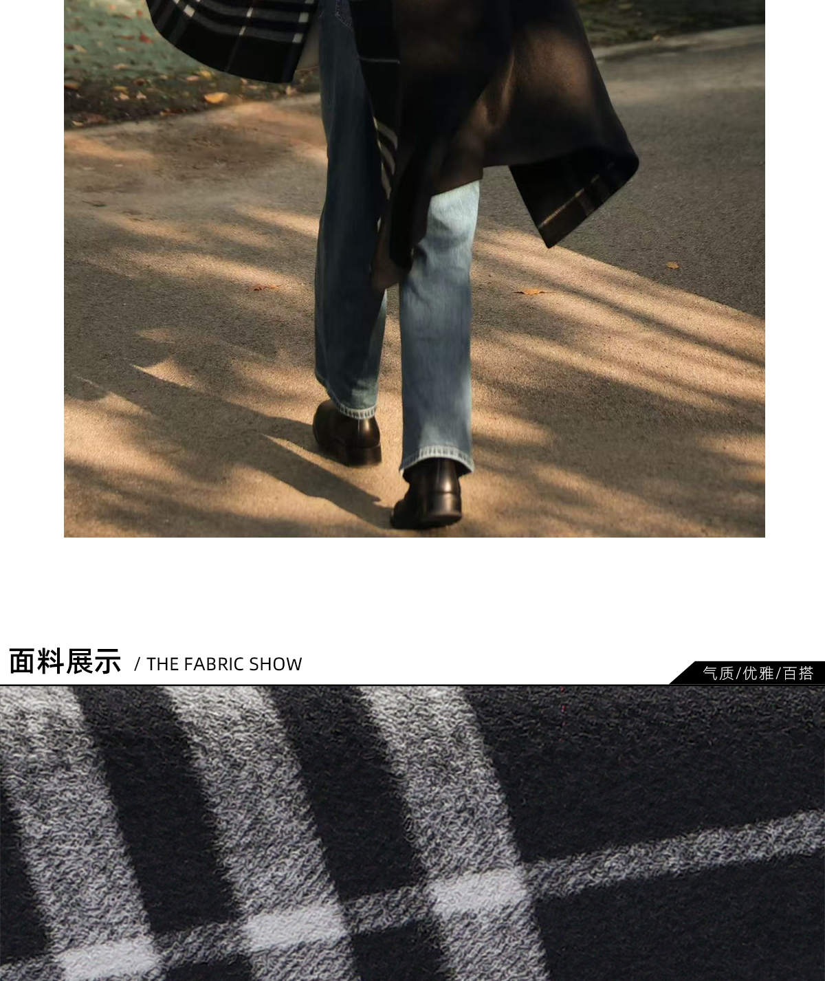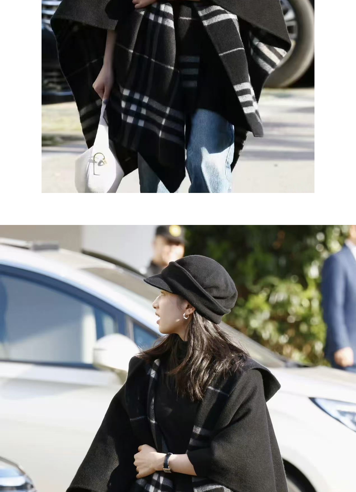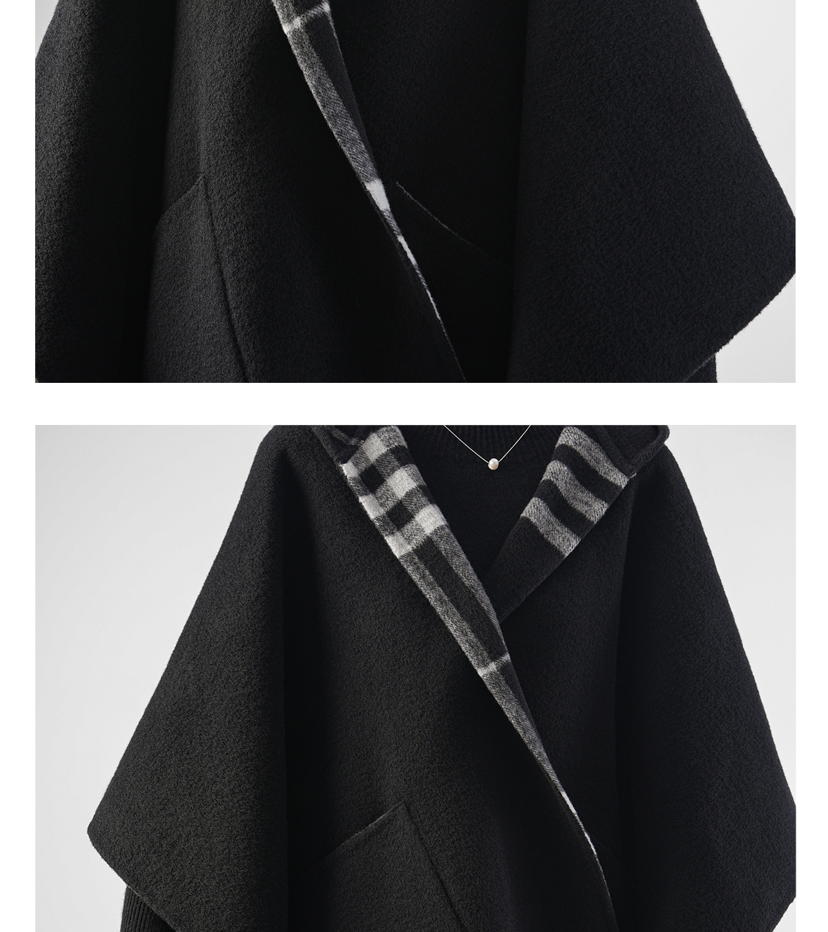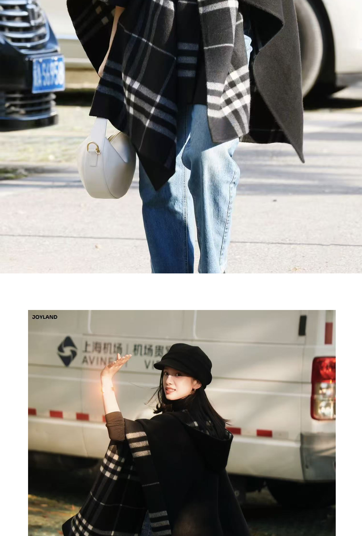 High-End Version ~ 100% Australian Wool Zhang Jingyi Style Black Plaid Shawl Cape Double-Sided Wool Hooded Coat