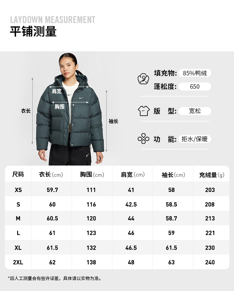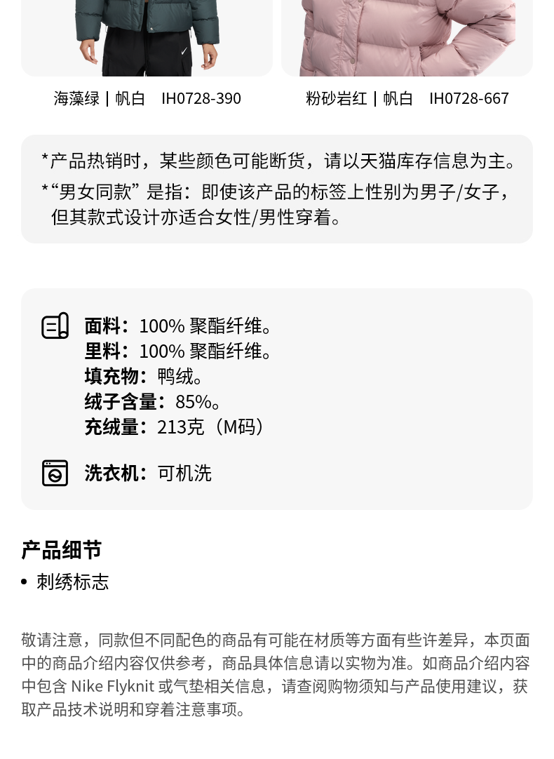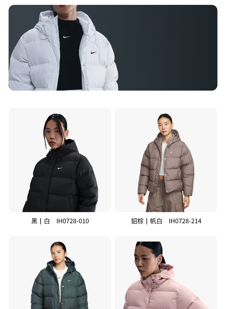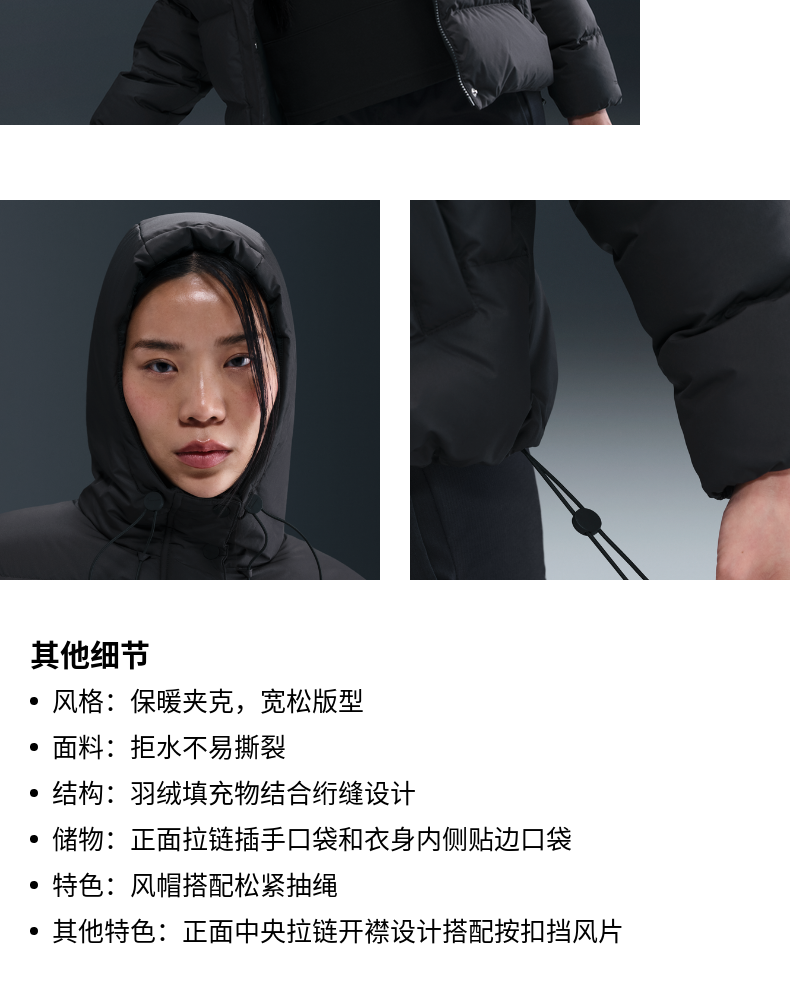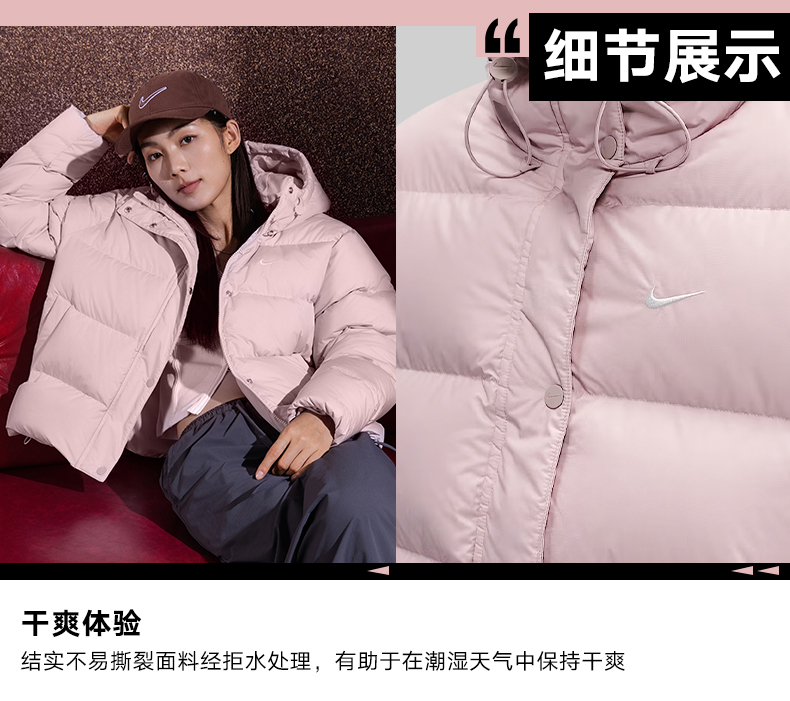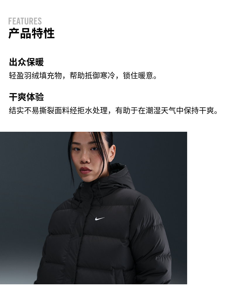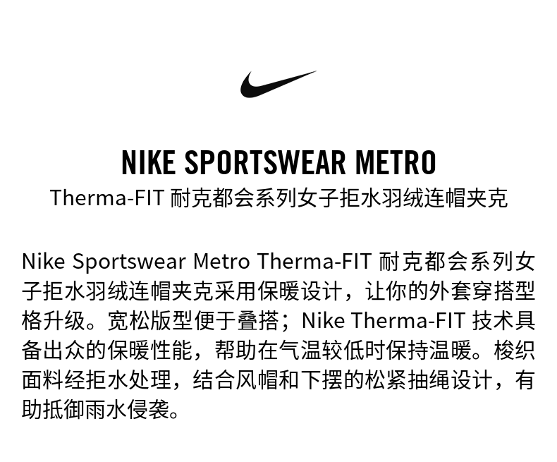 Nike Women's Loose down Jacket Hooded Jacket Winter Water-Repellent Coat Puffer Jacket Ih0728-667