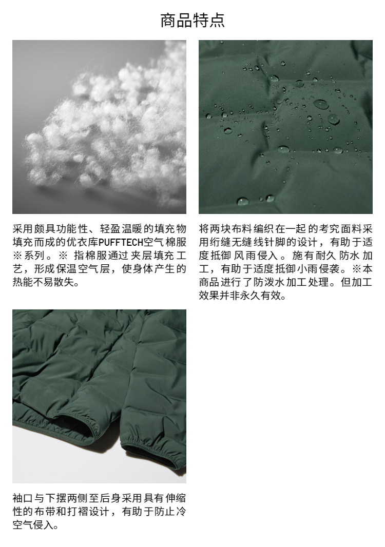 Uniqlo Men's and Women's Pufftech Air Cotton Hooded Jacket 470118