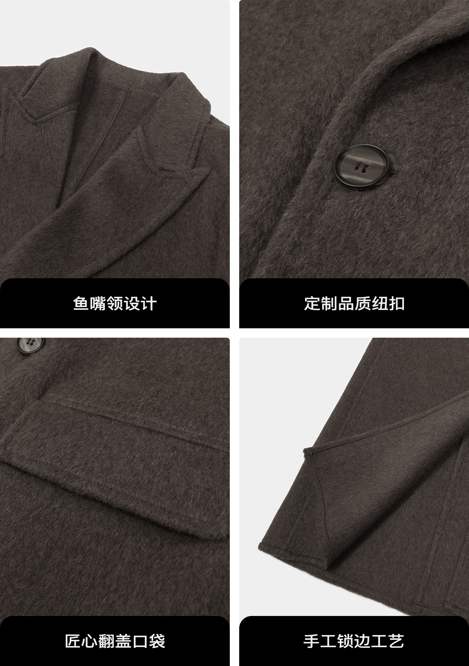 W2X2025 Autumn and Winter New Style 100% Pure Wool Double-Sided Woolen Coat Men's Mid-Length High-End Woolen Jacket