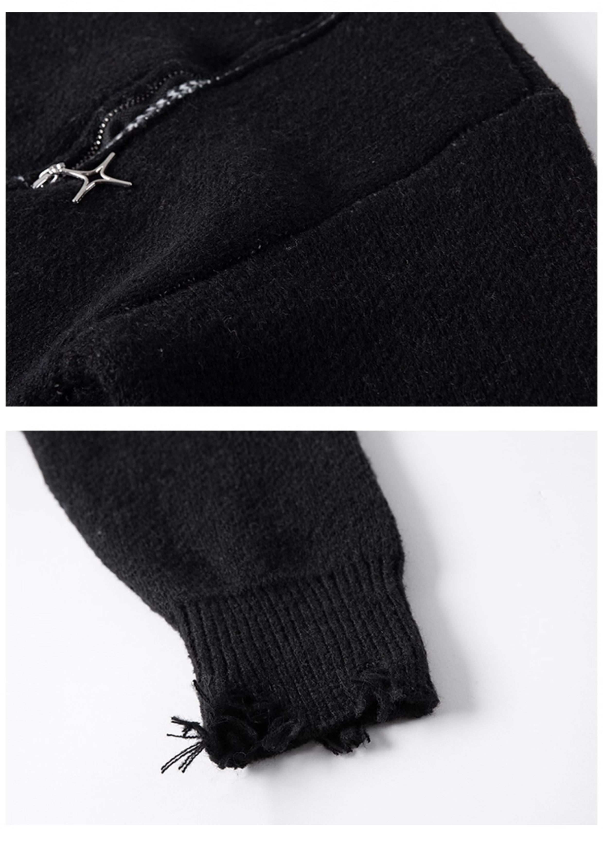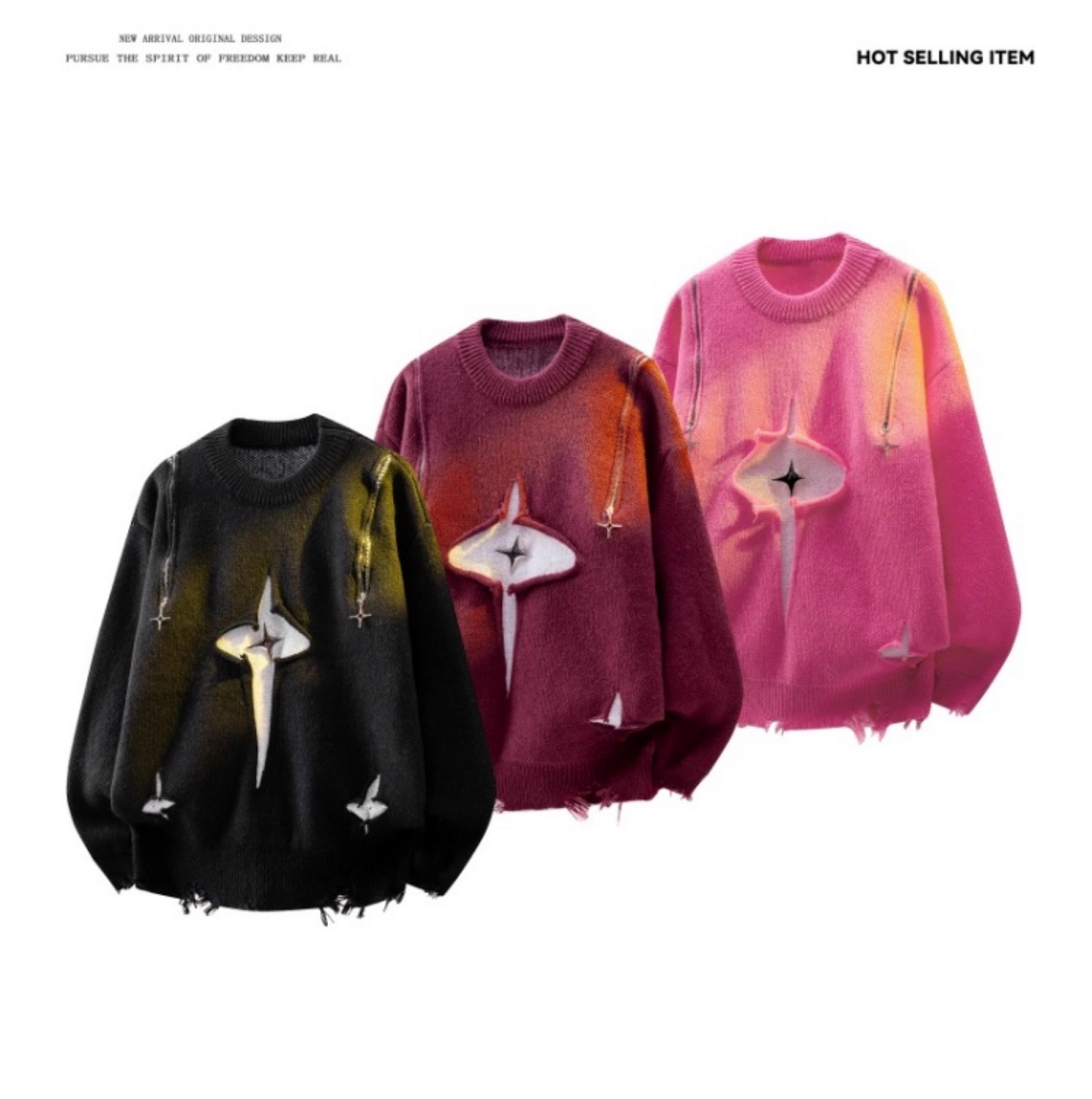 Wassup Issue Dopamine Style Pink Ripped Knit Sweater for Men, Autumn and Winter Design, Loose Knit Sweater for Men