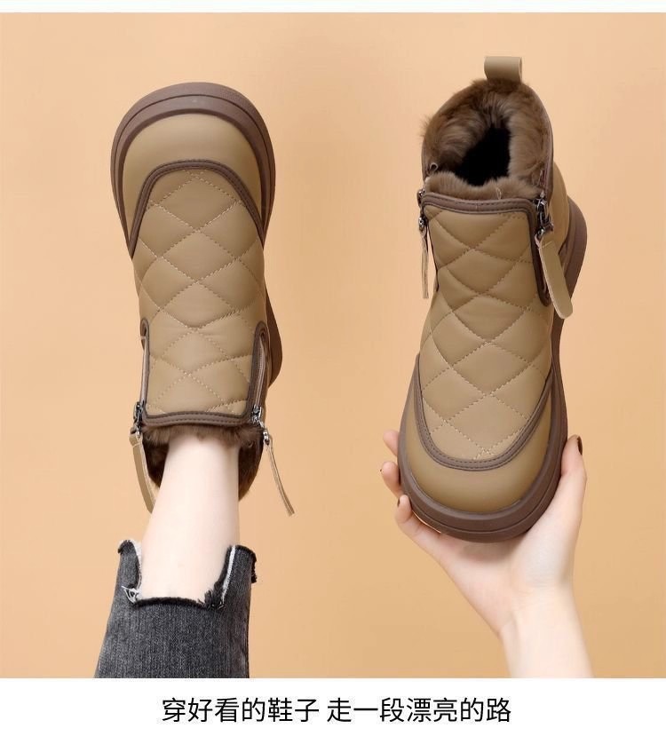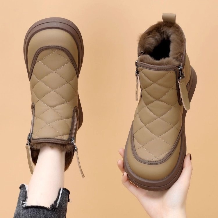 Genuine Fur Integrated High-Top Large Cotton Shoes Women's Snow Boots 2025 Winter Fleece-Lined Thickened Cotton Boots Non-Slip Warm Boots