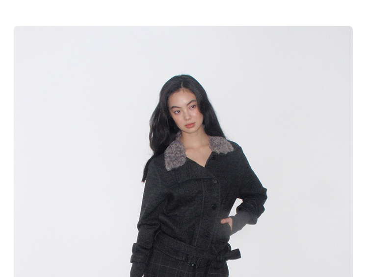 Mito De Dar Wool Stand-Up Collar Slim-Fit Urban Style Tie-Up Fur Collar Winter Short Woolen Coat