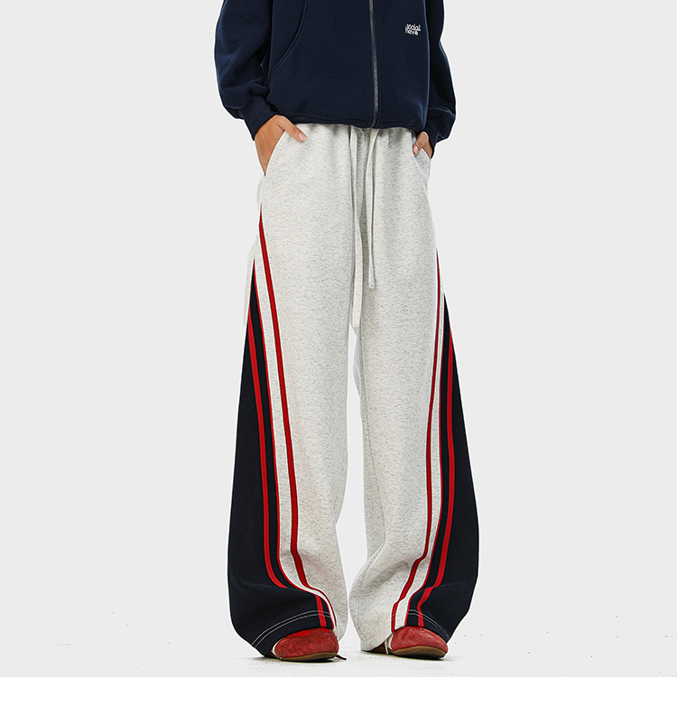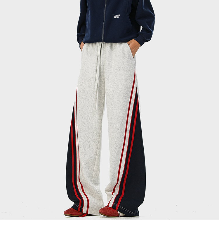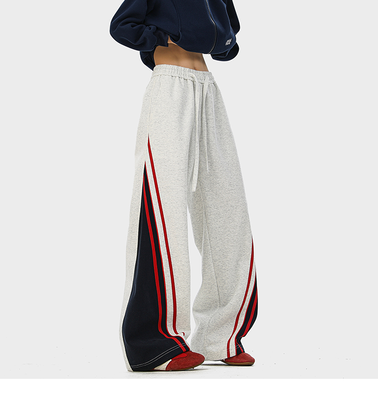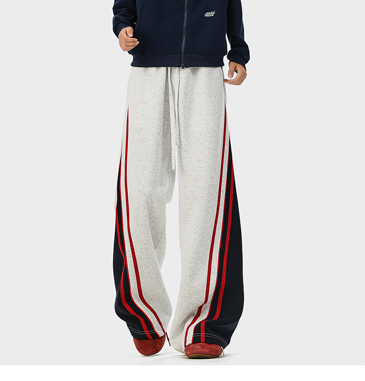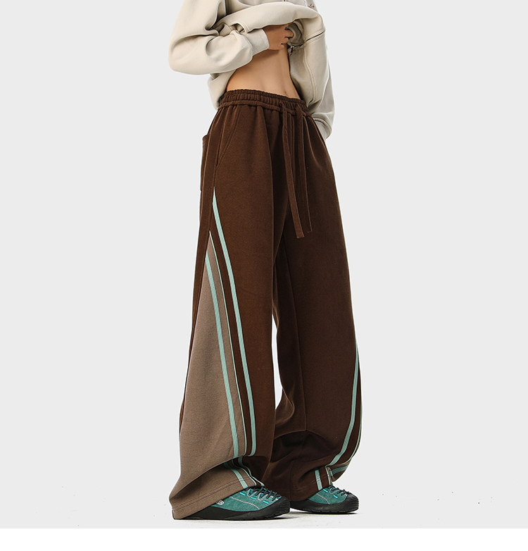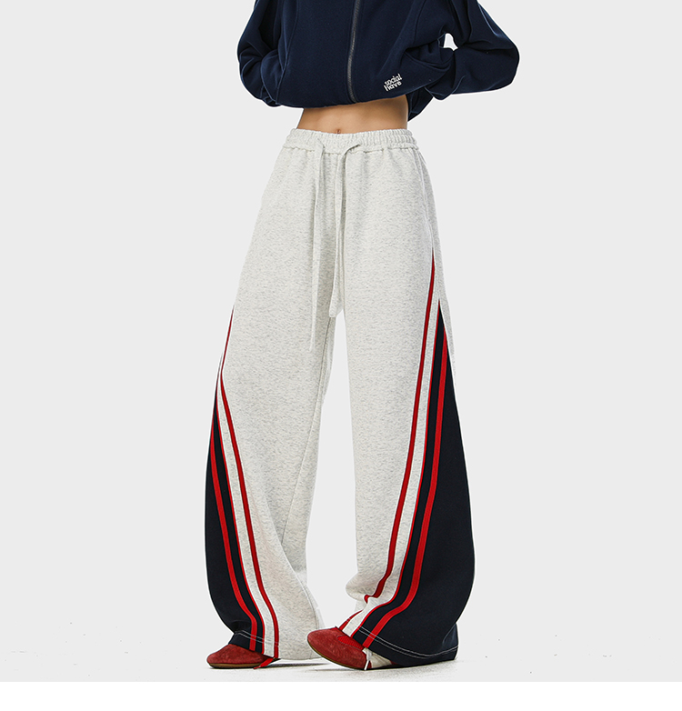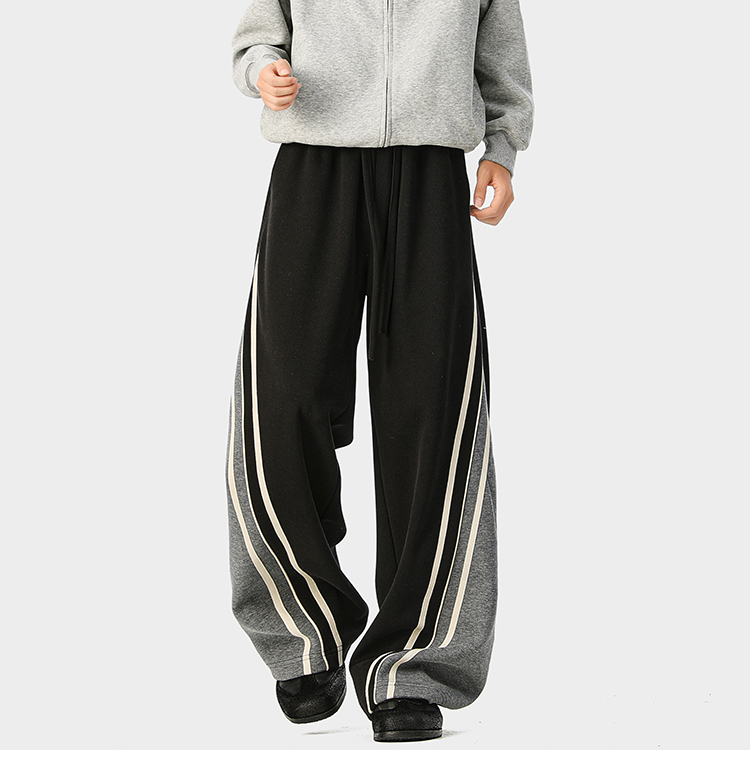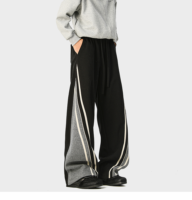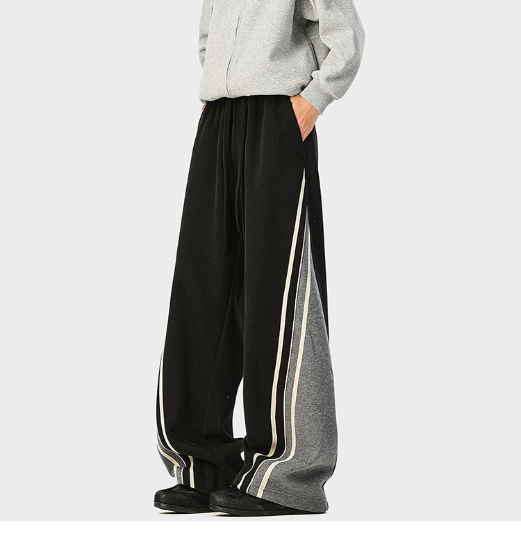American-Style Color-Block Striped Sweatpants Unisex Autumn Trendy Hip-Hop Casual Long Pants Retro Loose Wide-Leg Trousers