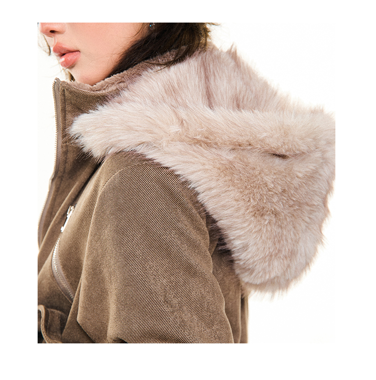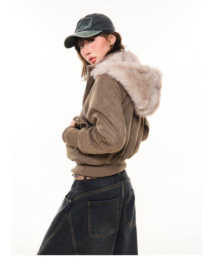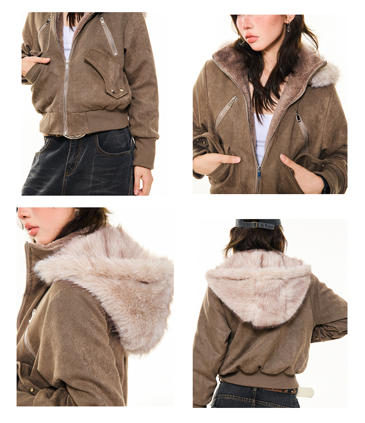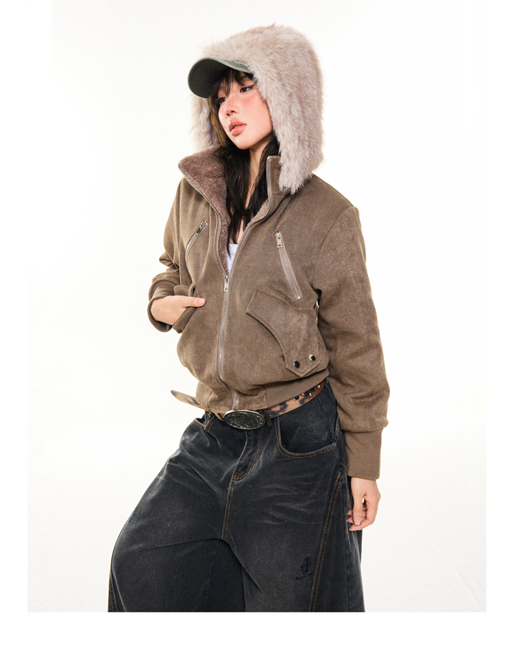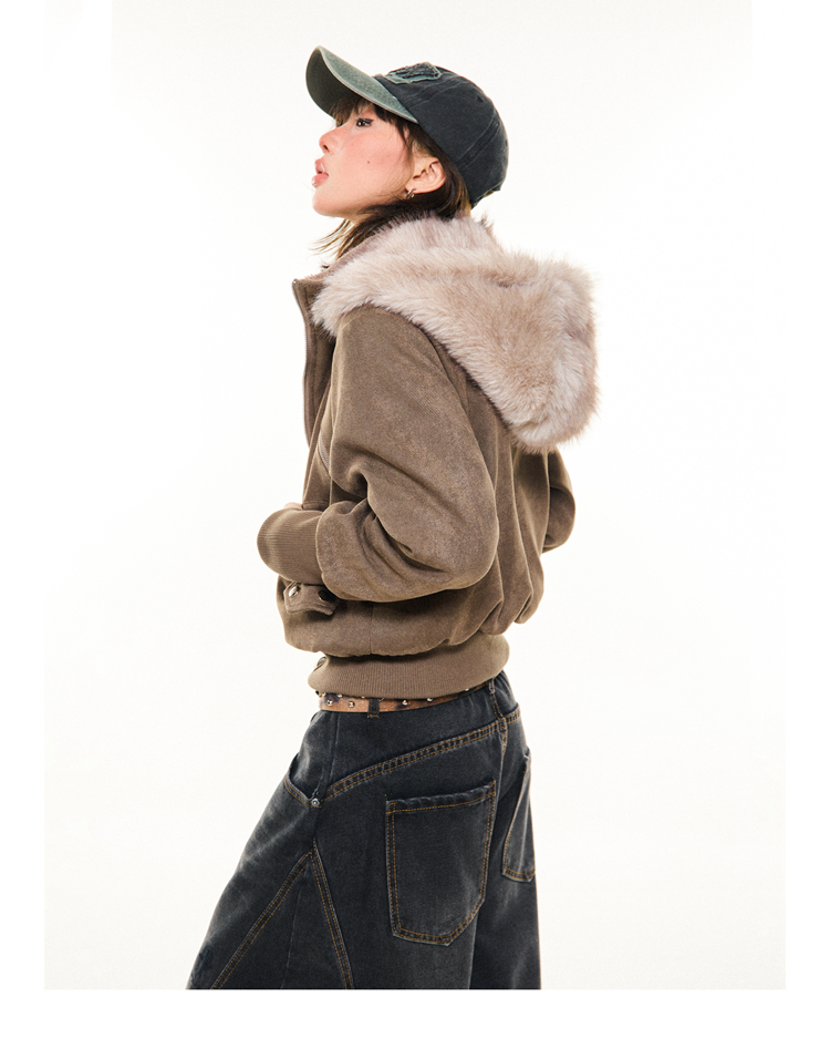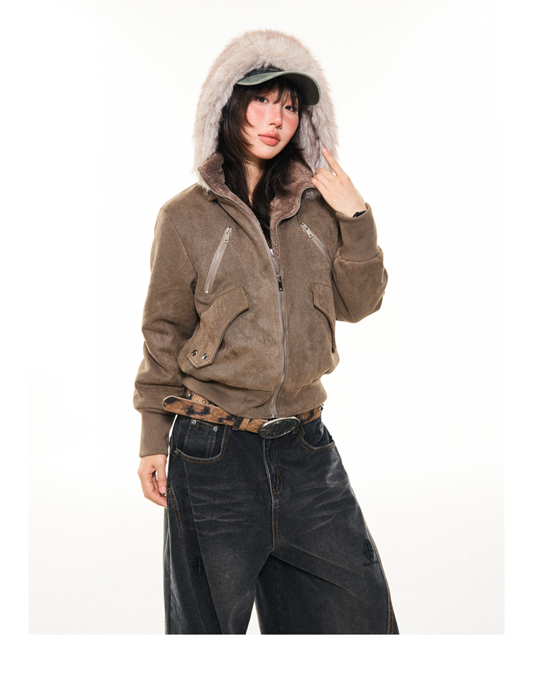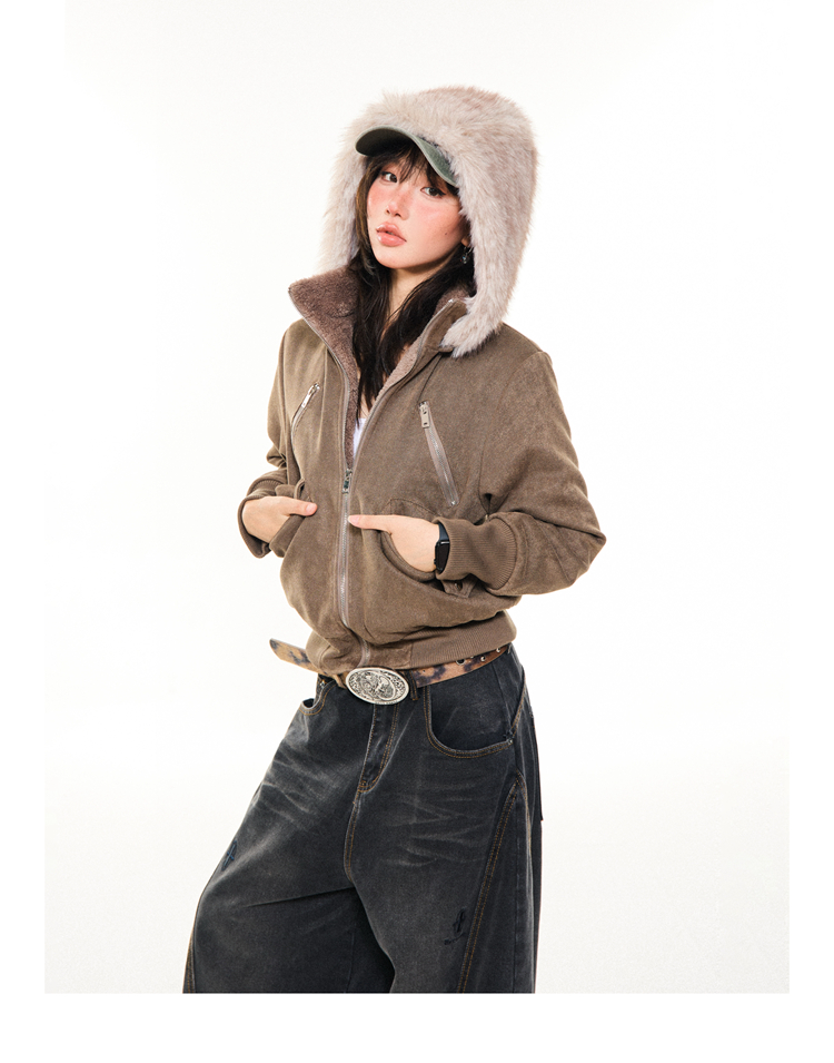 Young Stage Original American Retro Sexy Slim Fit Jacket for Women Winter Thickeneded Plush Lining Short Jacket