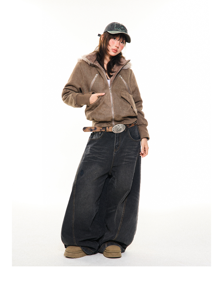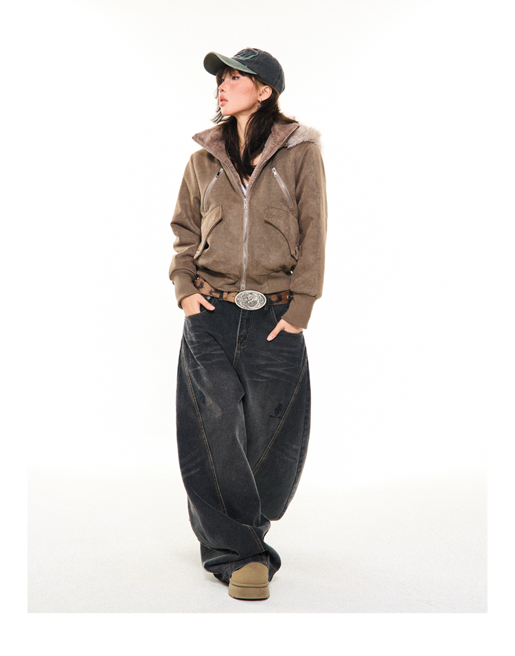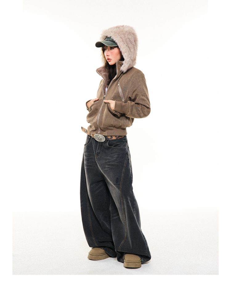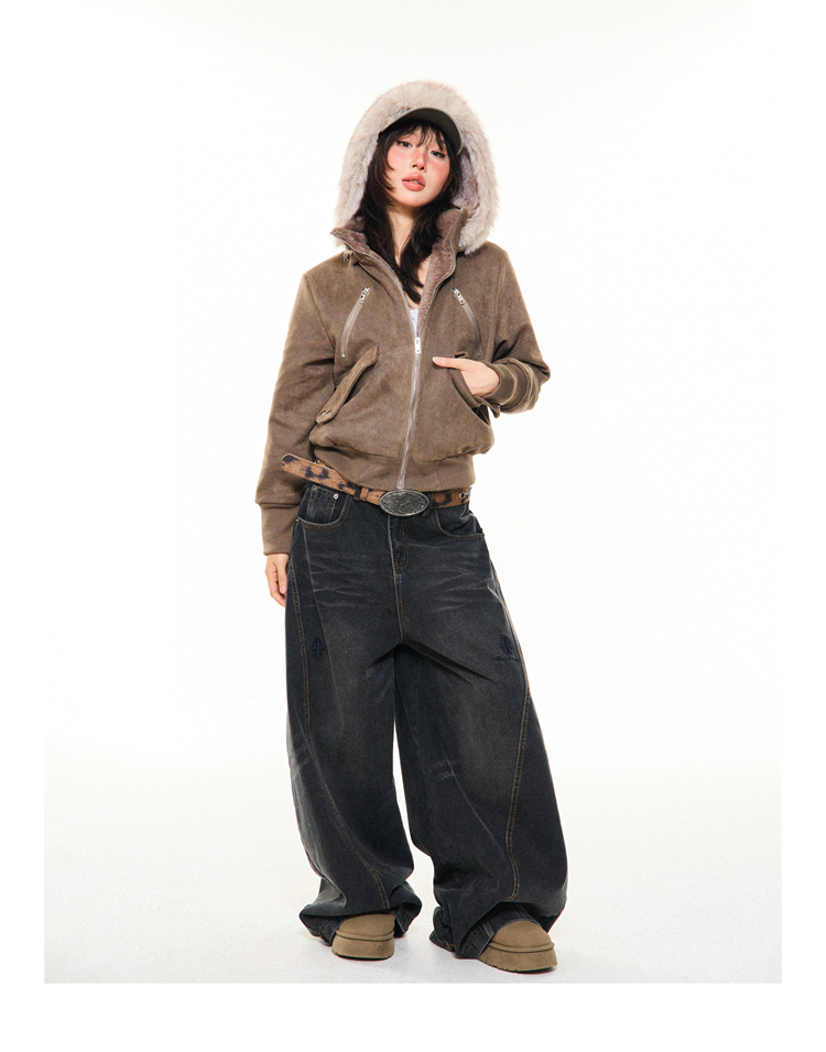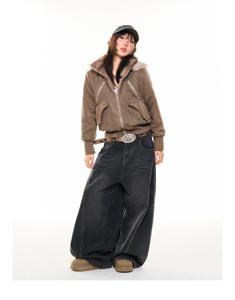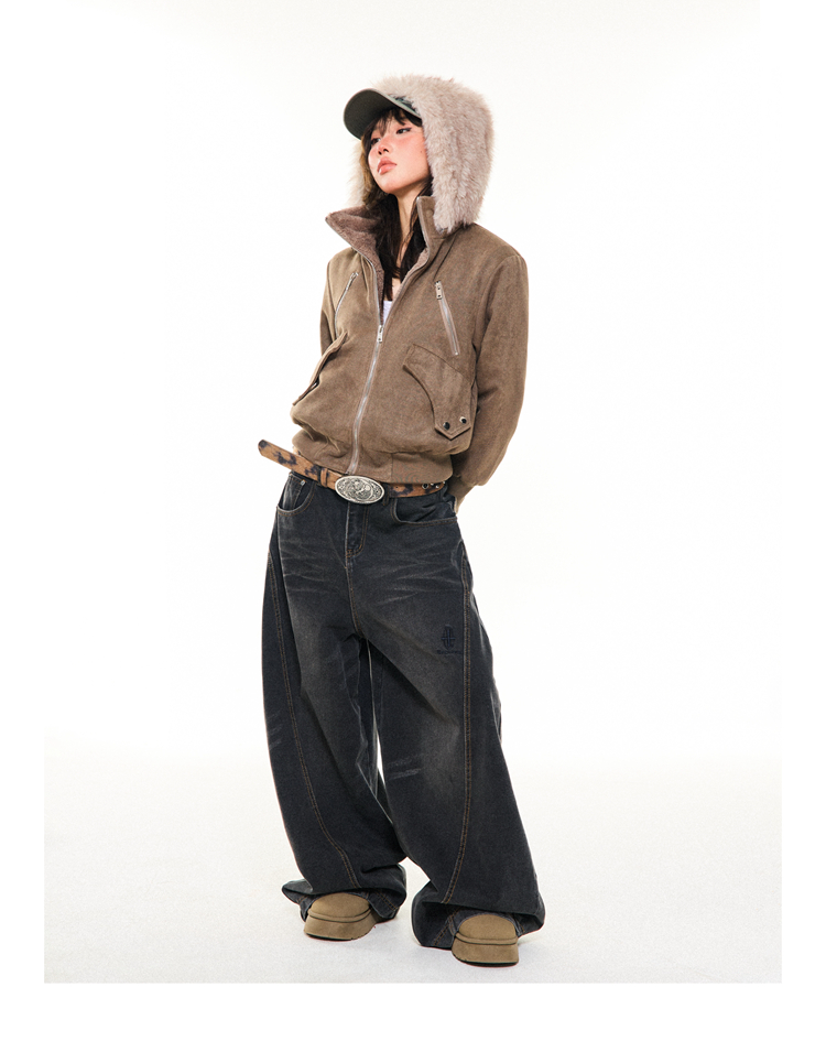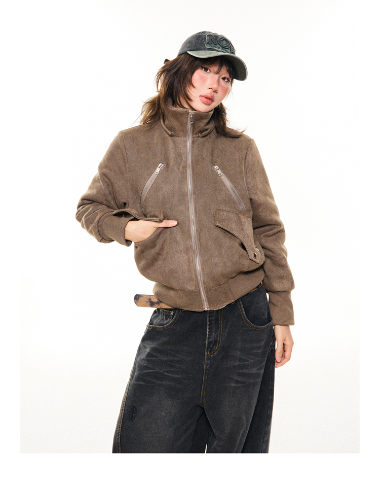 Young Stage Original American Retro Sexy Slim Fit Jacket for Women Winter Thickeneded Plush Lining Short Jacket