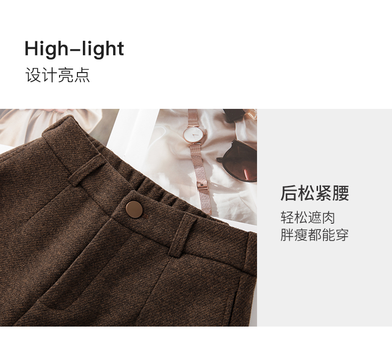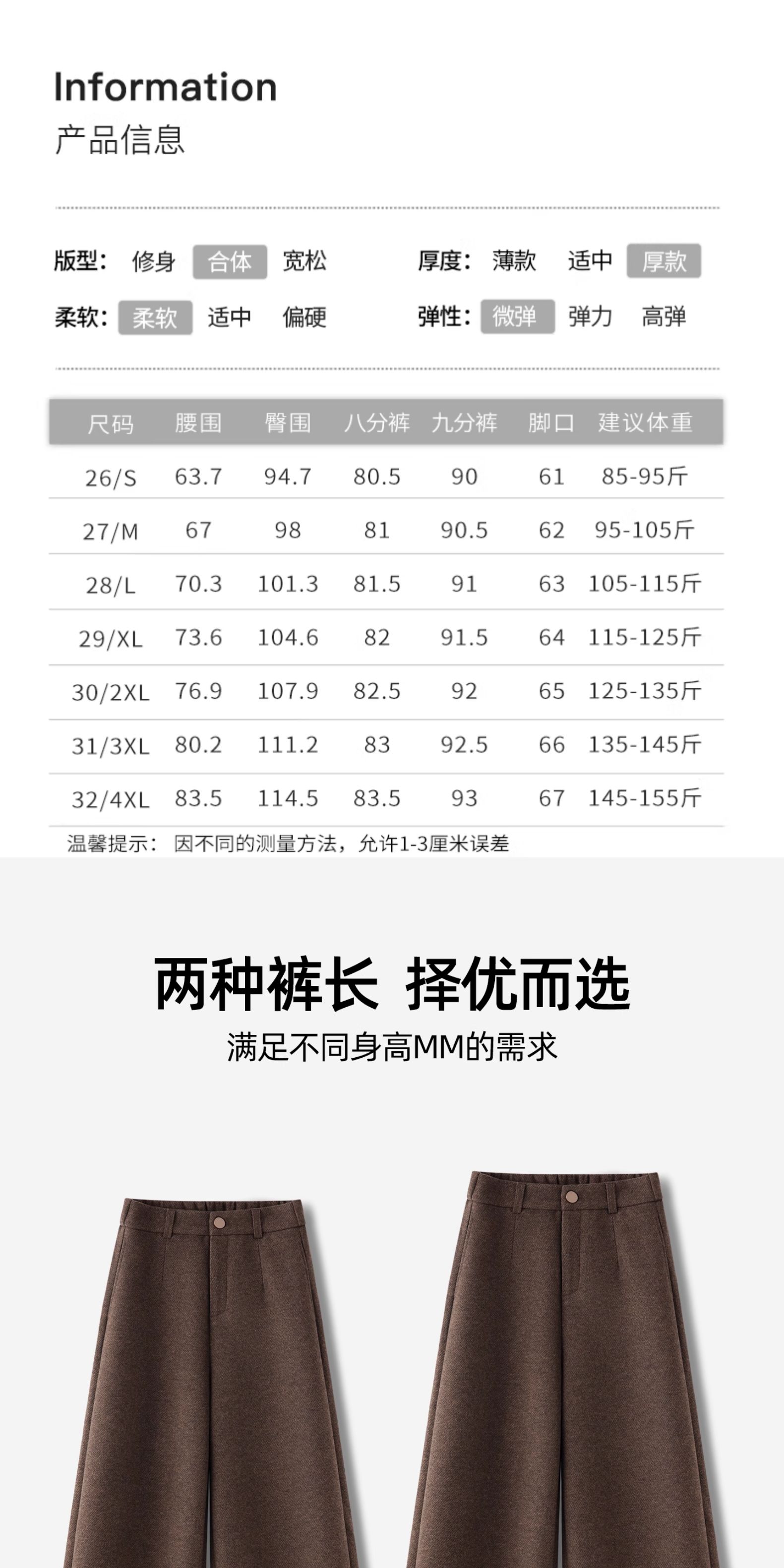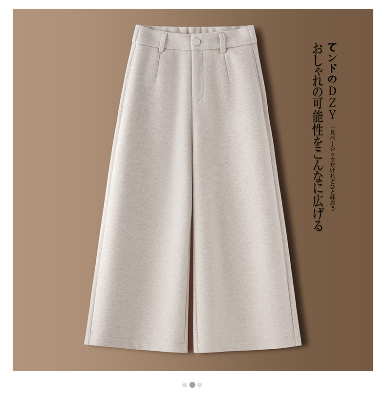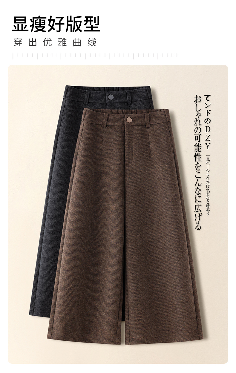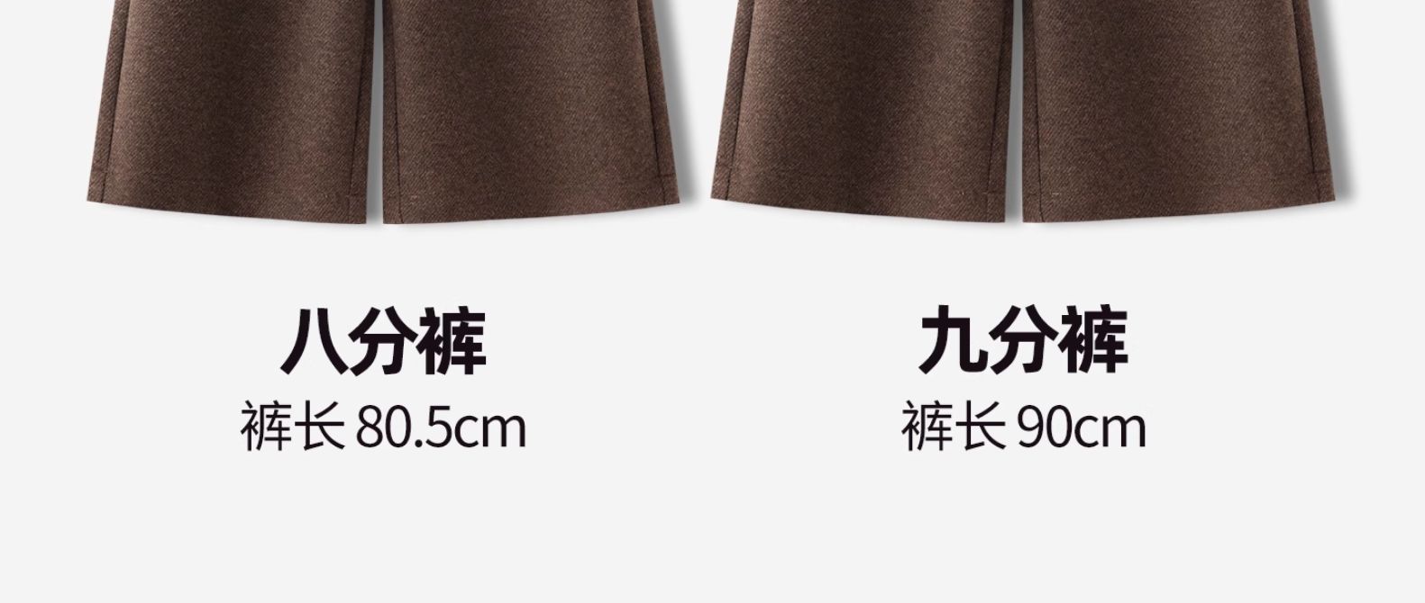 Brown Cashmere Wide-Leg Pants for Women, Autumn and Winter 2025 New Style, Fleece-Lined and Thickened, Eight-Tenths Length Casual Woolen Nine-Tenths Straight-Leg Pants