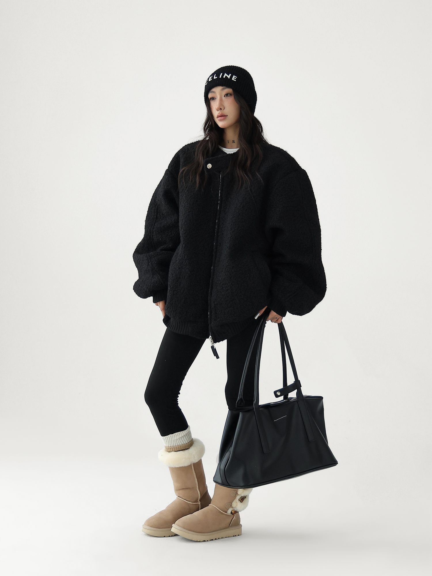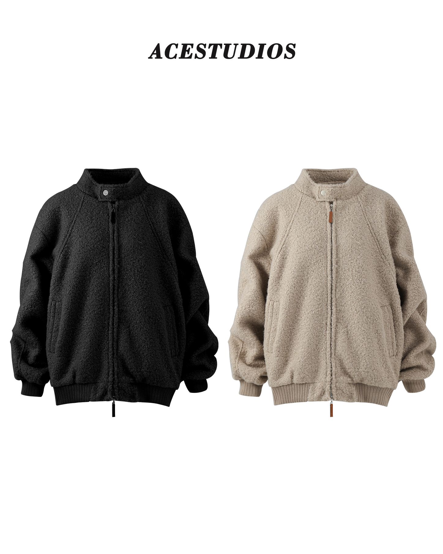 Acestudios High-End Quilted Stand-Up Collar Looped Fleece Fluffy Jacket American Retro Loose Silhouette Cotton Coat