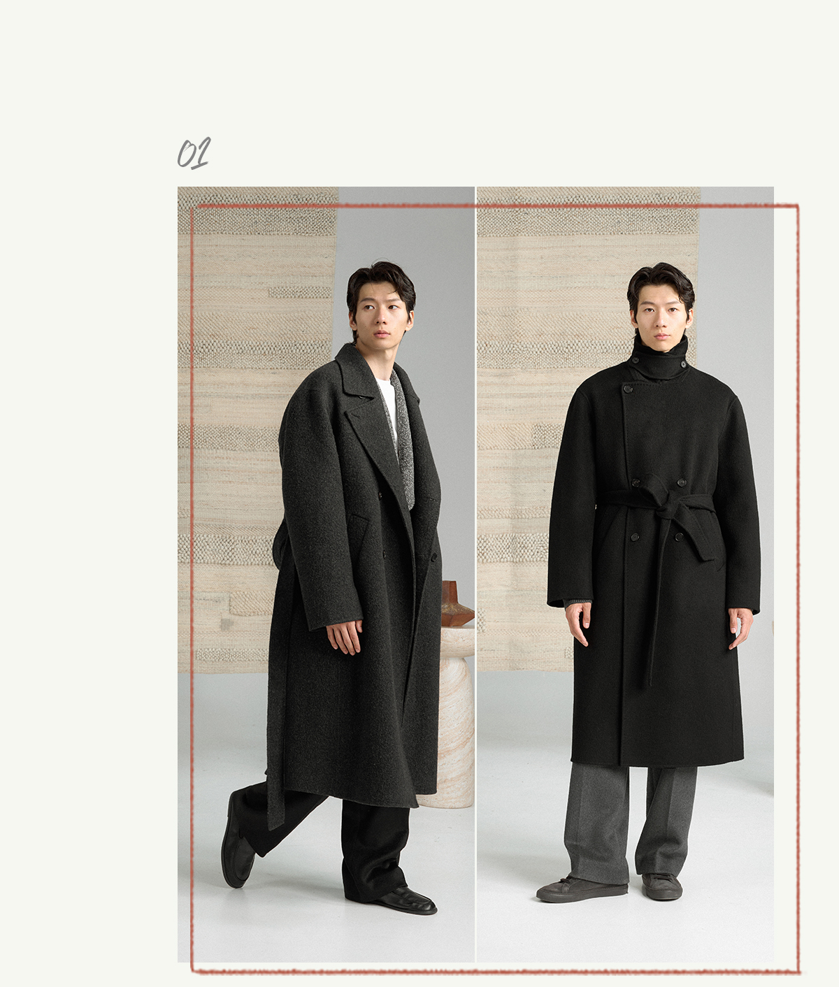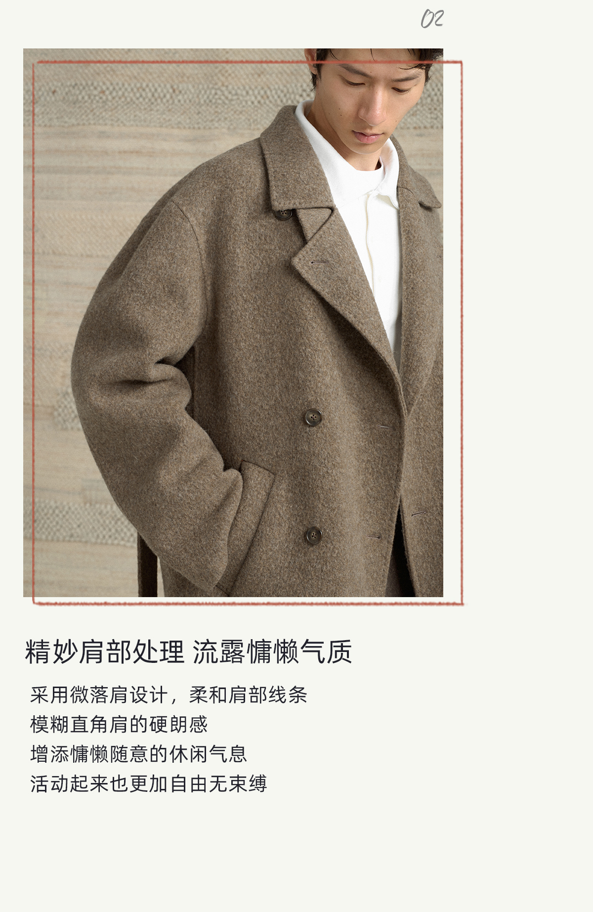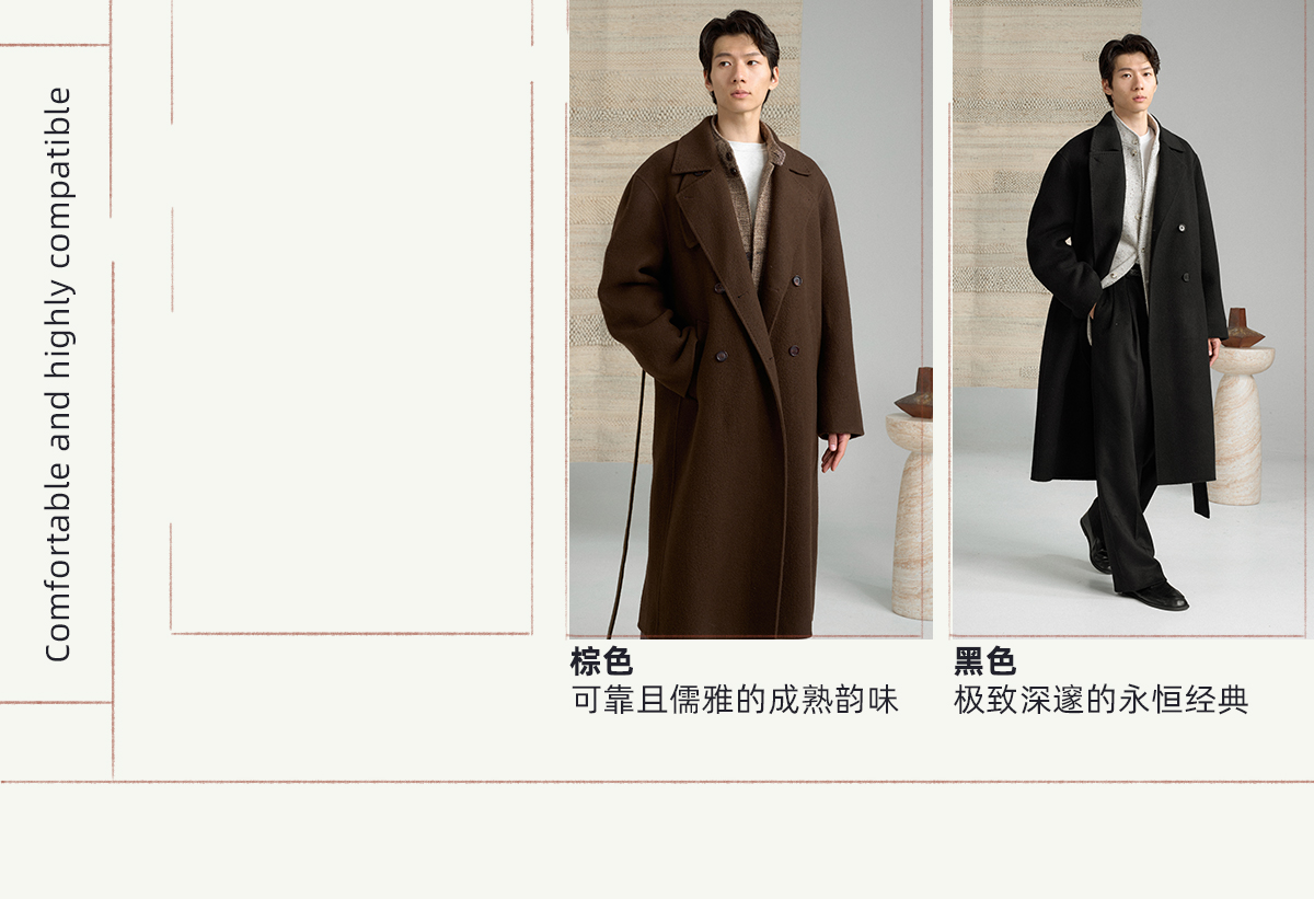 【900G Heavy Double-Sided Wool】Cultum Autumn and Winter Double-Breasted Woolen Coat for Men, Over-The-Knee Long Loose Coat
