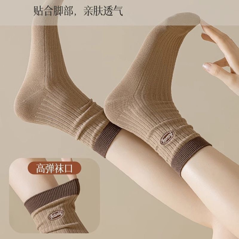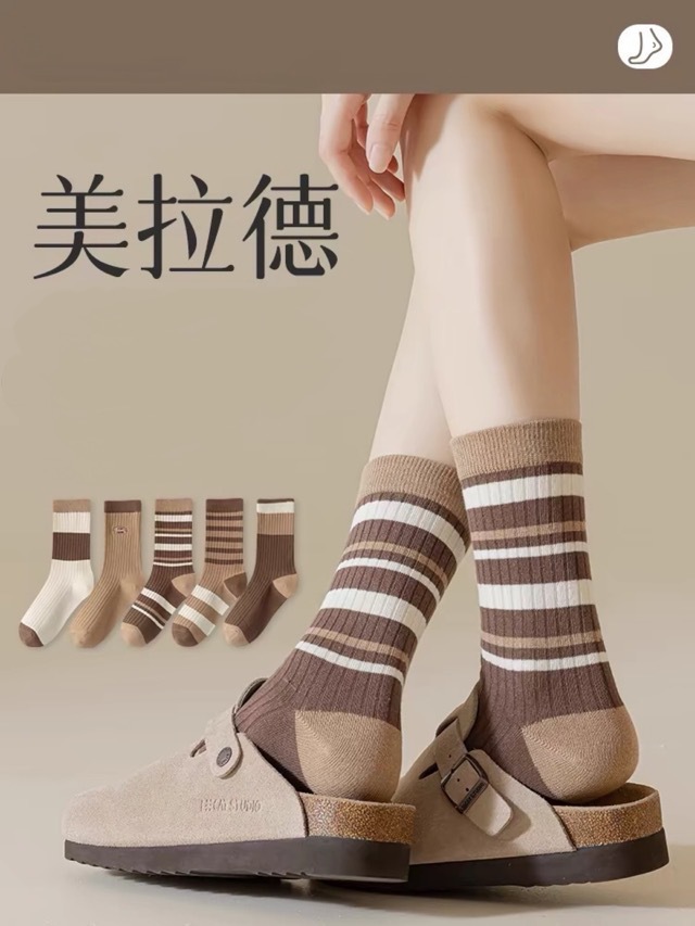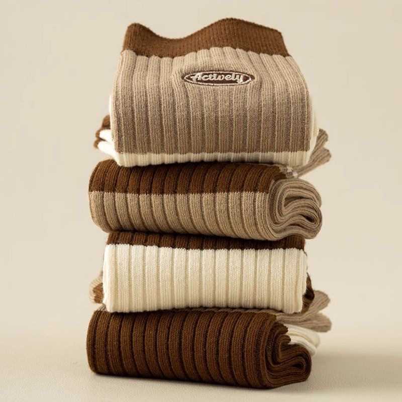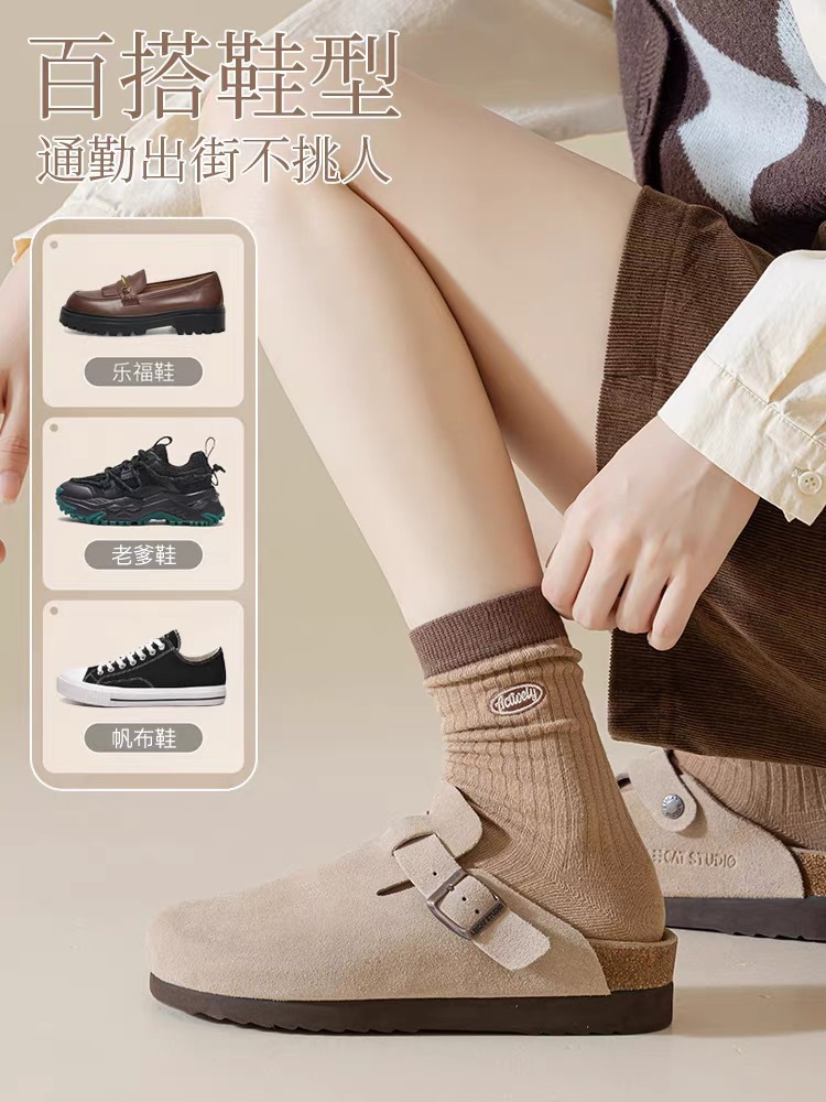Autumn and Winter Socks for Women, Melange Color Mid-Calf Socks, Versatile and Simple Slouch Socks, Preppy Style Brown Long Socks