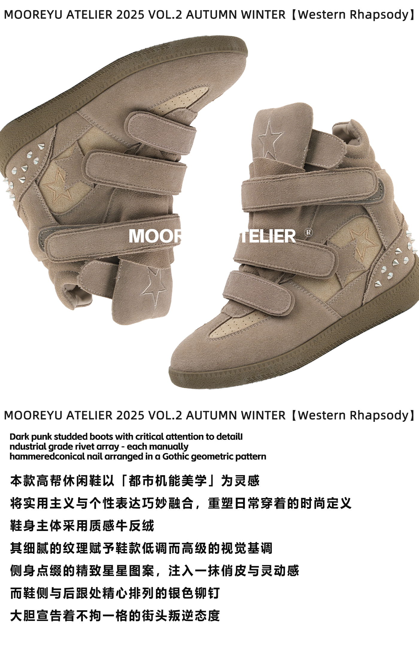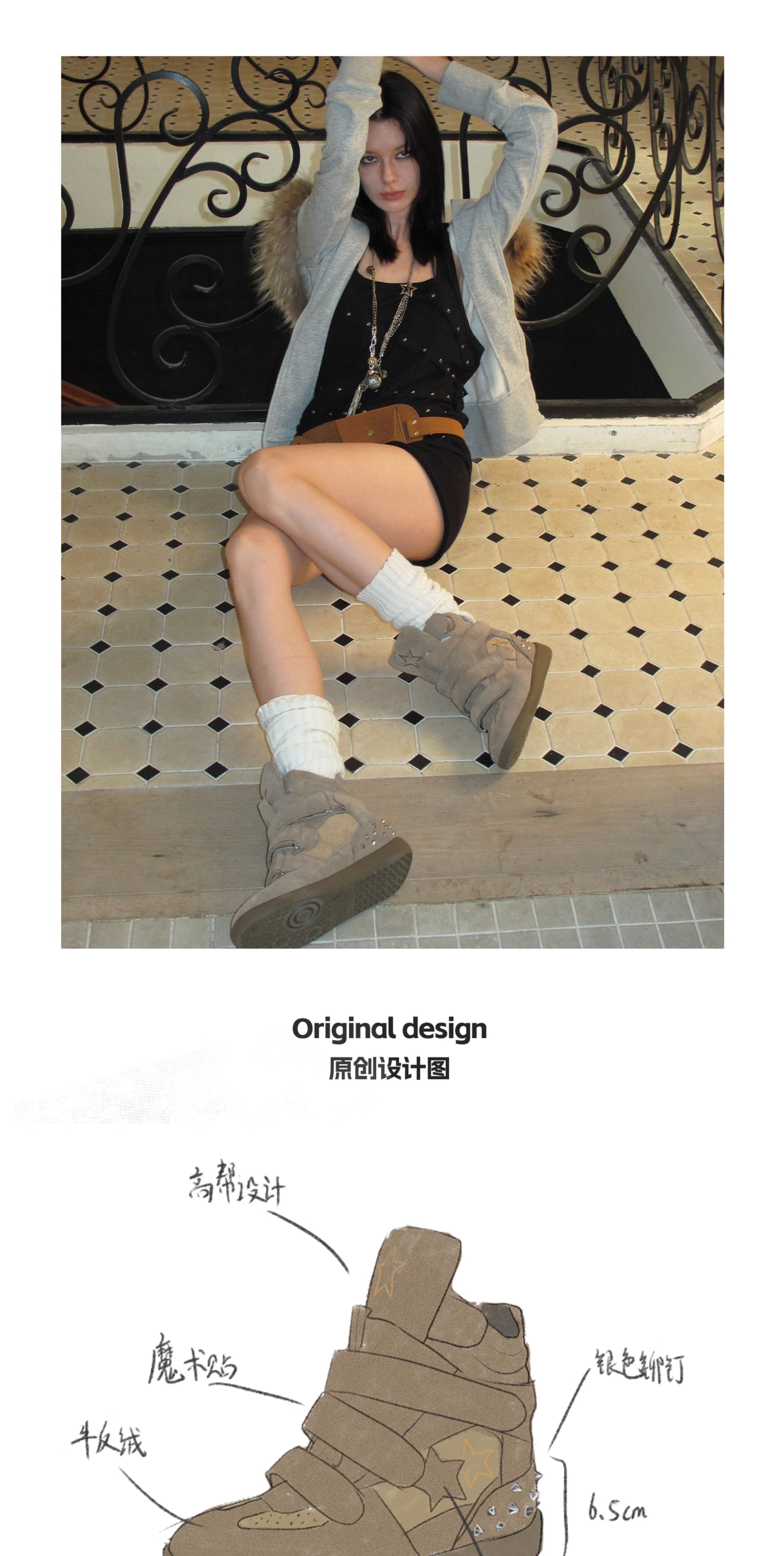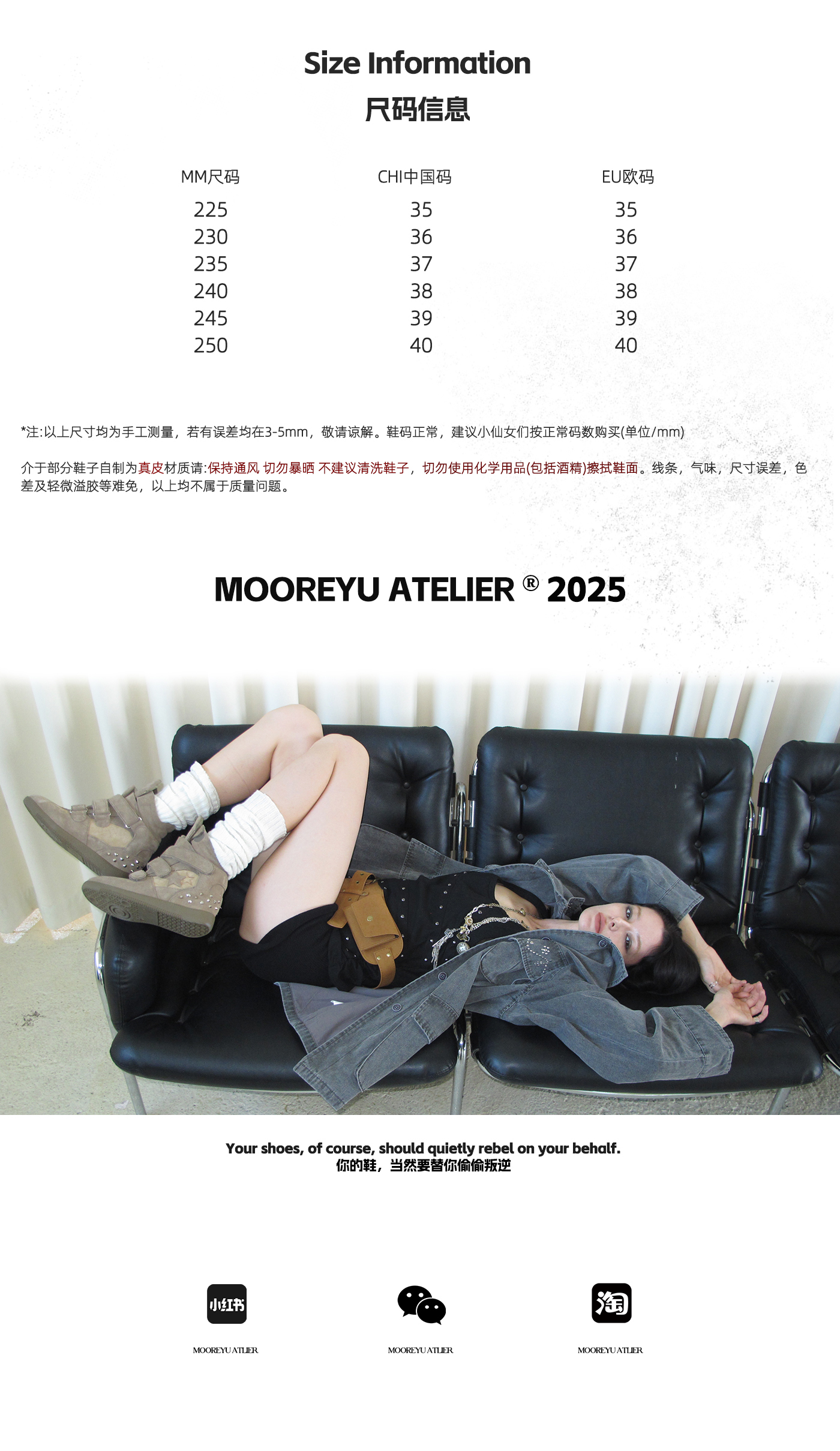 Mooreyu Atelier Original Genuine Leather Retro High-Top Shoes for Women, Casual Thick-Soled Height-Increasing Sneakers for Autumn