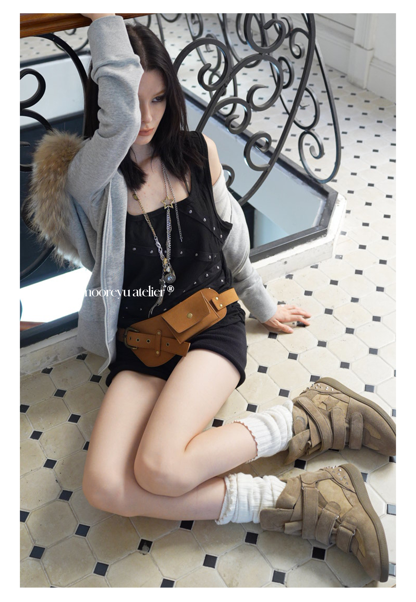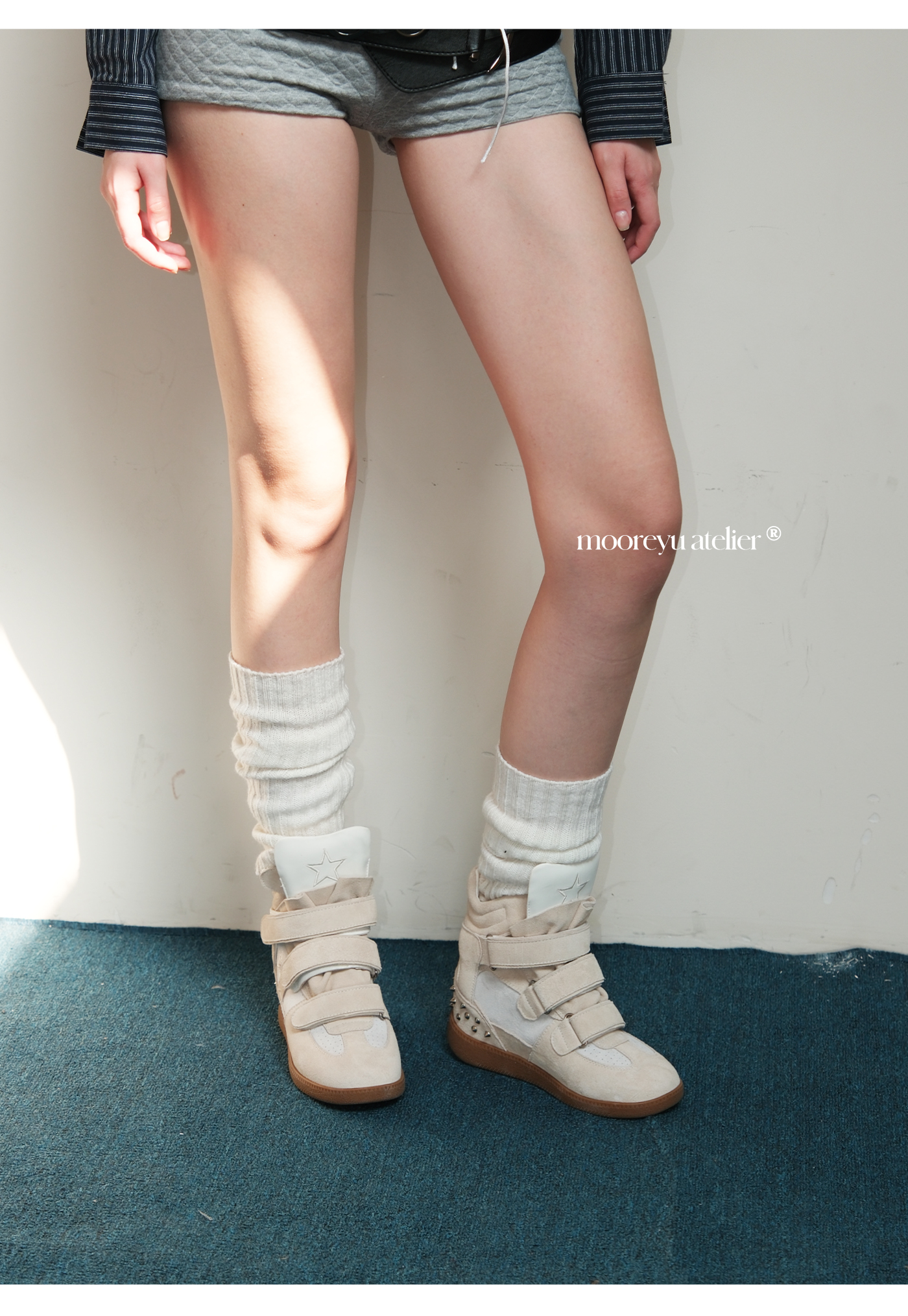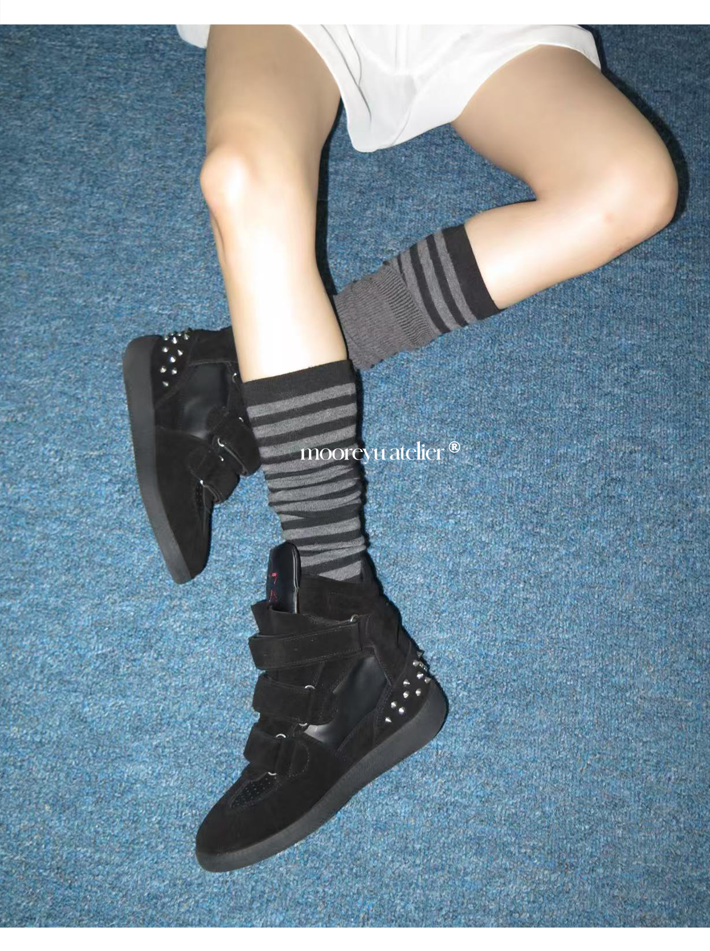 Mooreyu Atelier Original Genuine Leather Retro High-Top Shoes for Women, Casual Thick-Soled Height-Increasing Sneakers for Autumn