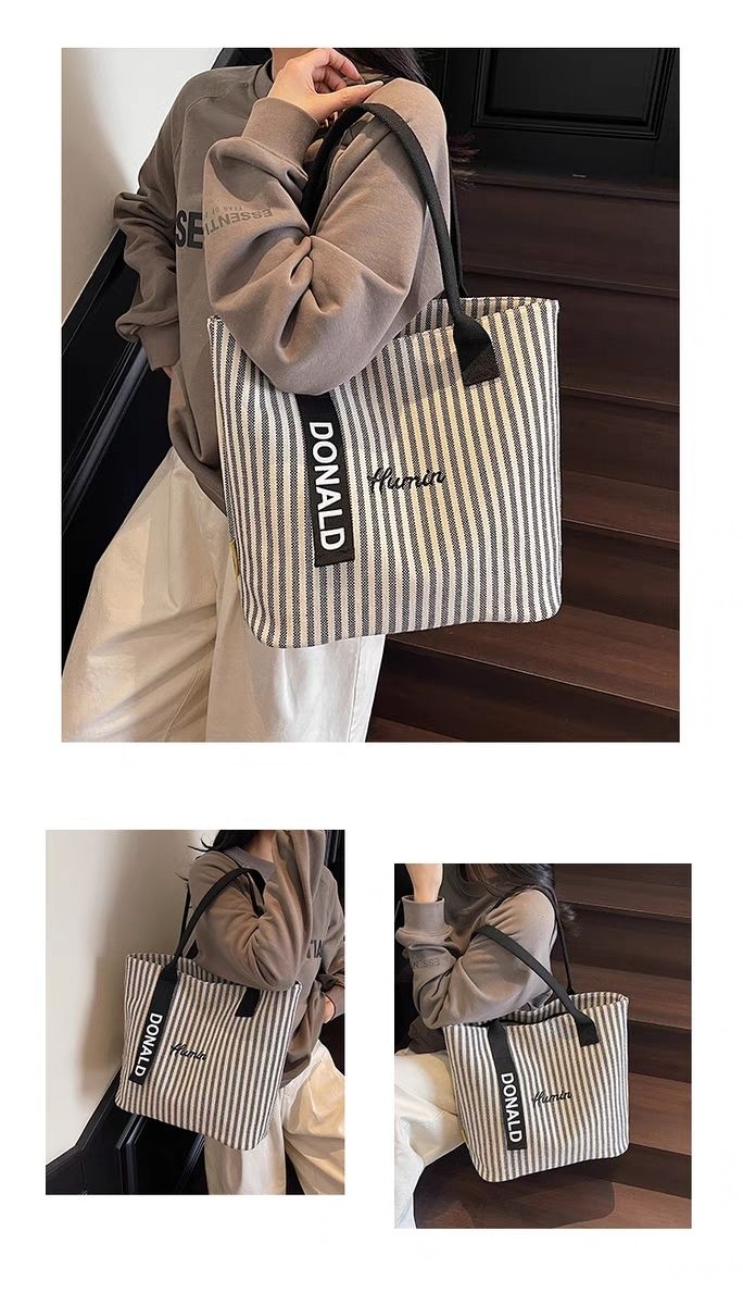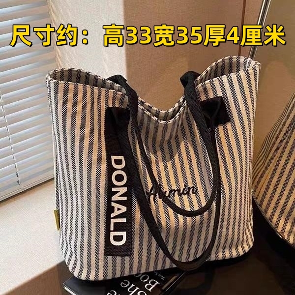 New Striped Bag for Women 2025 New Large-Capacity Class Tote Bag Korean Style Single Shoulder Commuter Tote Bag
