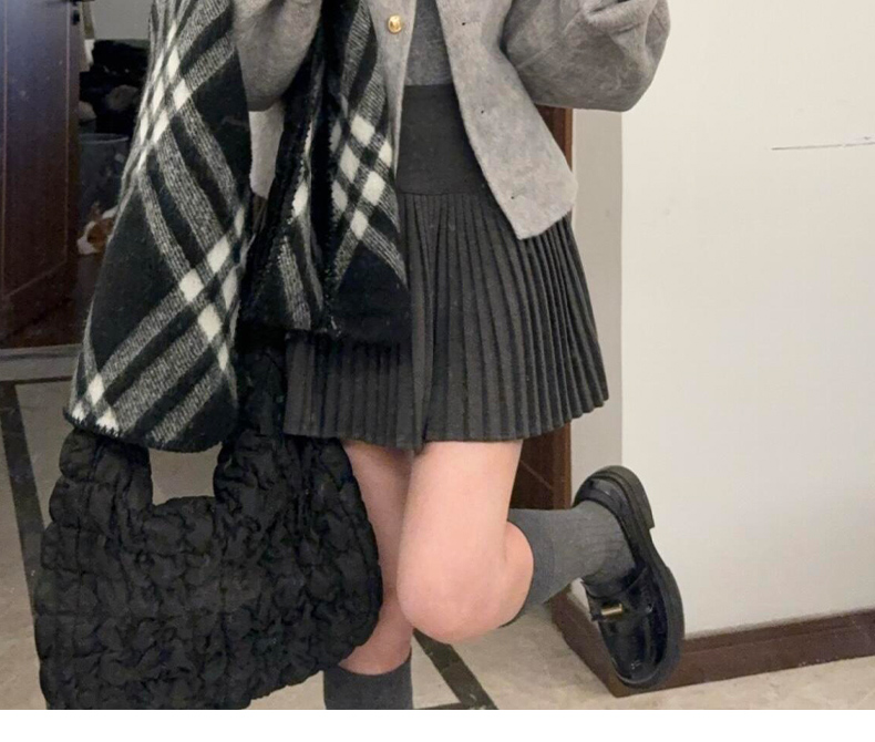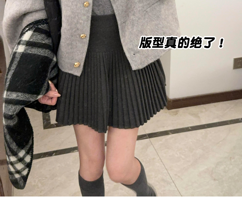 Gray Woolen Pleated Skirt for Women, Autumn and Winter 2025 New High-Waisted A-Line Skirt, Jk Pear-Shaped Berkeley Short Skirt