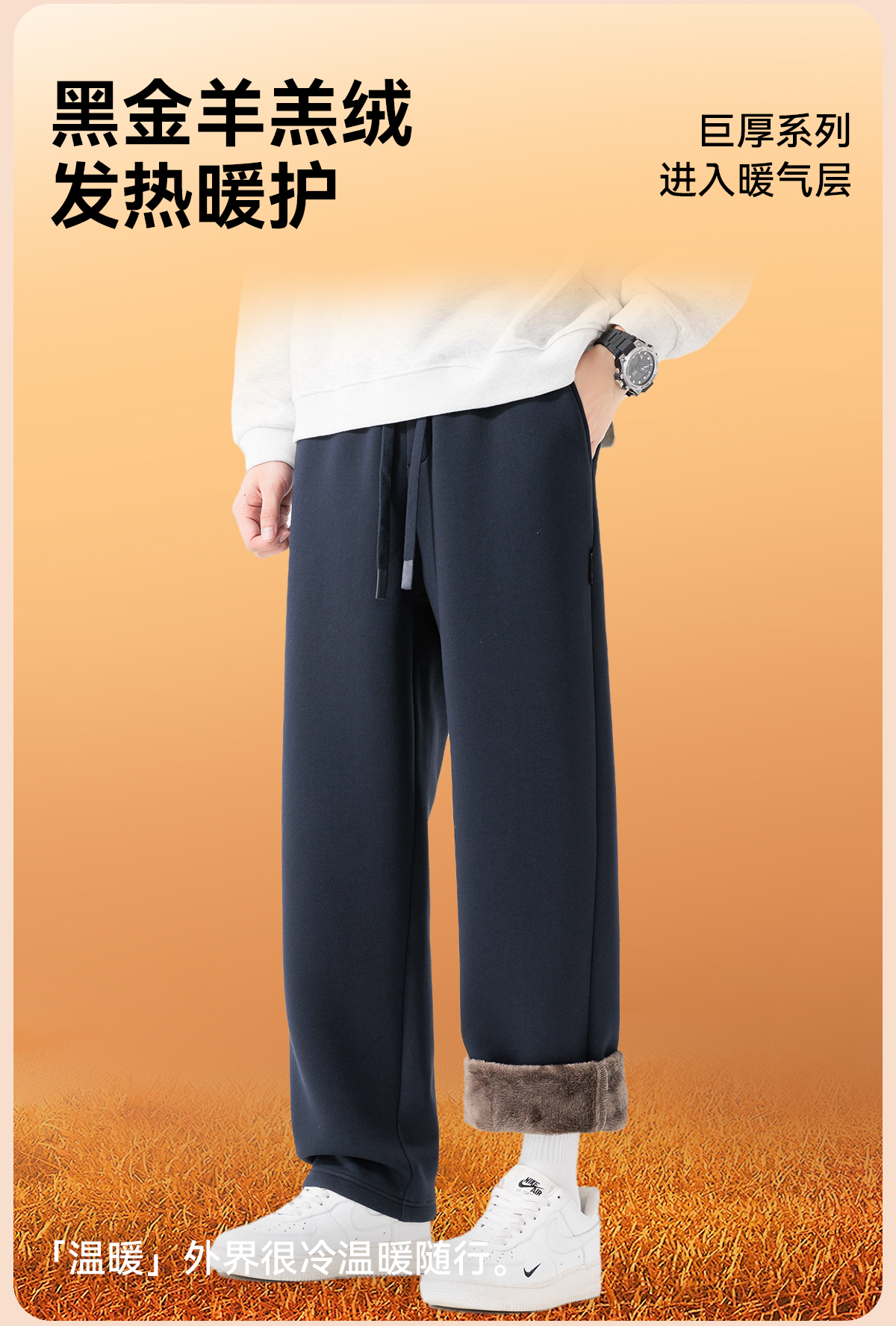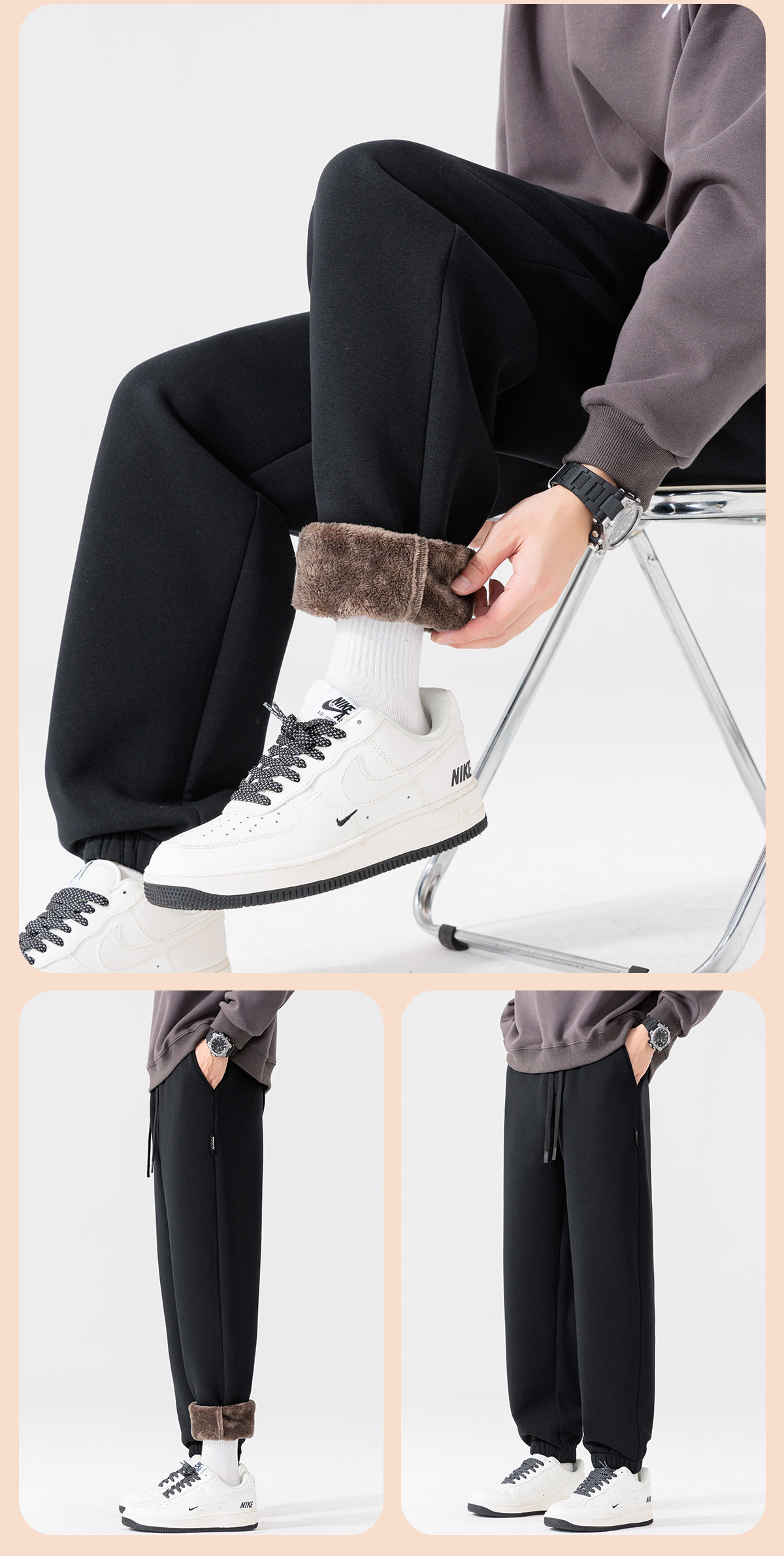 【500G Heavy Black Gold Fleece】Catman Northeast Extra Thick Lamb Fleece Cotton Pants for Men, Winter Fleece-Lined Warm Casual Pants