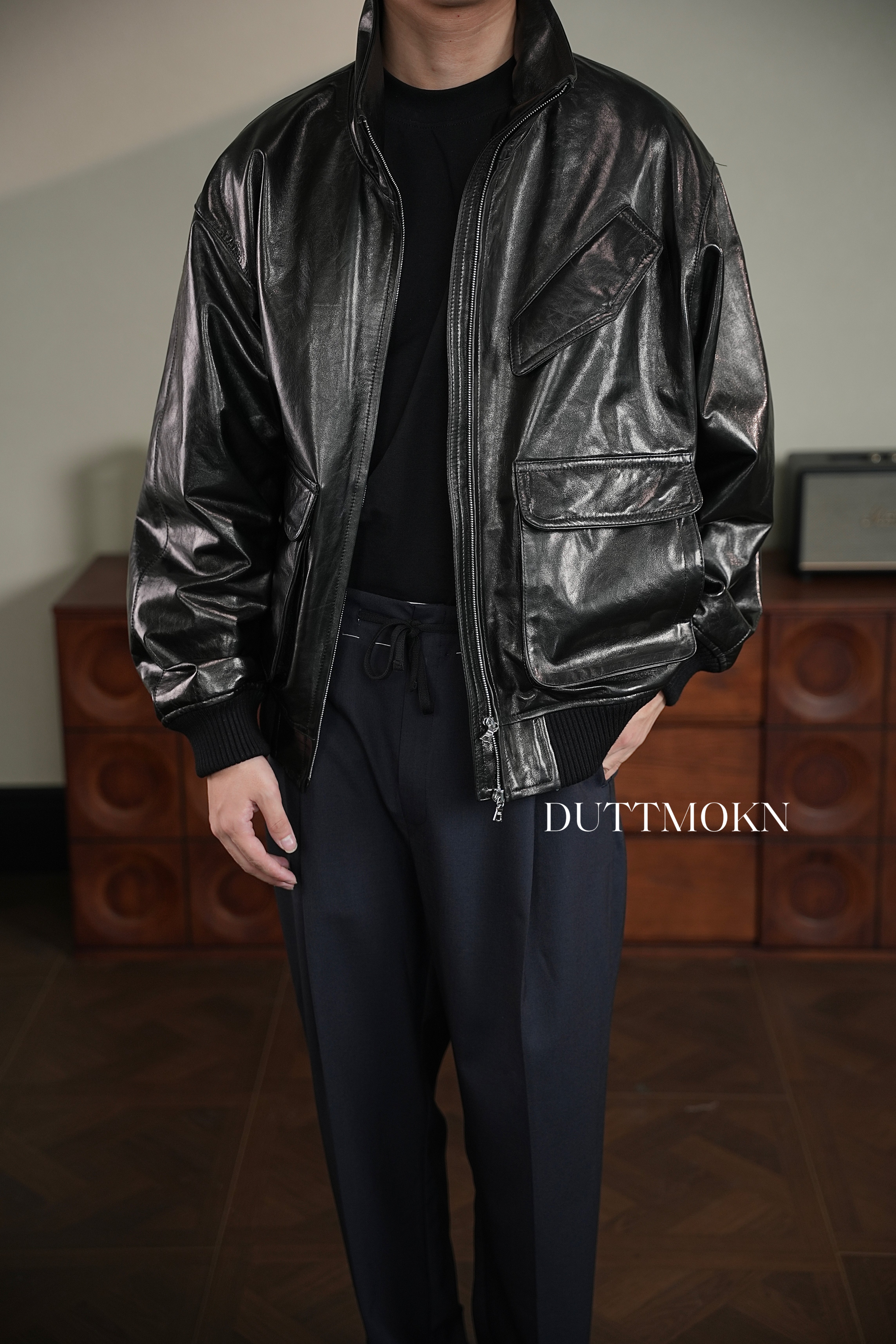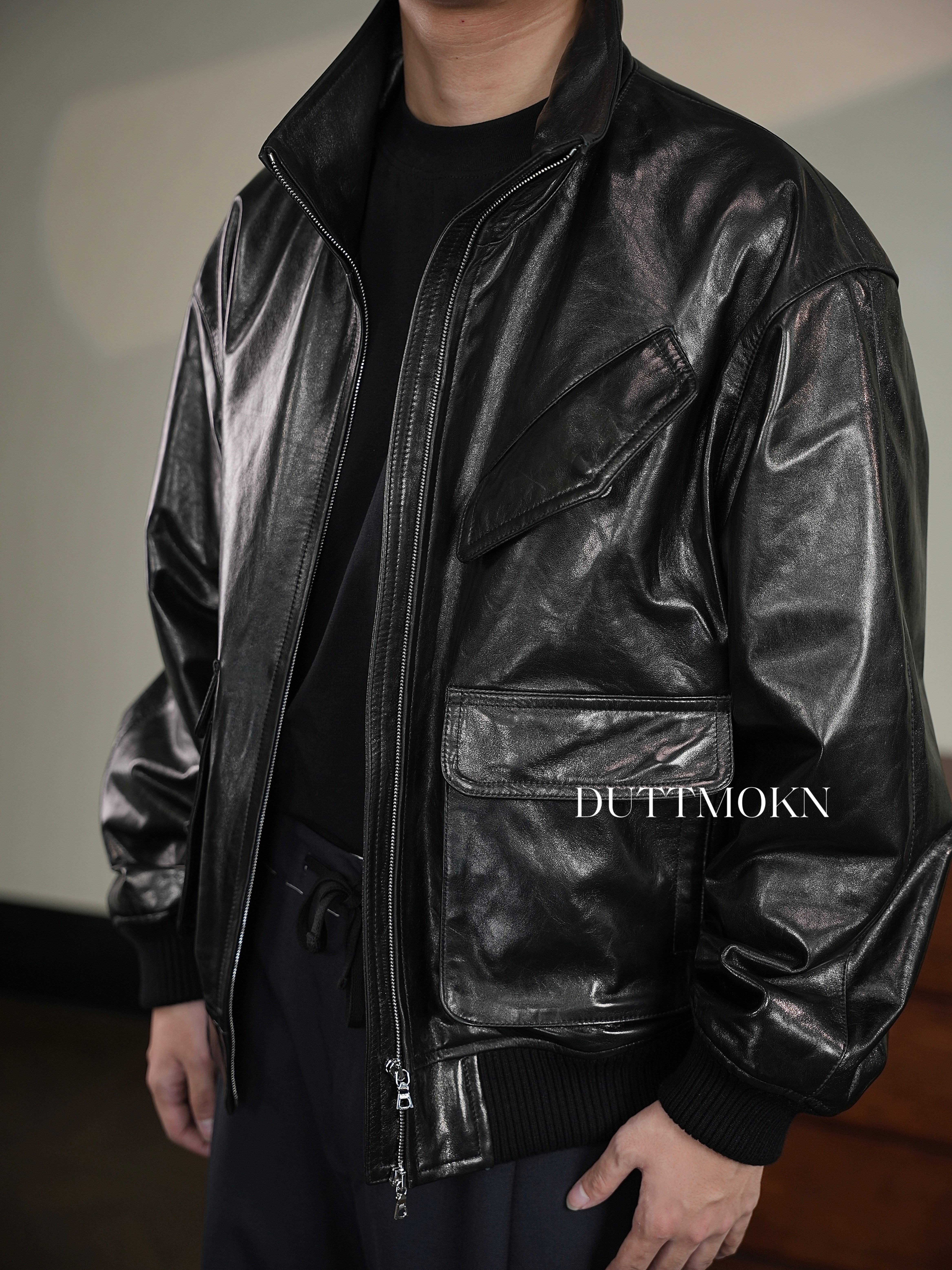 Duttmokn【Waxed New Zealand Lambskin】25Fw New Vintage Motorcycle Distressed Casual Leather Jacket