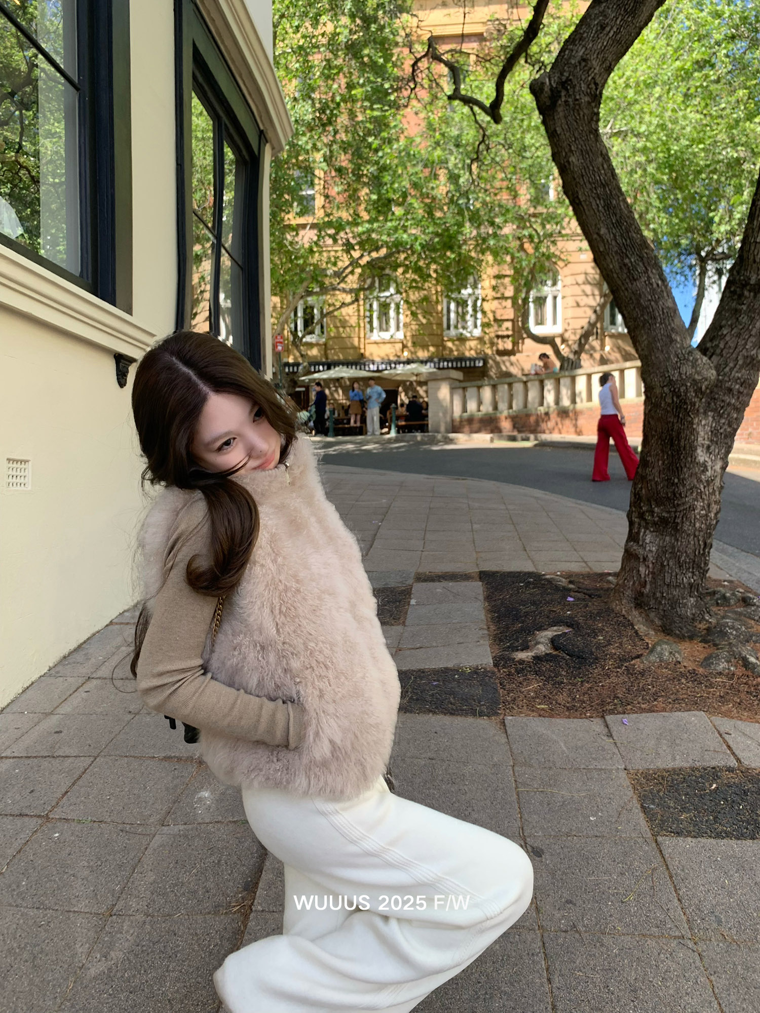 外层纱线选用416g的毛织材质 内层采用360g一体机狐狸绒