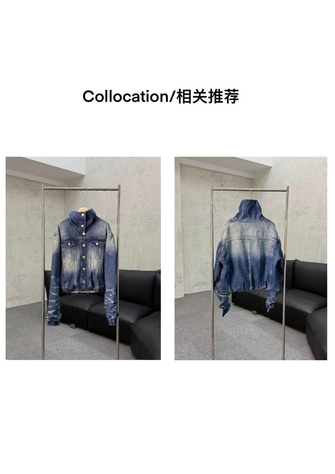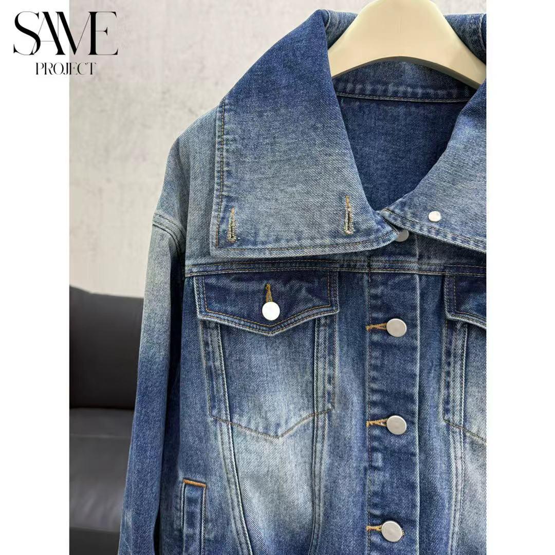 Spj 25Fw Mobius High-Neck Trench Coat Denim Jacket Heavy-Duty Distressed Washed Double-Layer Short Wide Fit
