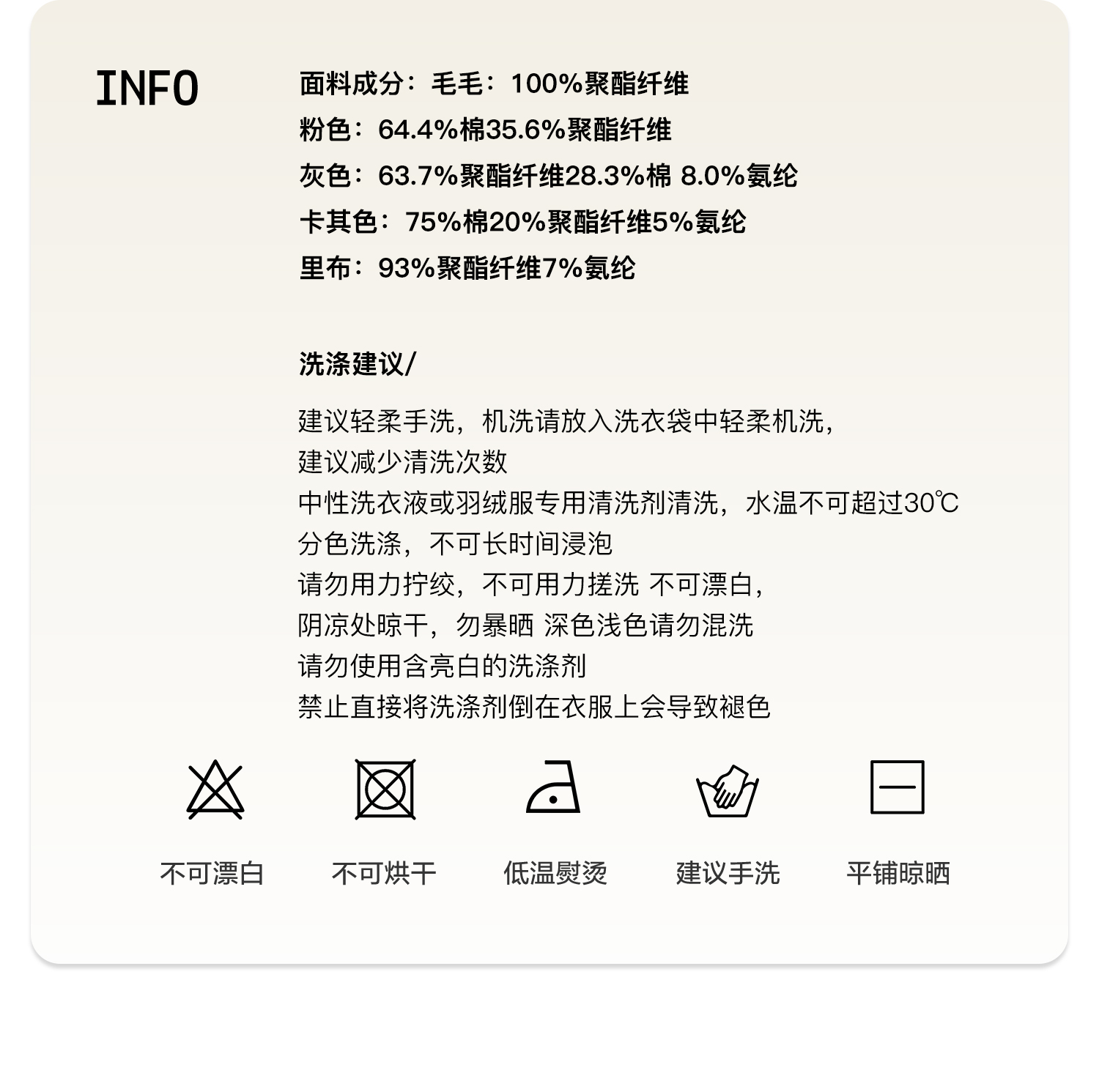 将拉链两侧绒毛向内整理平整,避免绒毛卷入拉齿缝隙”
