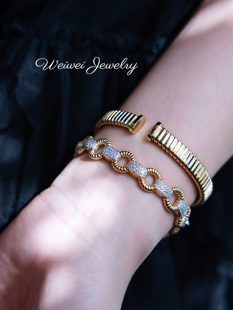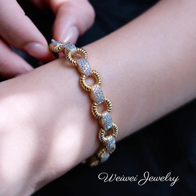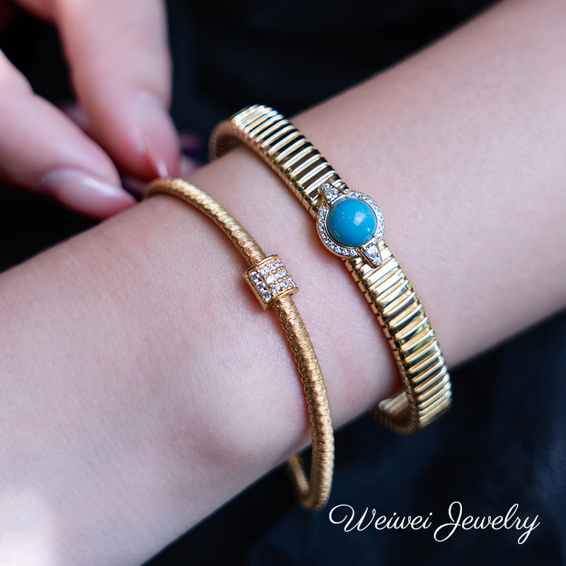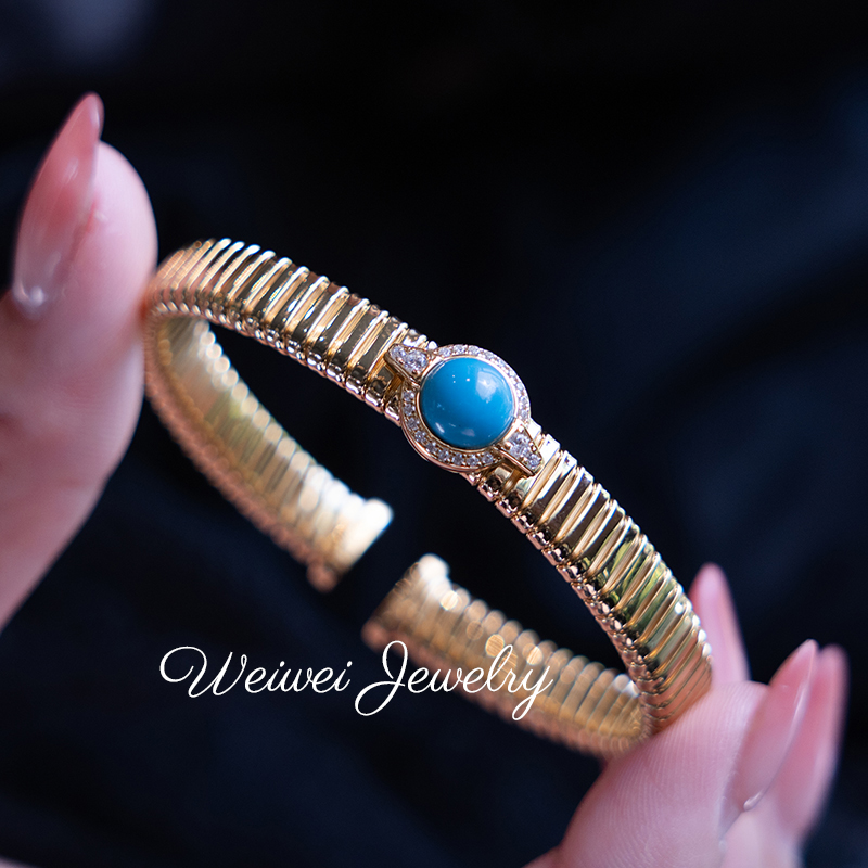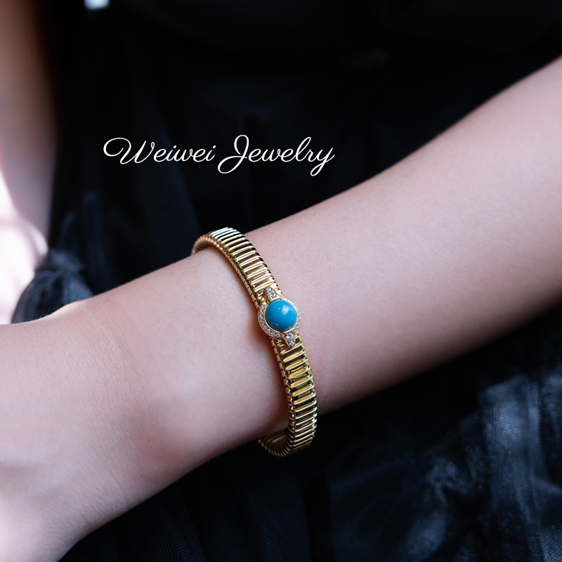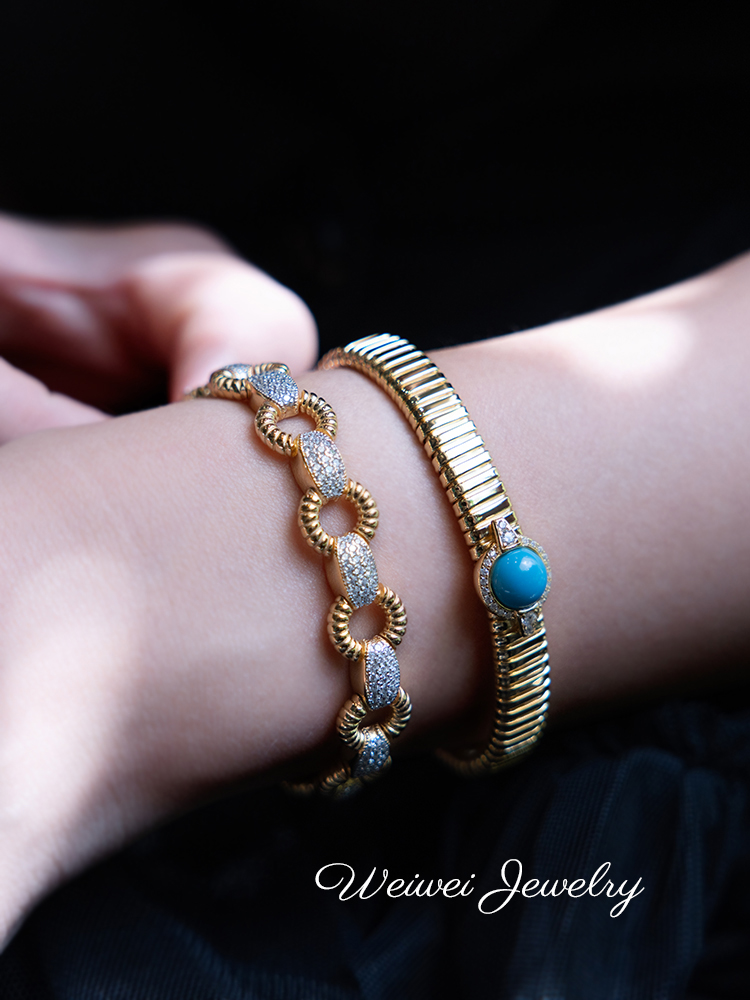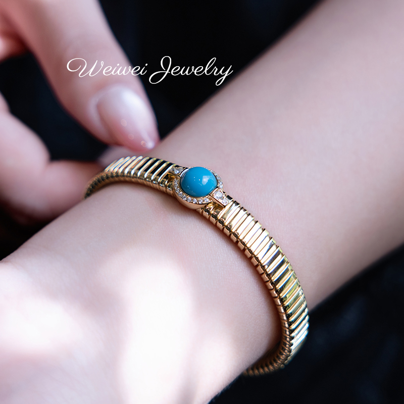 Second-Hand Light Luxury Bracelet 925 Silver Inlaid with Diamonds Twist Full Diamond Bracelet for Women Light Luxury Turquoise Circle Texture Bracelet for Women