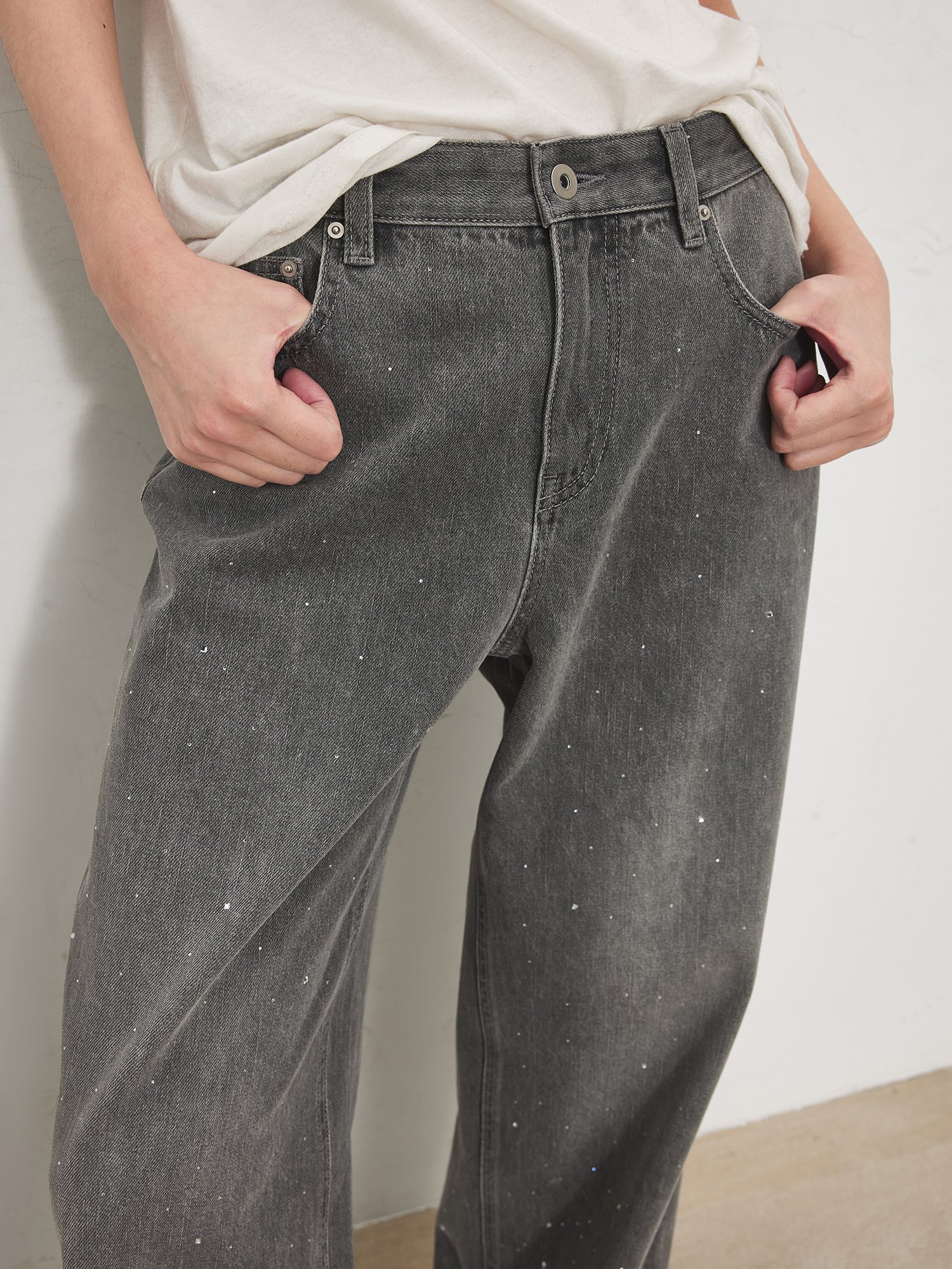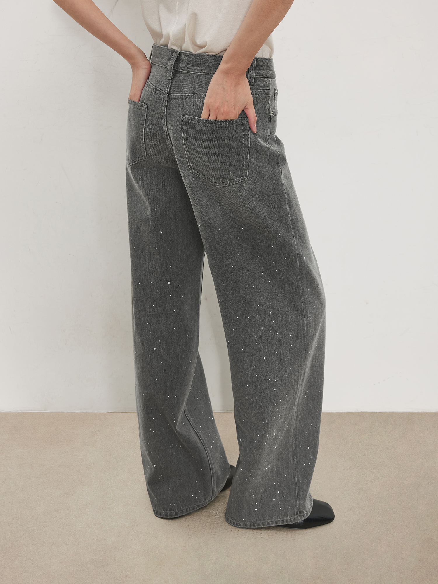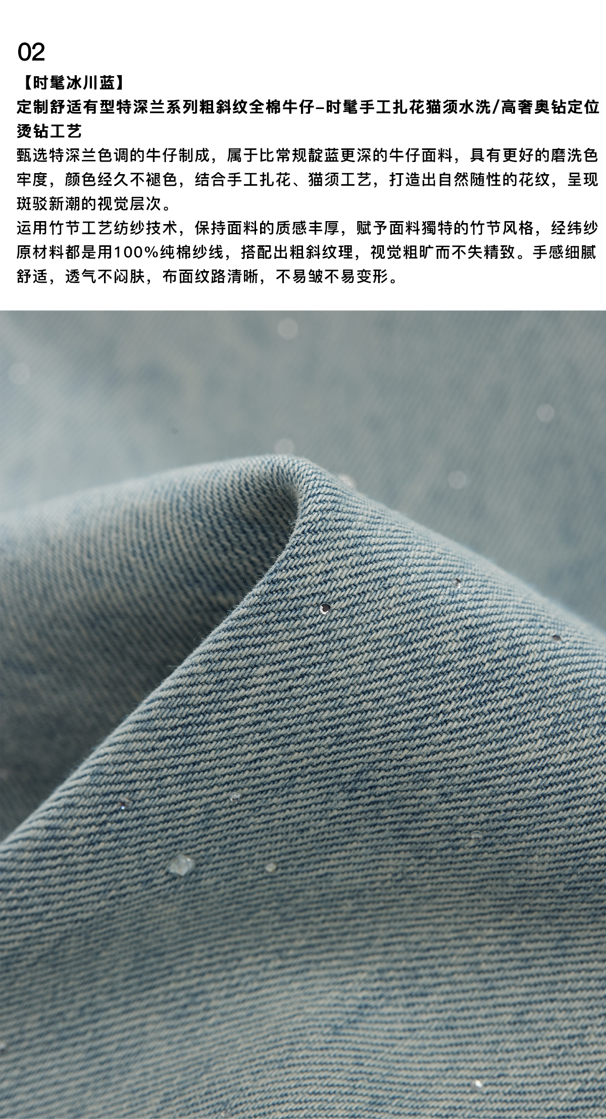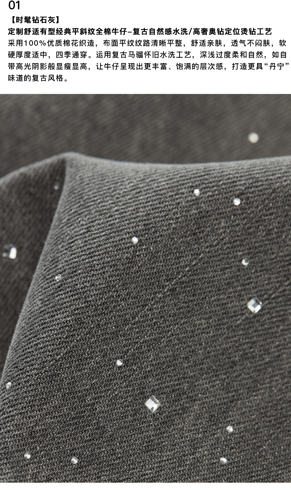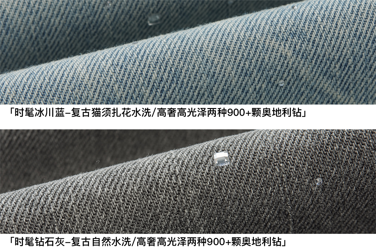 Chicjoc Super Fashion Show Collection_High-End Luxury Gradient Rhinestone Straight-Leg Cotton Denim Diamond Pants
