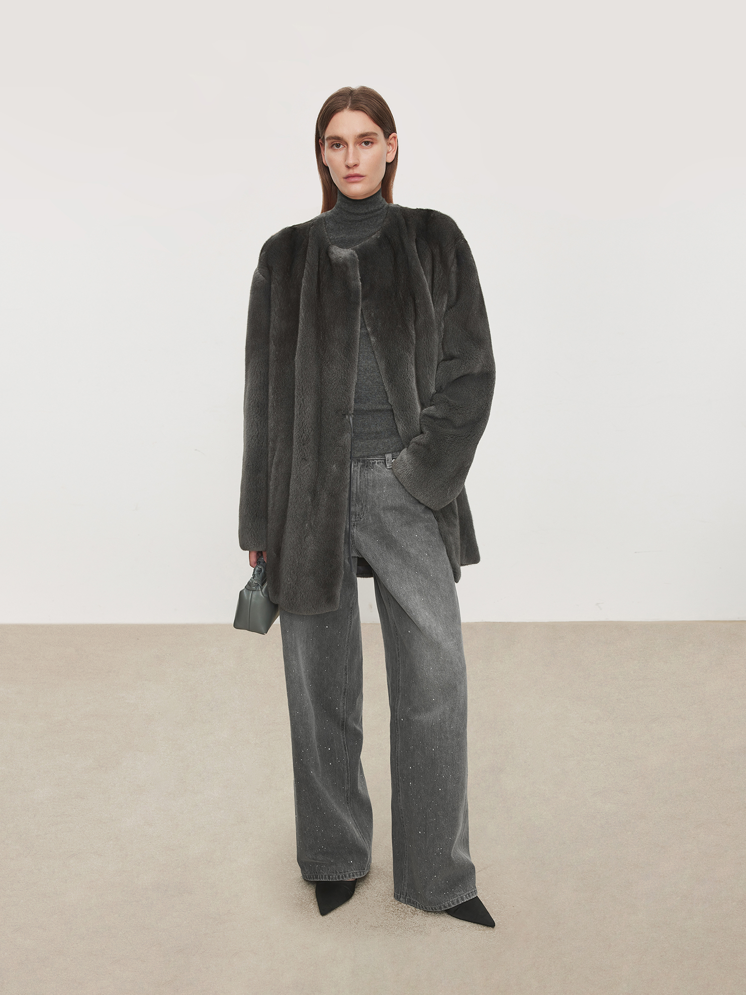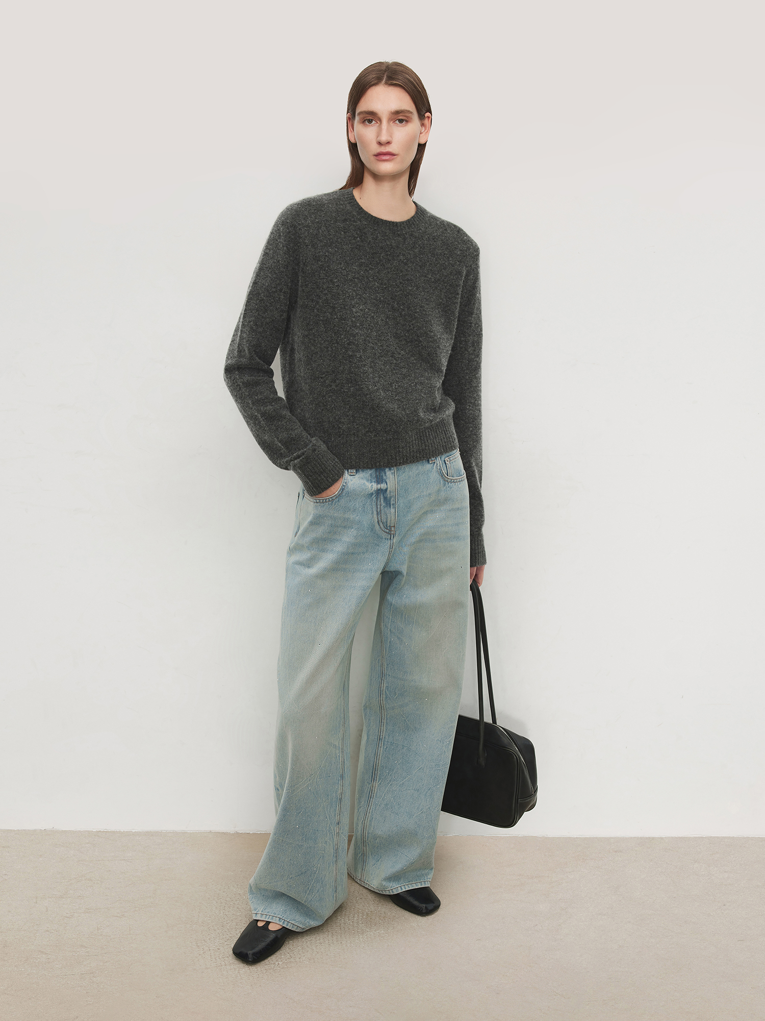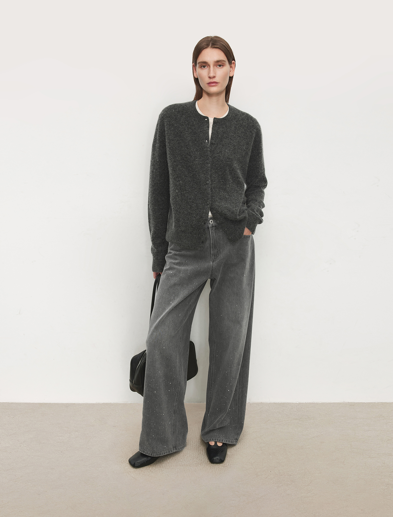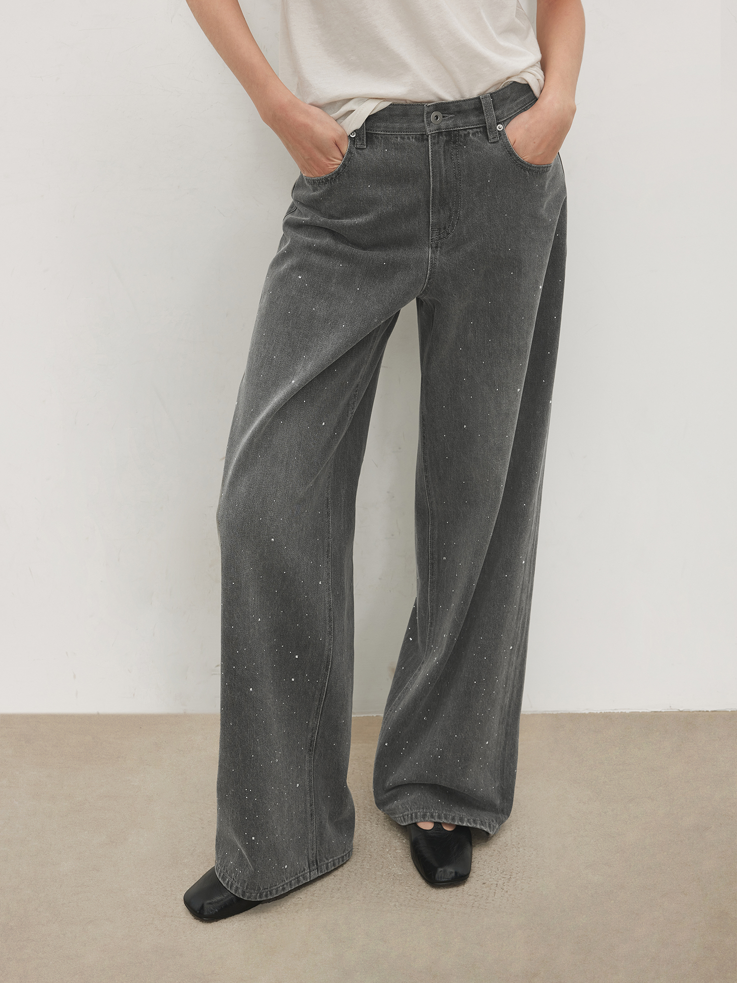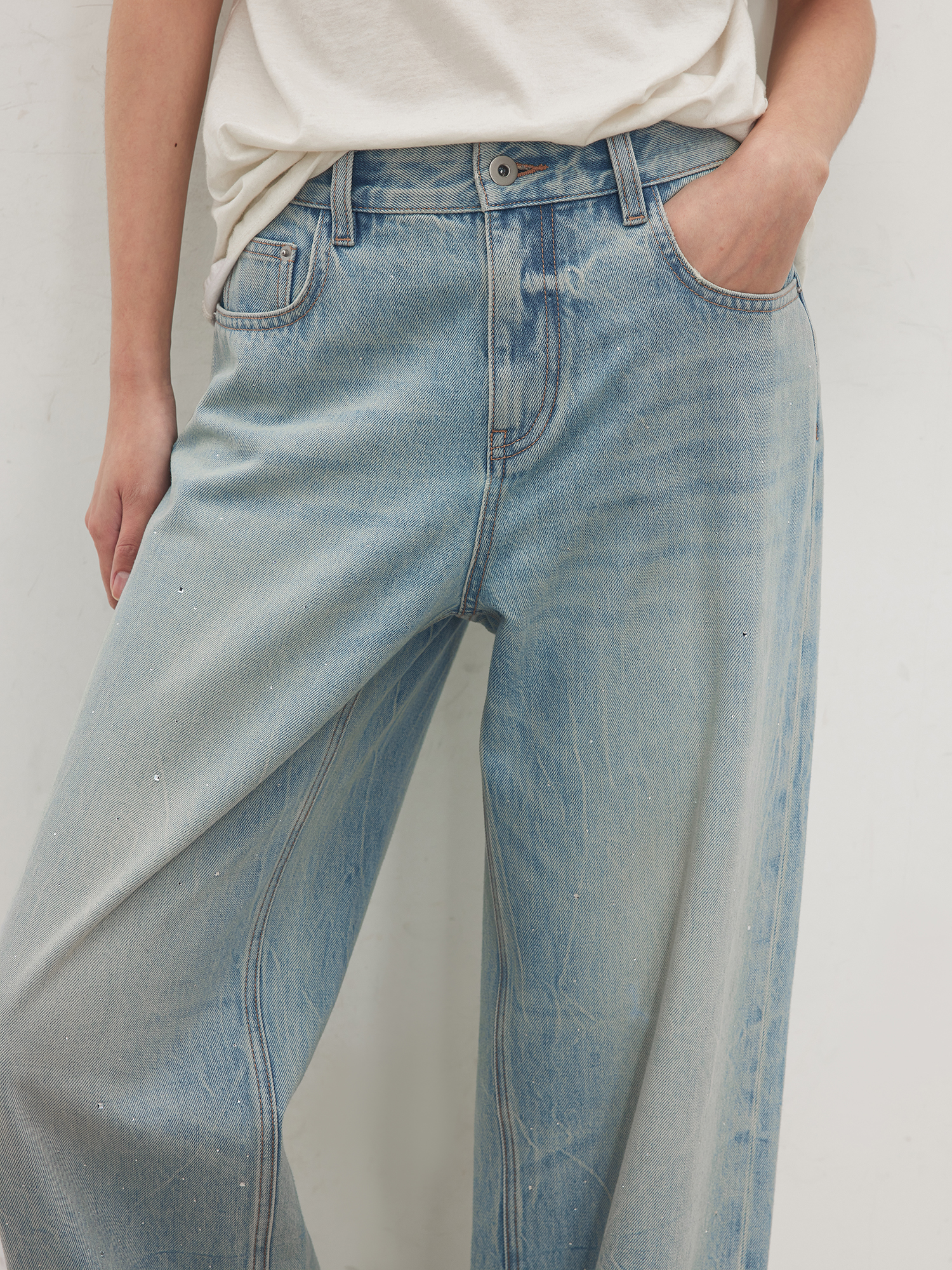 Chicjoc Super Fashion Show Collection_High-End Luxury Gradient Rhinestone Straight-Leg Cotton Denim Diamond Pants