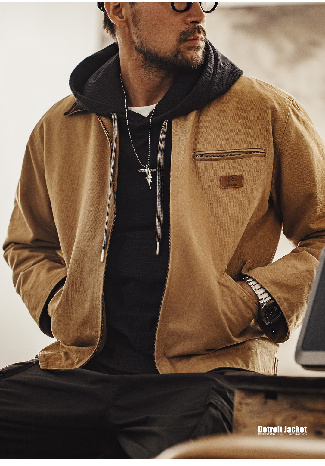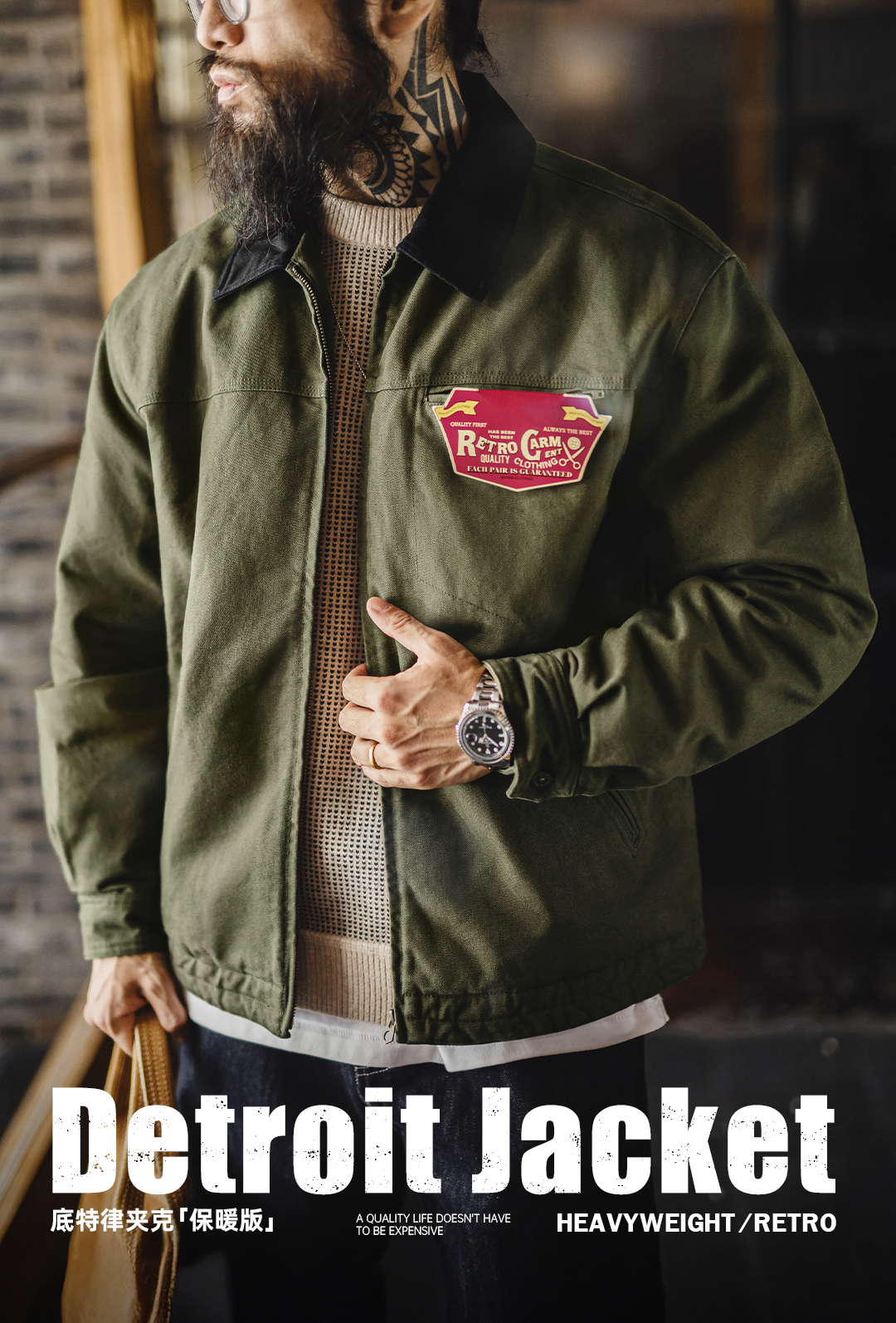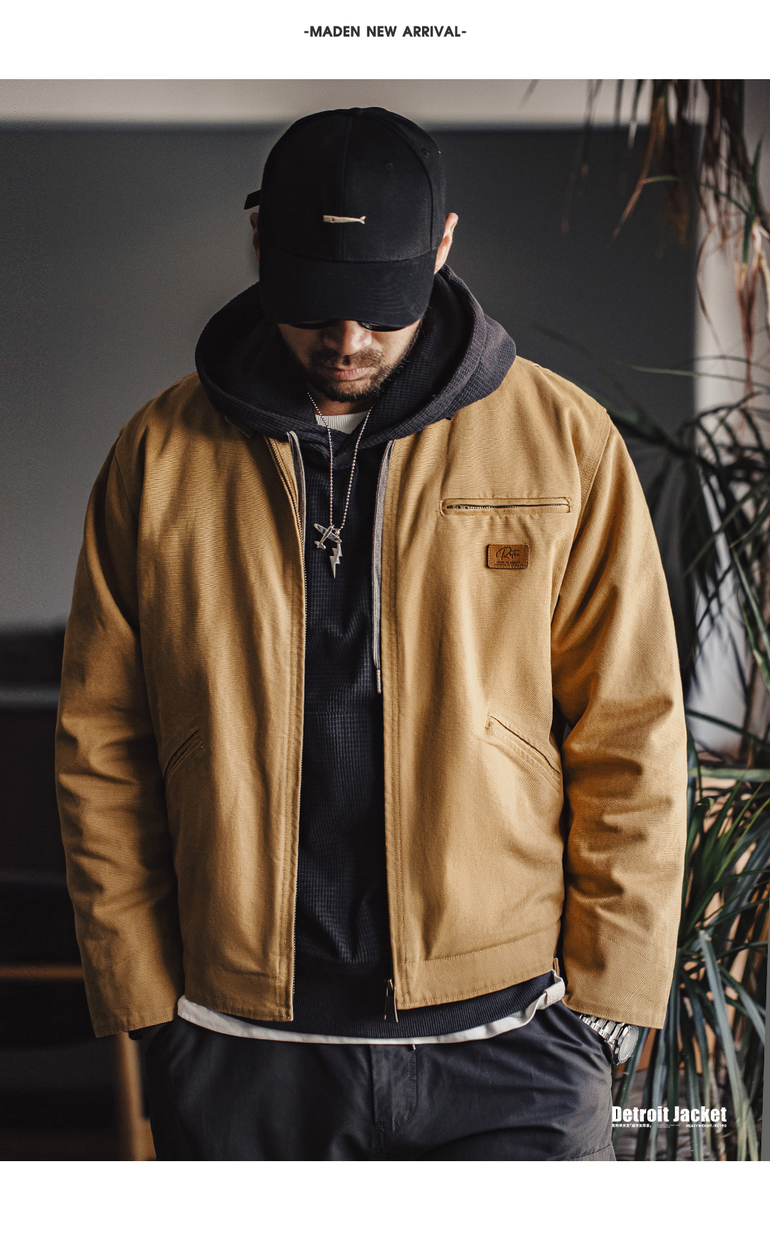 Madden Workwear American Retro Detroit Cotton Jacket Interstellar Hunting Jacket J001 Turn-Down Collar Jacket for Men Autumn and Winter